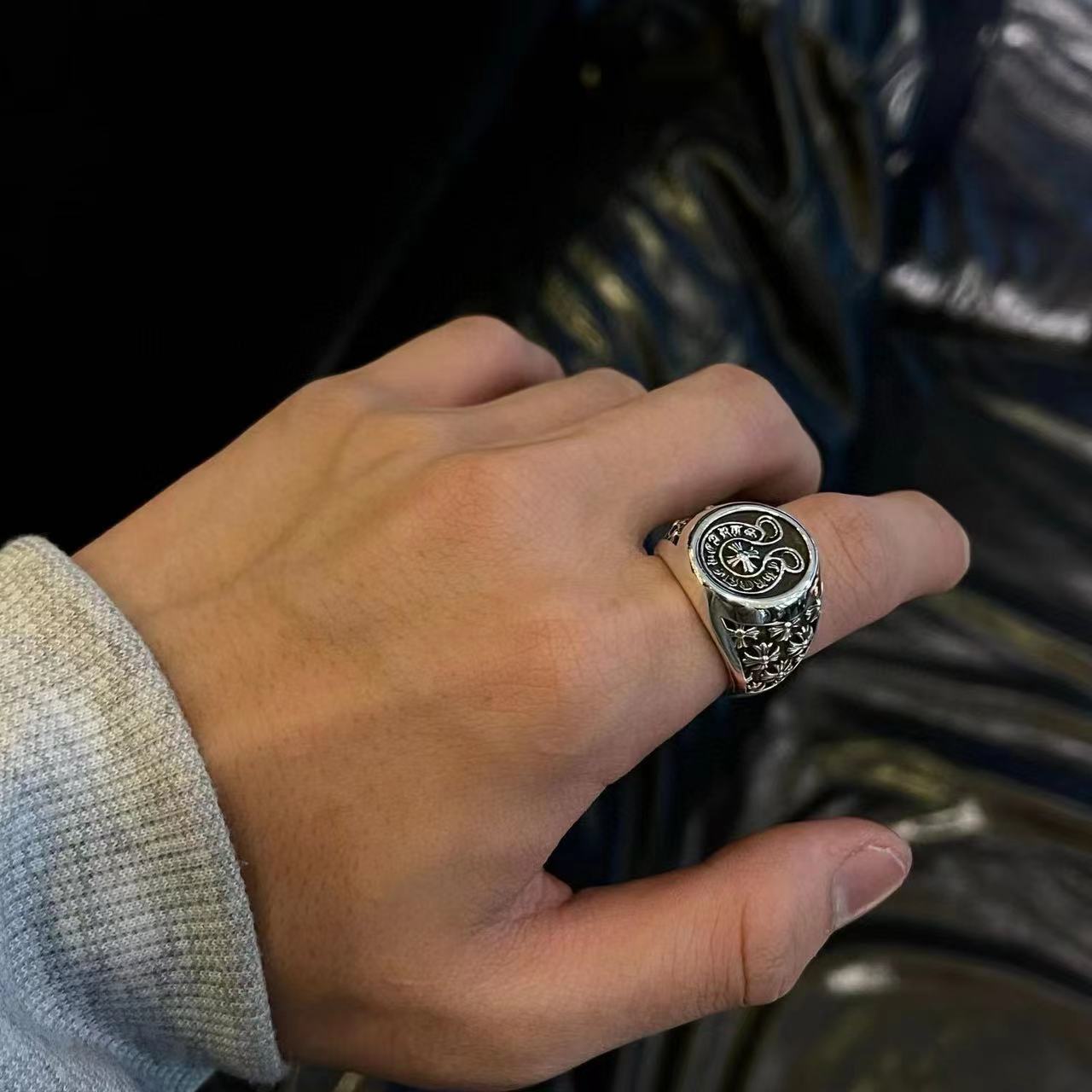 NIGO Chrome Hearts Men's and Women's Silver Crucifix Logo Punk Rock Couple's Ring Jewelry #nigo97774