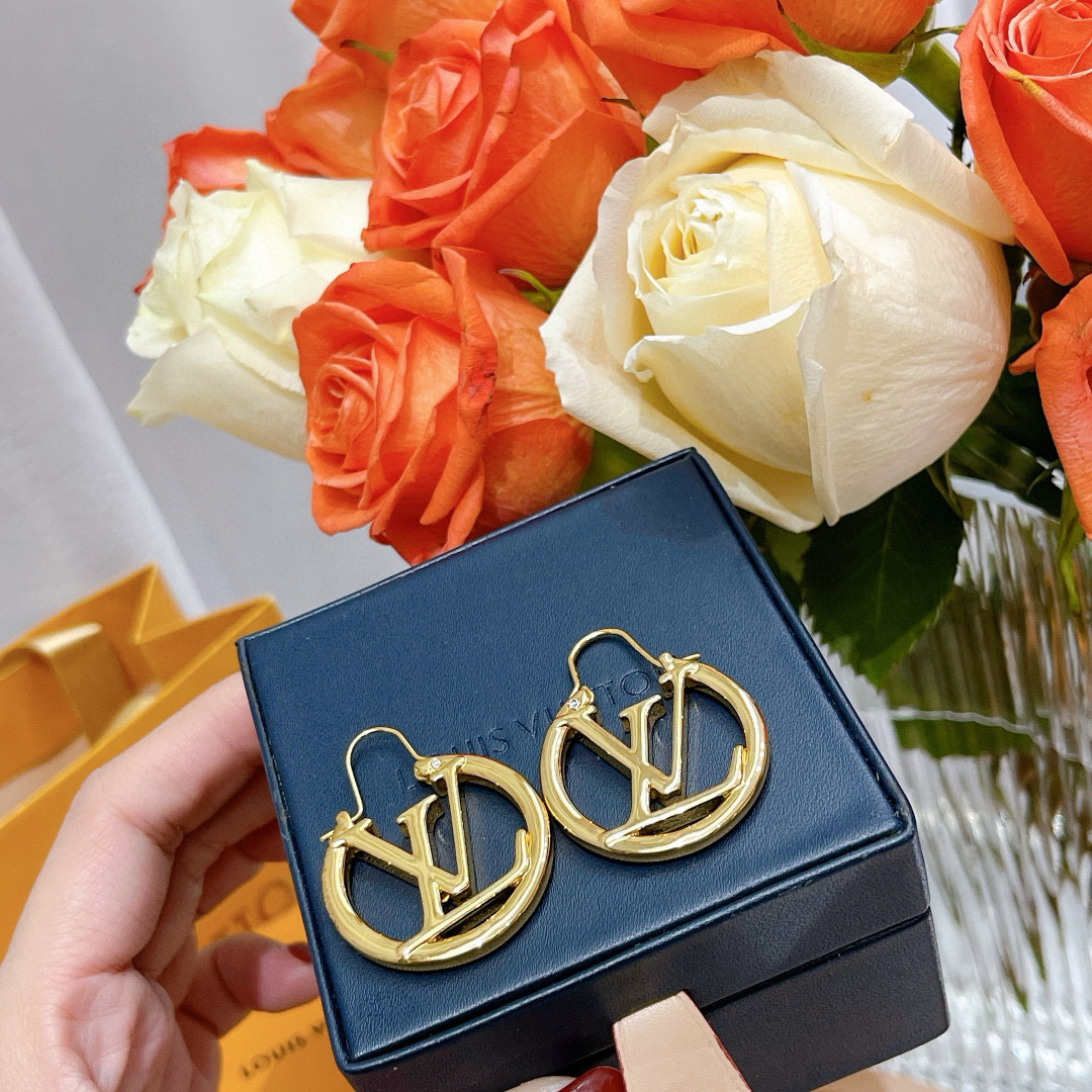 NIGO Louis Vuitton Women's Gold Round LV Logo Metal Earrings Jewellery #nigo97863