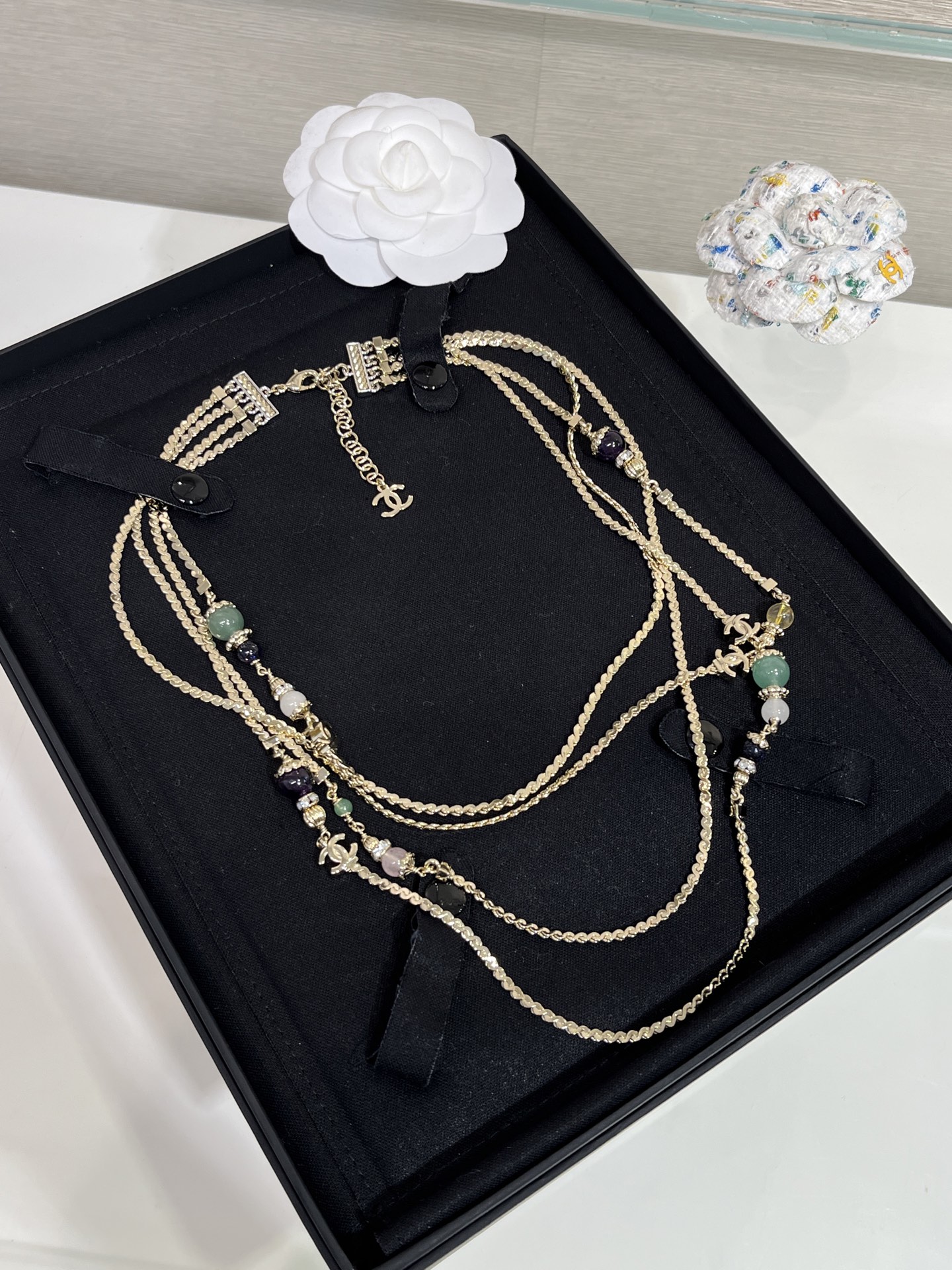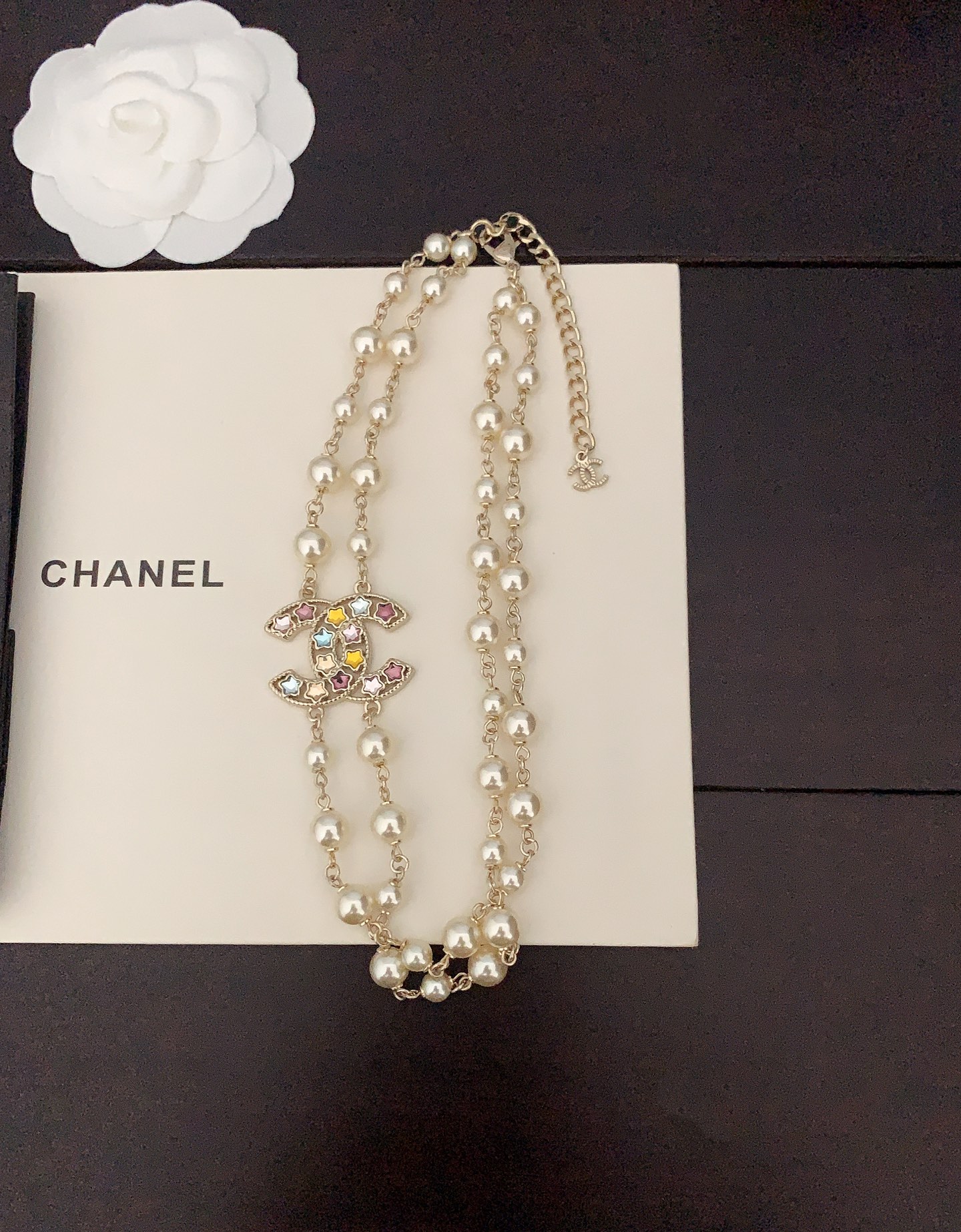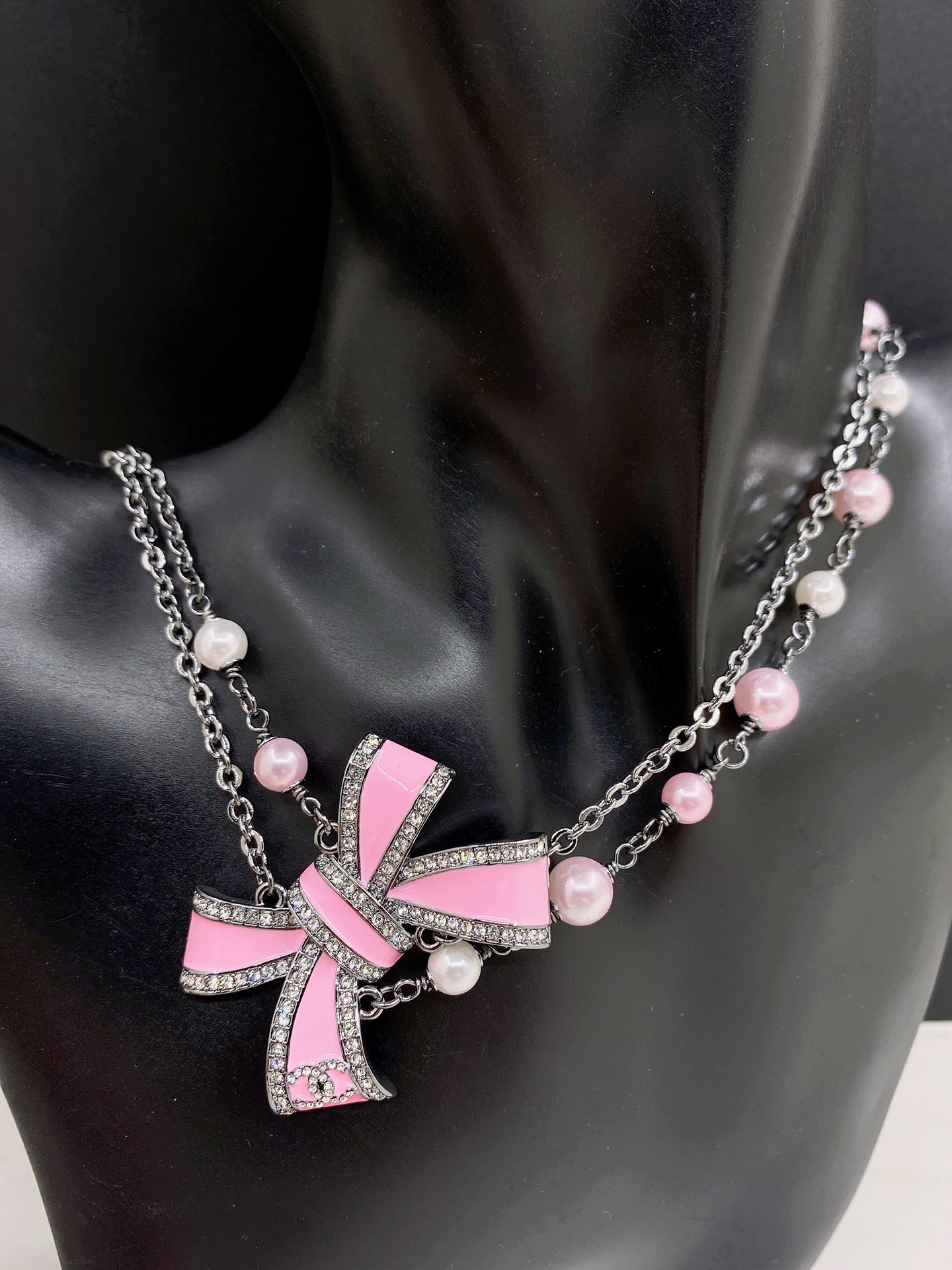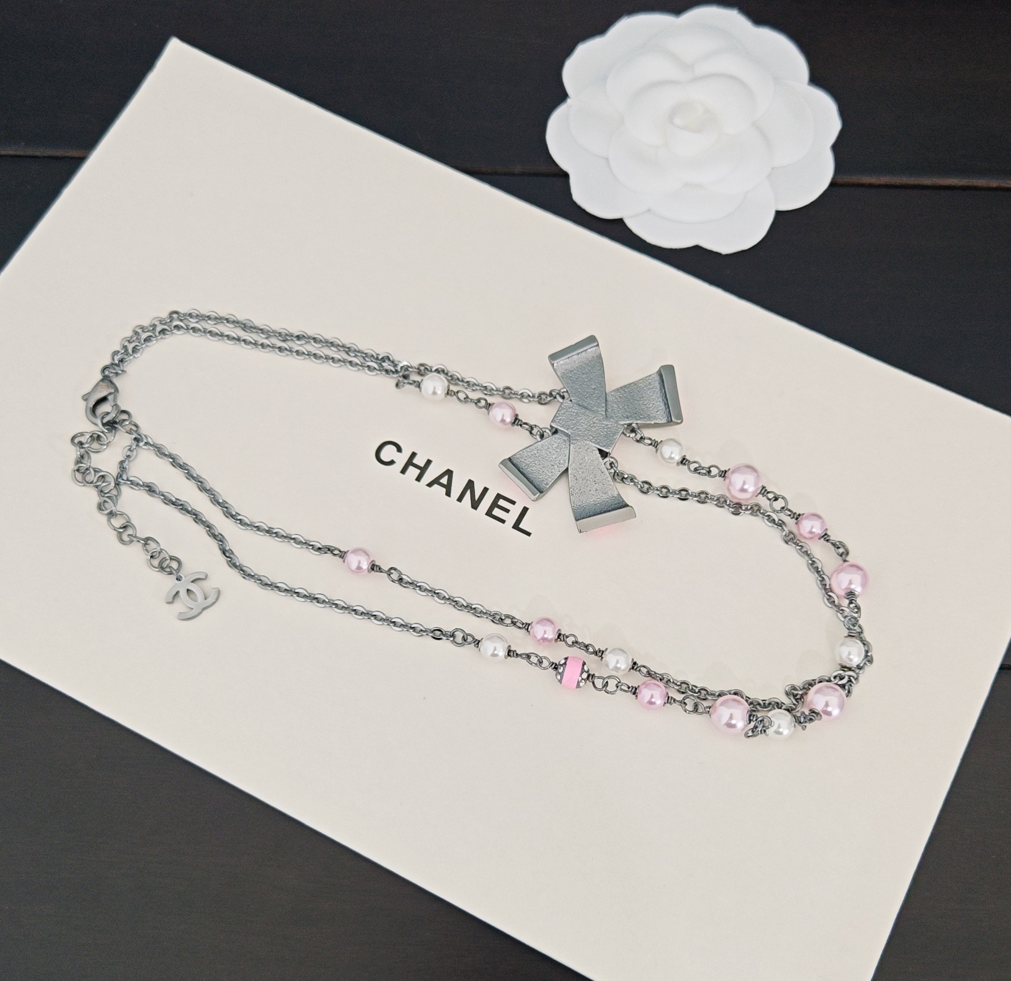 NIGO Chanel Women's Fashion Classic Bow Pearl Double Layer Necklace Jewelry Accessories #nigo78553