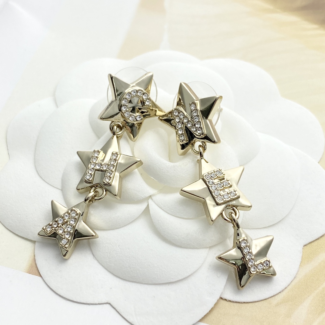 NIGO Chanel Women's Fashion Classic Fringe Rhinestone Star Letter Stud Earrings Jewelry Accessories #nigo78552