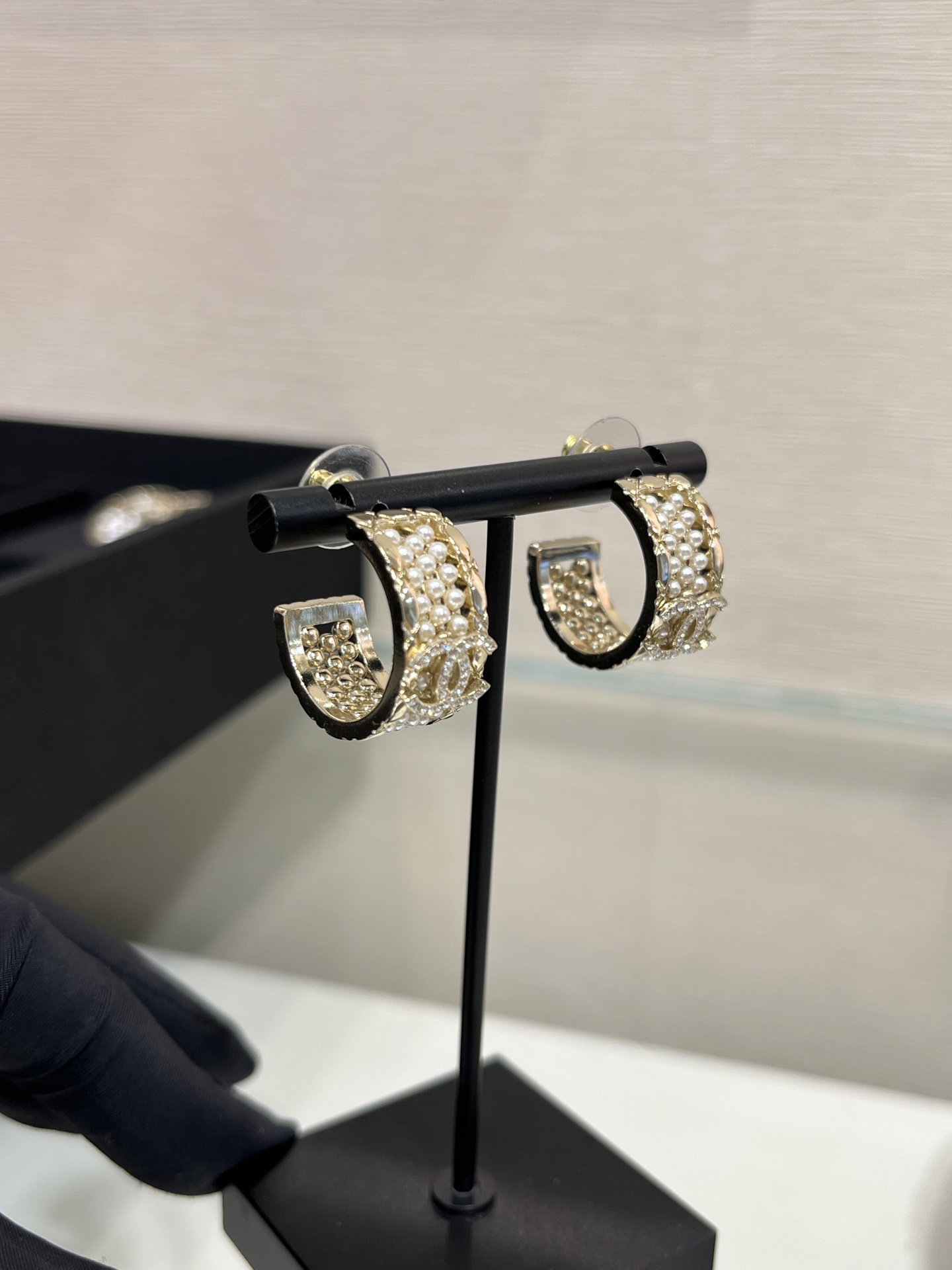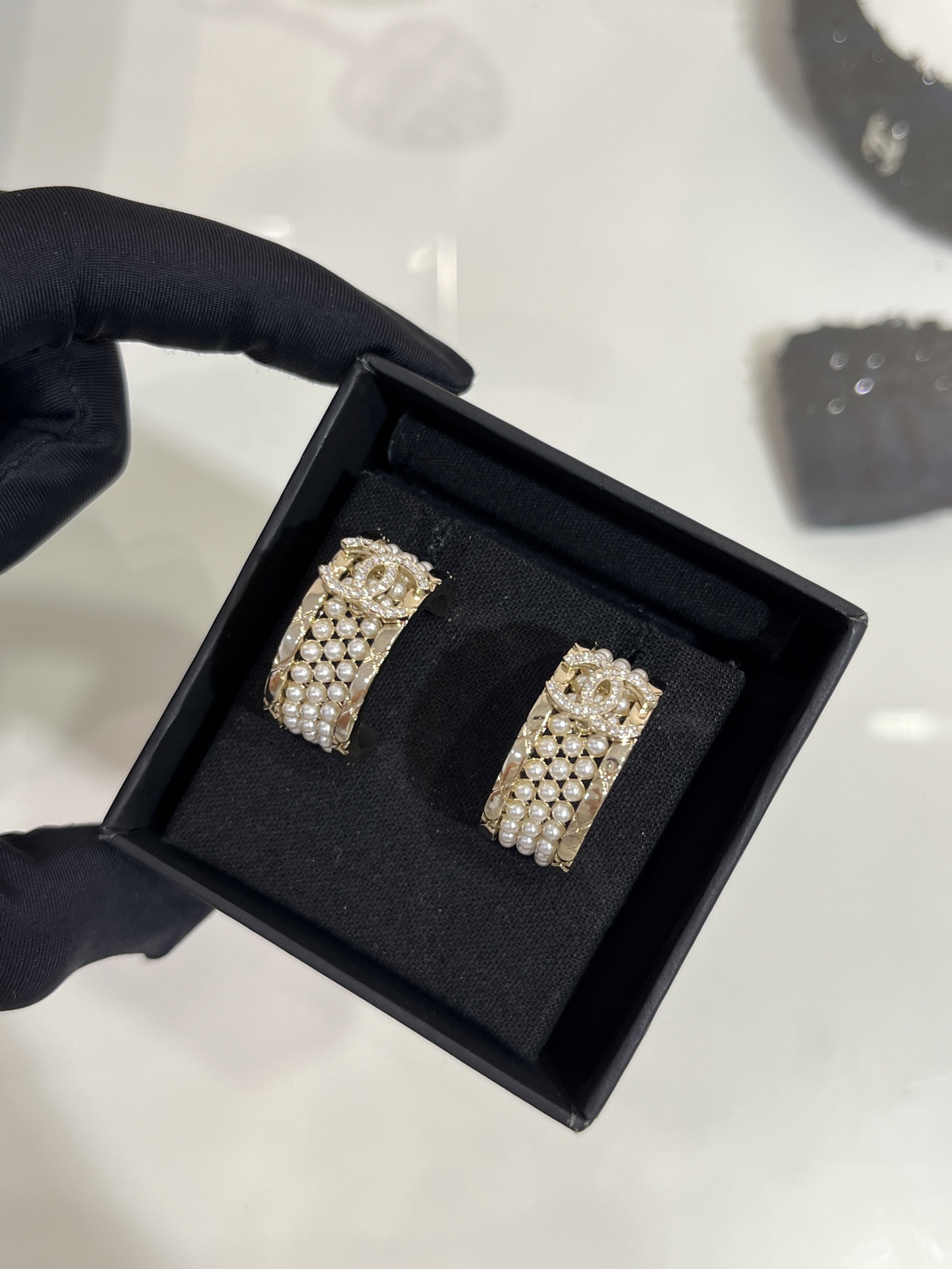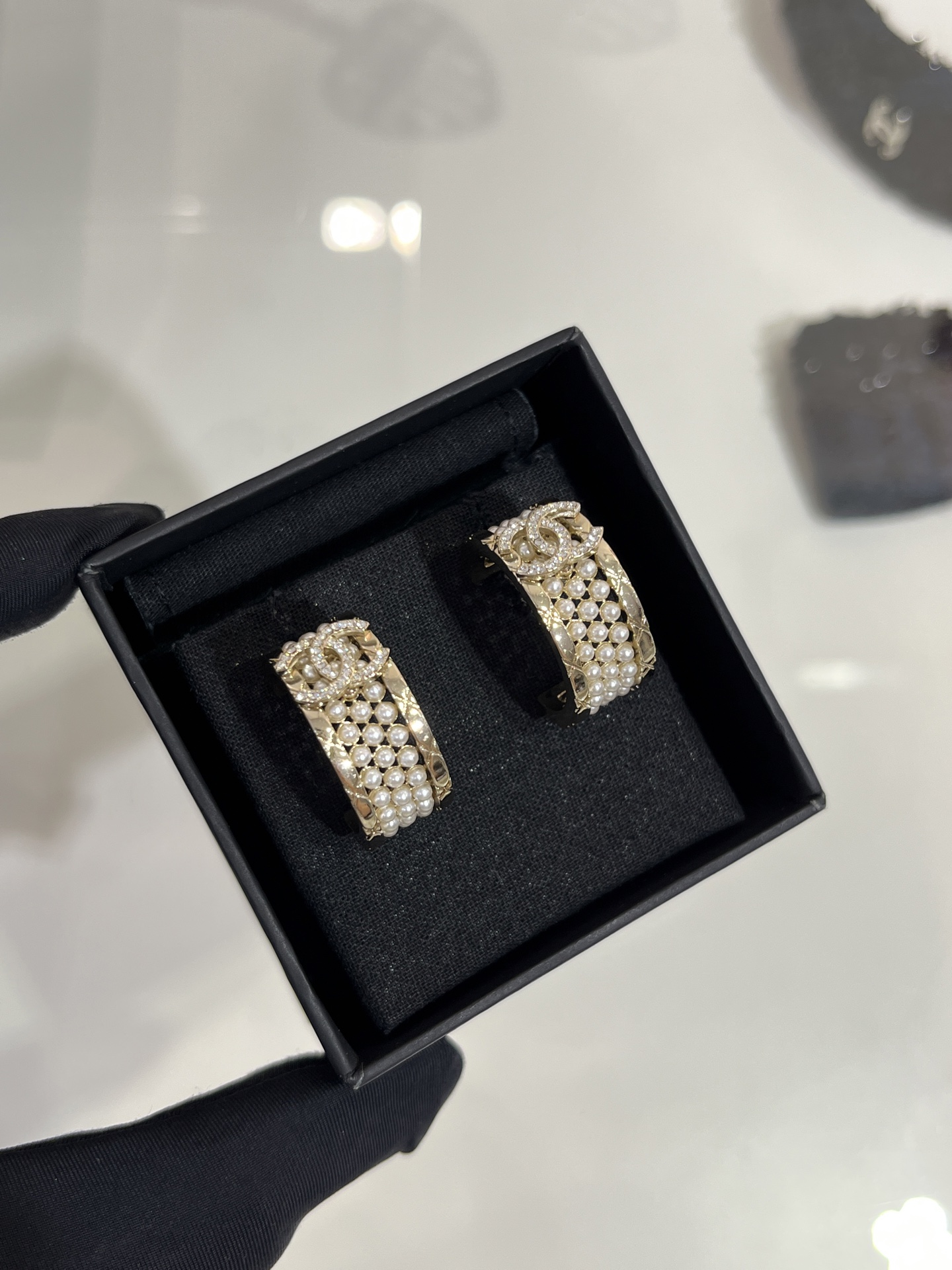 NIGO Chanel Women's Light Gold Double C Pearl Circle Earrings Jewelry Accessories #nigo77972