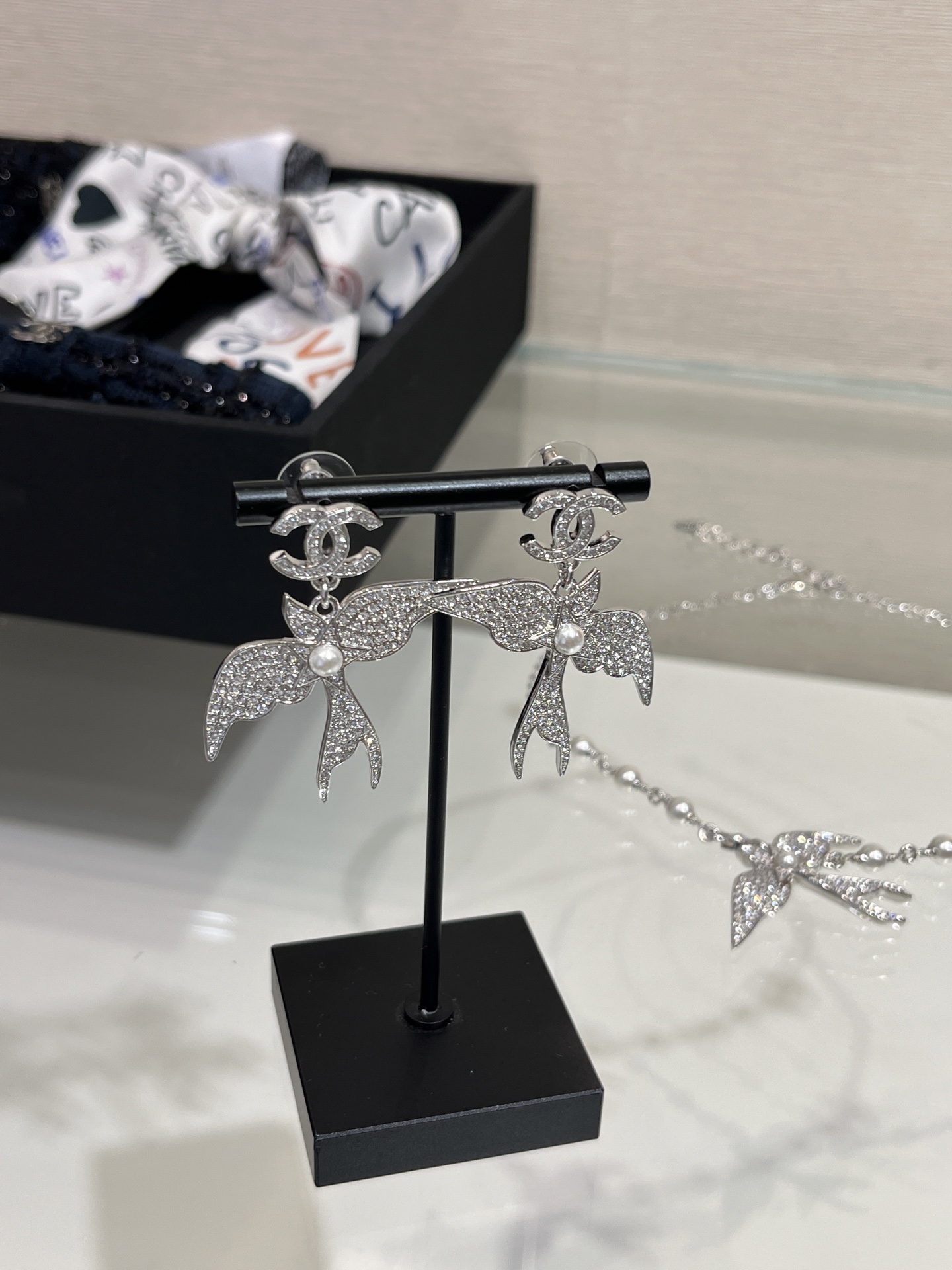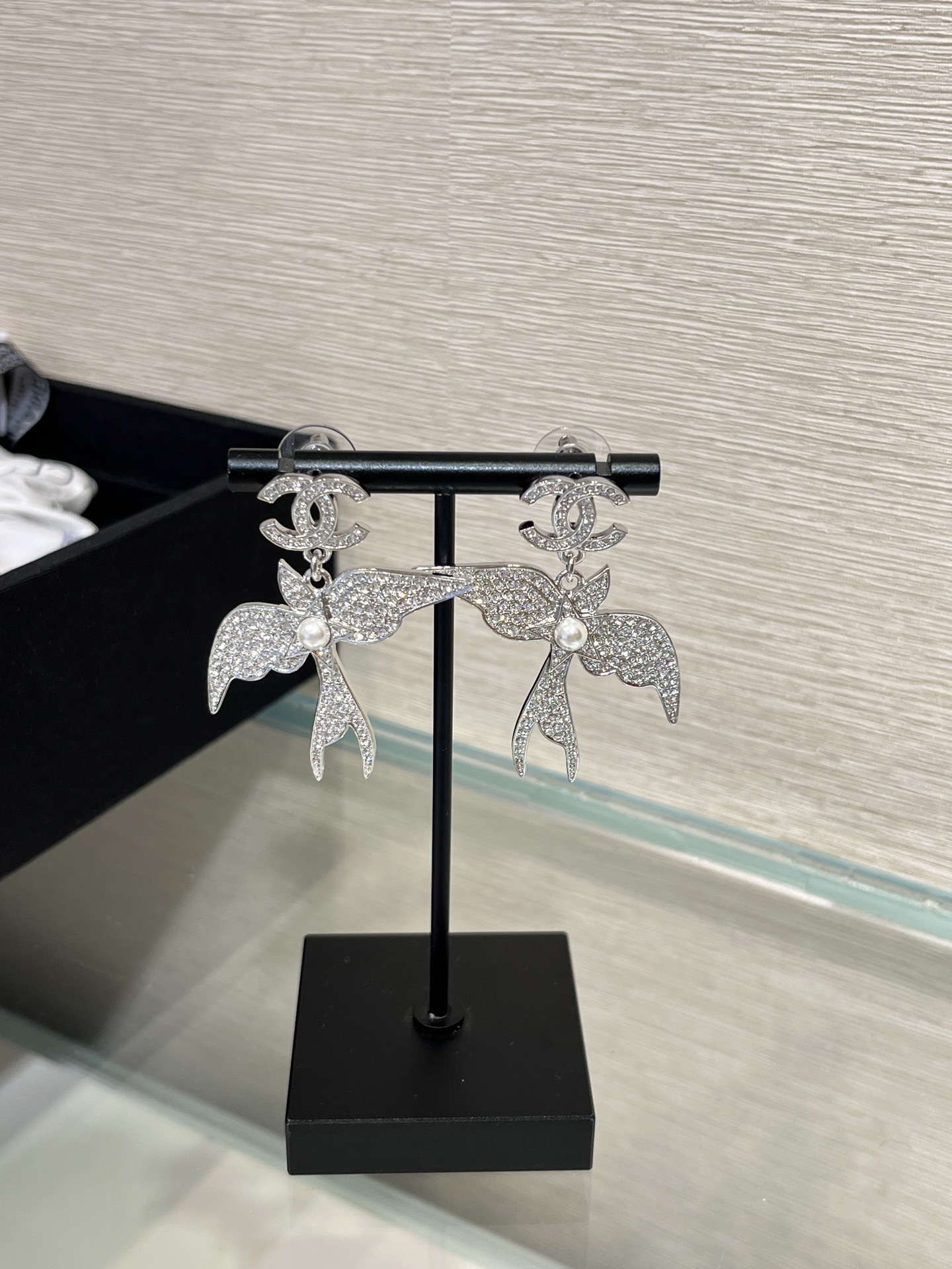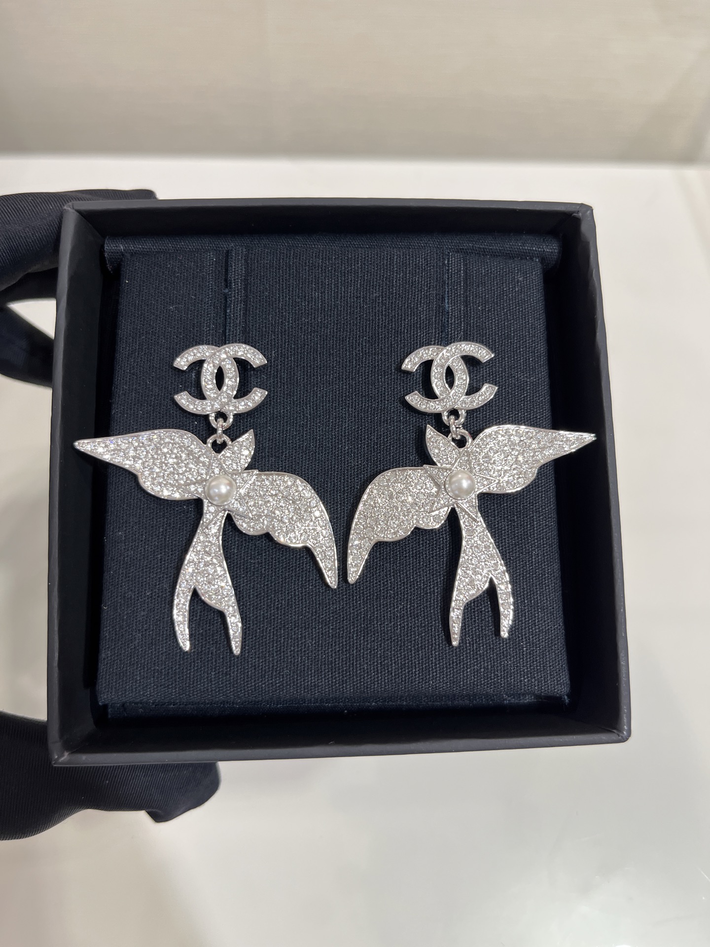 NIGO Chanel Women's Solid Color Diamond-Studded Swallow Pendant Double C Stud Earrings Jewelry Accessories #nigo77974