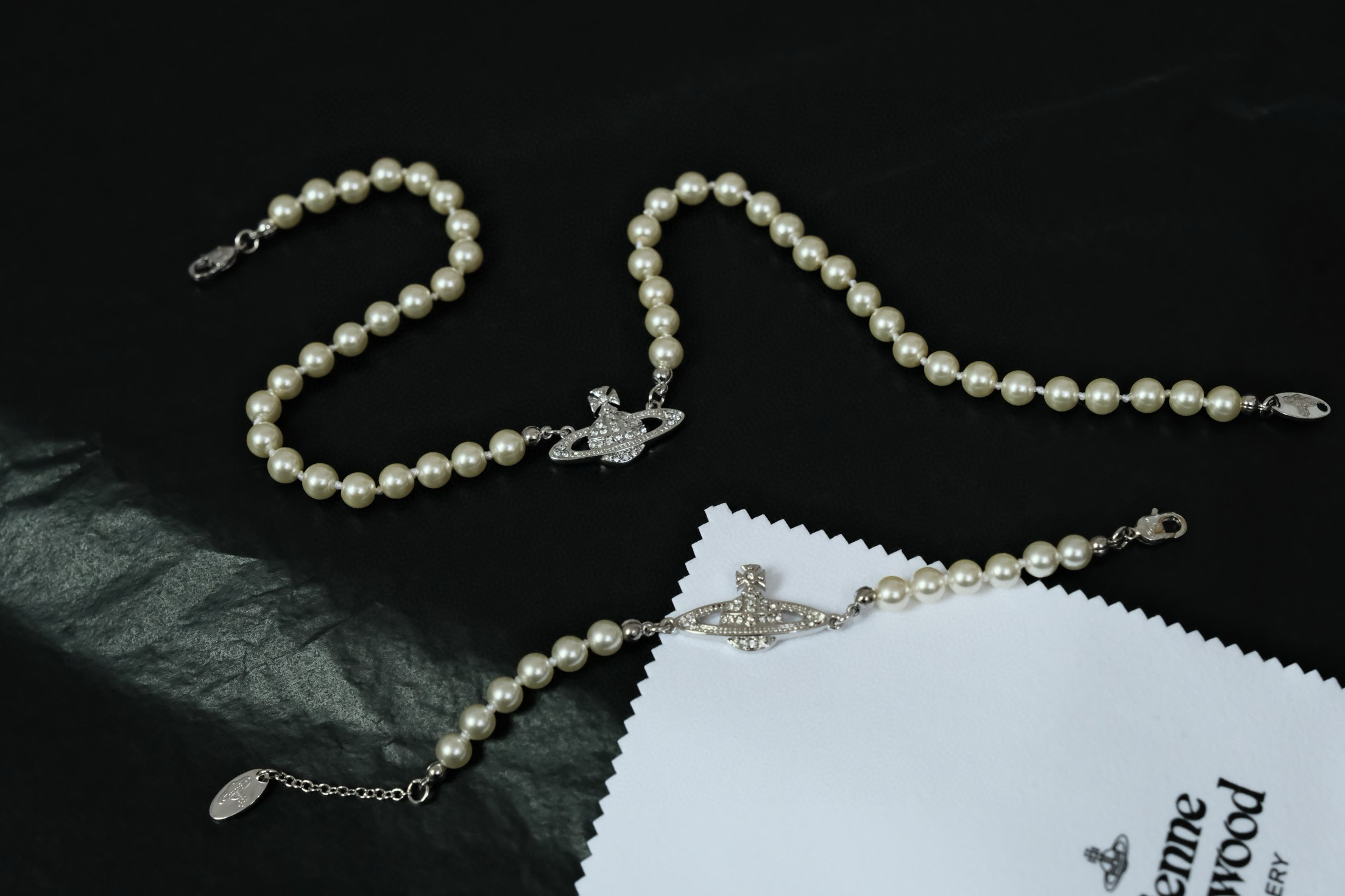 NIGO Vivienne Women's Solid Color Saturn Pendant Pearl Necklace Bracelet Jewelry Accessories #nigo77261
