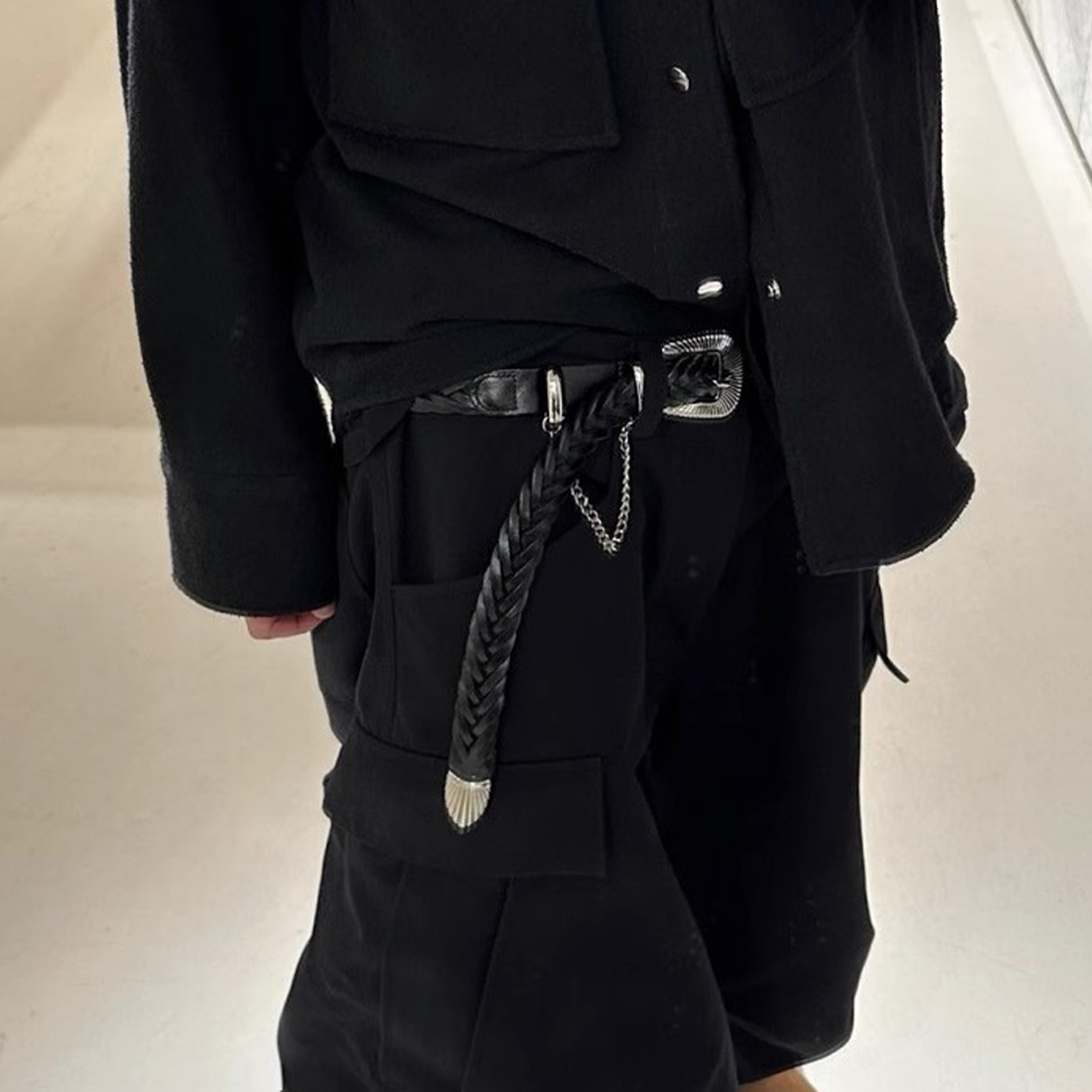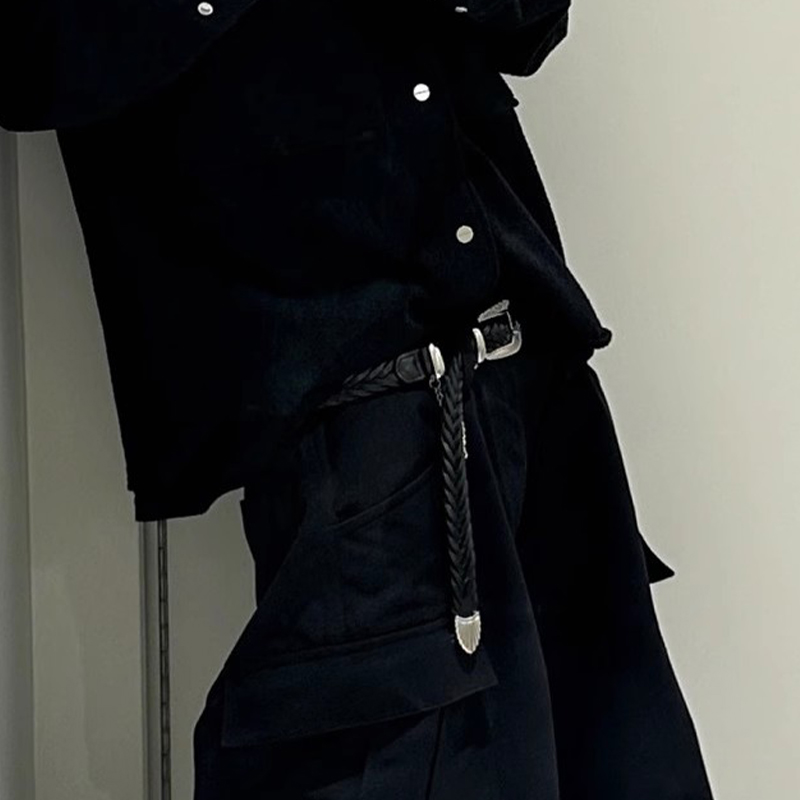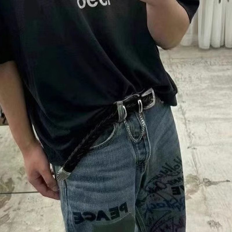 NIGO JieDa Men's Cowhide Braided Solid Color Vintage Chain Belt No Punch Belt Ngvp #nigo8275