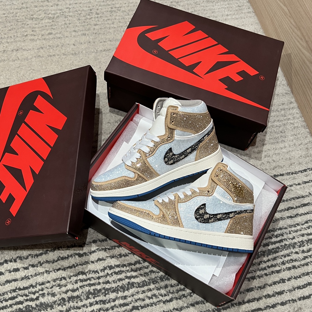 NIGO Jordan Air Jordan Men's And Women's Barb Full Diamond High Top Lace Up Flat Retro Basketball Shoes #nigo75486