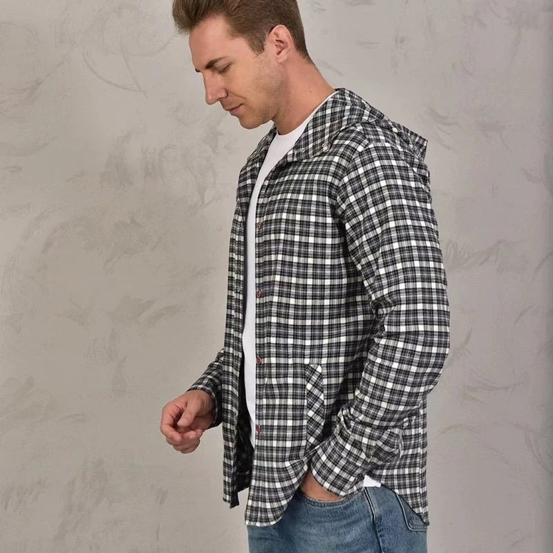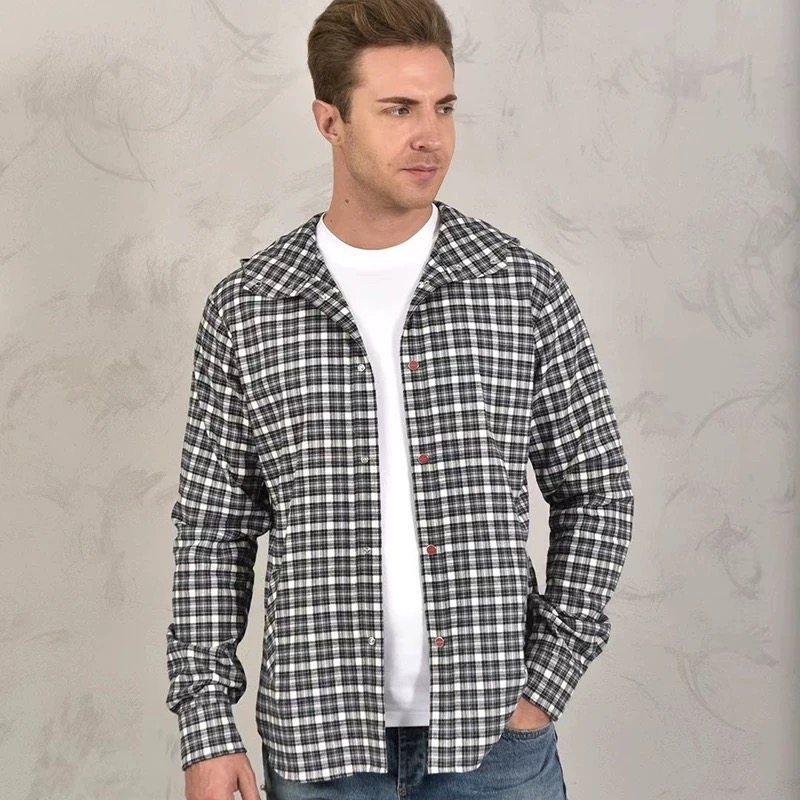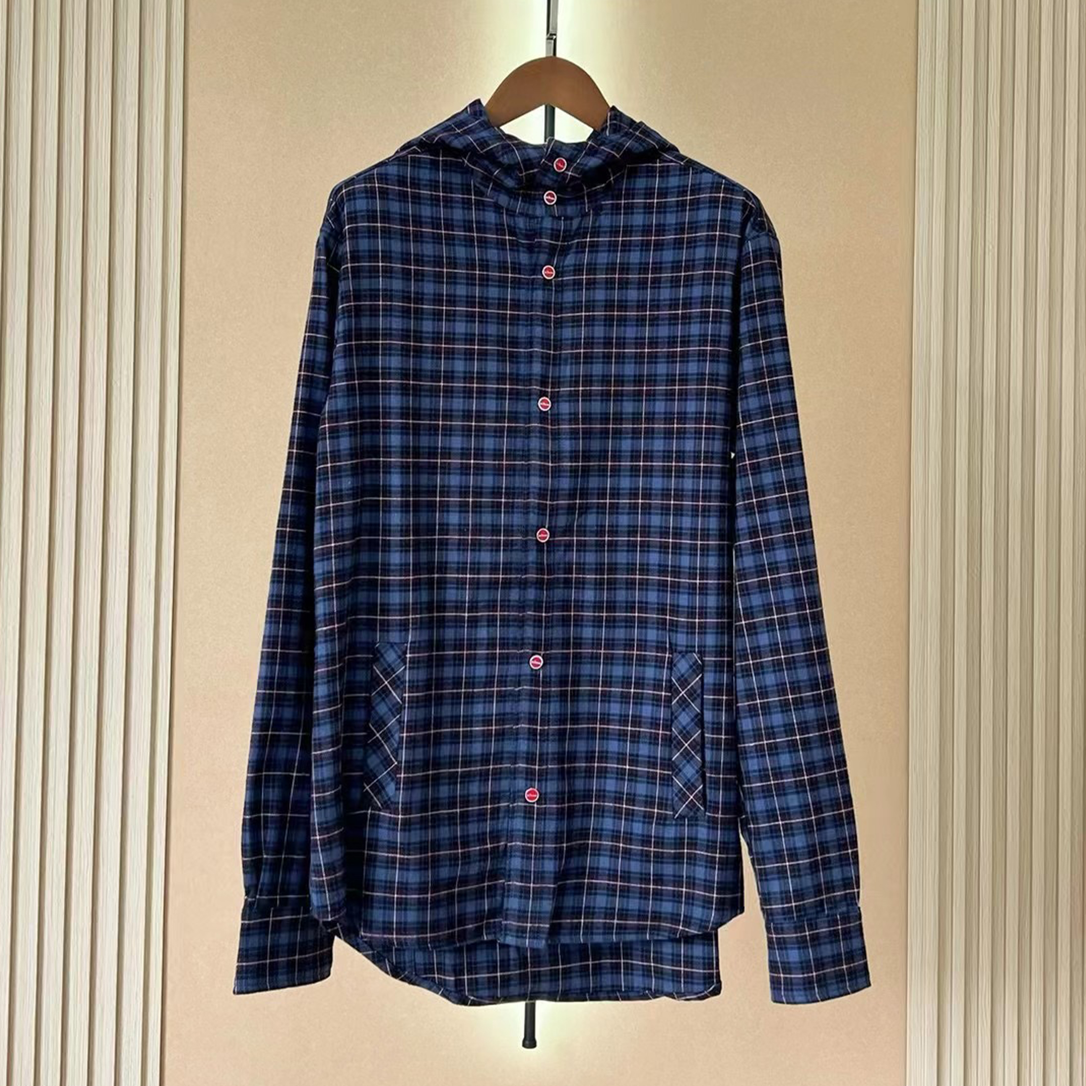 NIGO Kiton Men's Spring And Fall Retro Plaid Hooded Shirt Long-sleeved Lapel Buttons Fashion Casual Denim Cotton Shirt Ngvp #nigo8879
