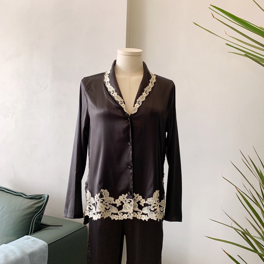 NIGO La Perla Women's Spring And Fall Fashion Classic Black Lace Embroidery Silk Pajamas Comfortable Leisure Home Wear #nigo98747