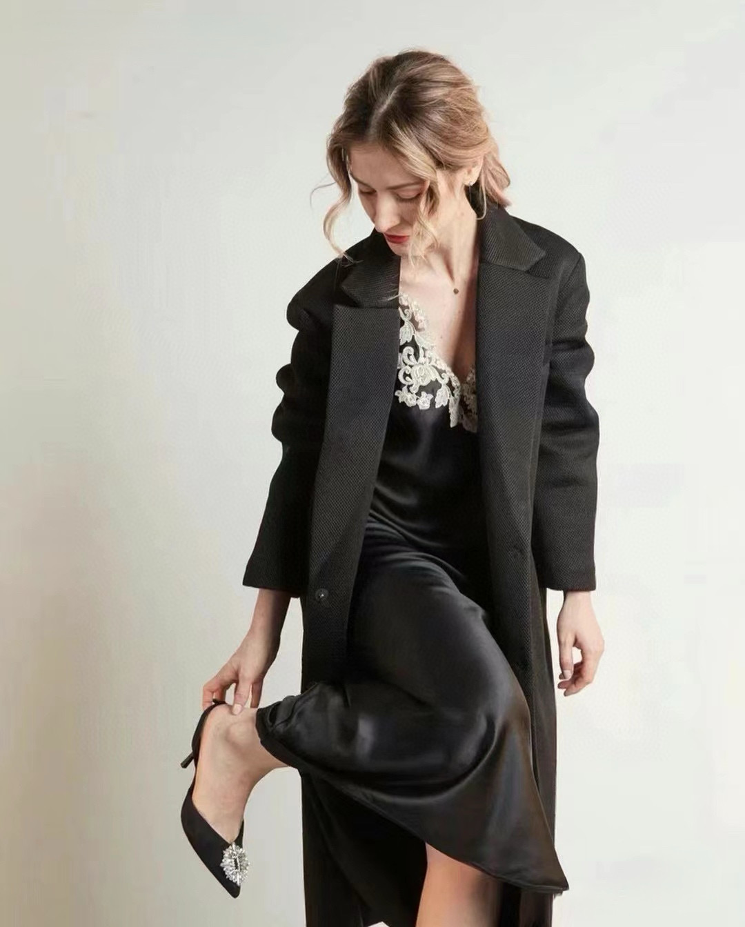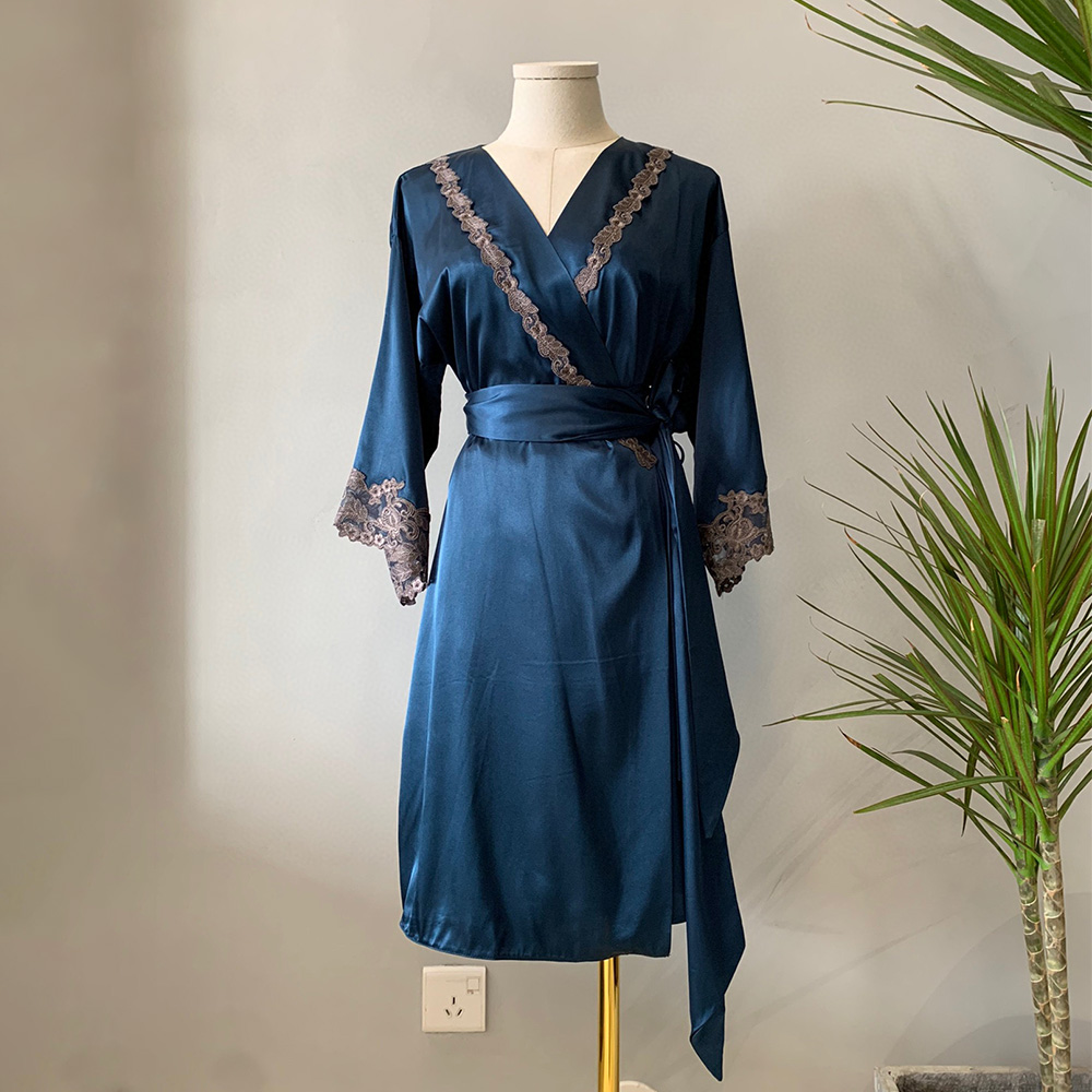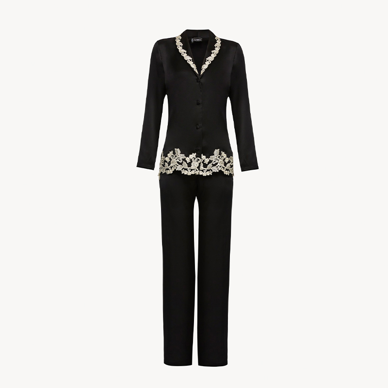 NIGO Laperla Women's Spring Lace Embroidery Pajamas Solid Color Lapel Silk Long Sleeve Loungewear Set Suit Ngvp #nigo1821