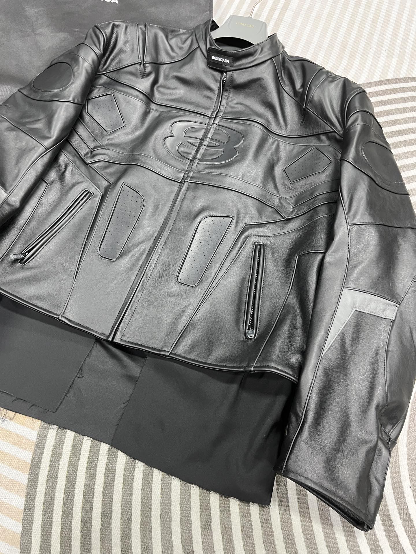 NIGO Balenciaga Men's Fall And Winter Black Round Neck Zipper Closure Regular Fit Long Sleeve Leather Jacket #nigo73673