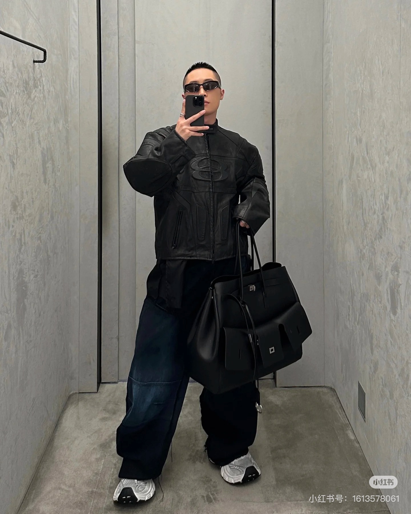 NIGO Balenciaga Men's Fall And Winter Retro Splicing Zipper Collar Long Sleeve Loose Leather Jacket Ngvp #nigo9198