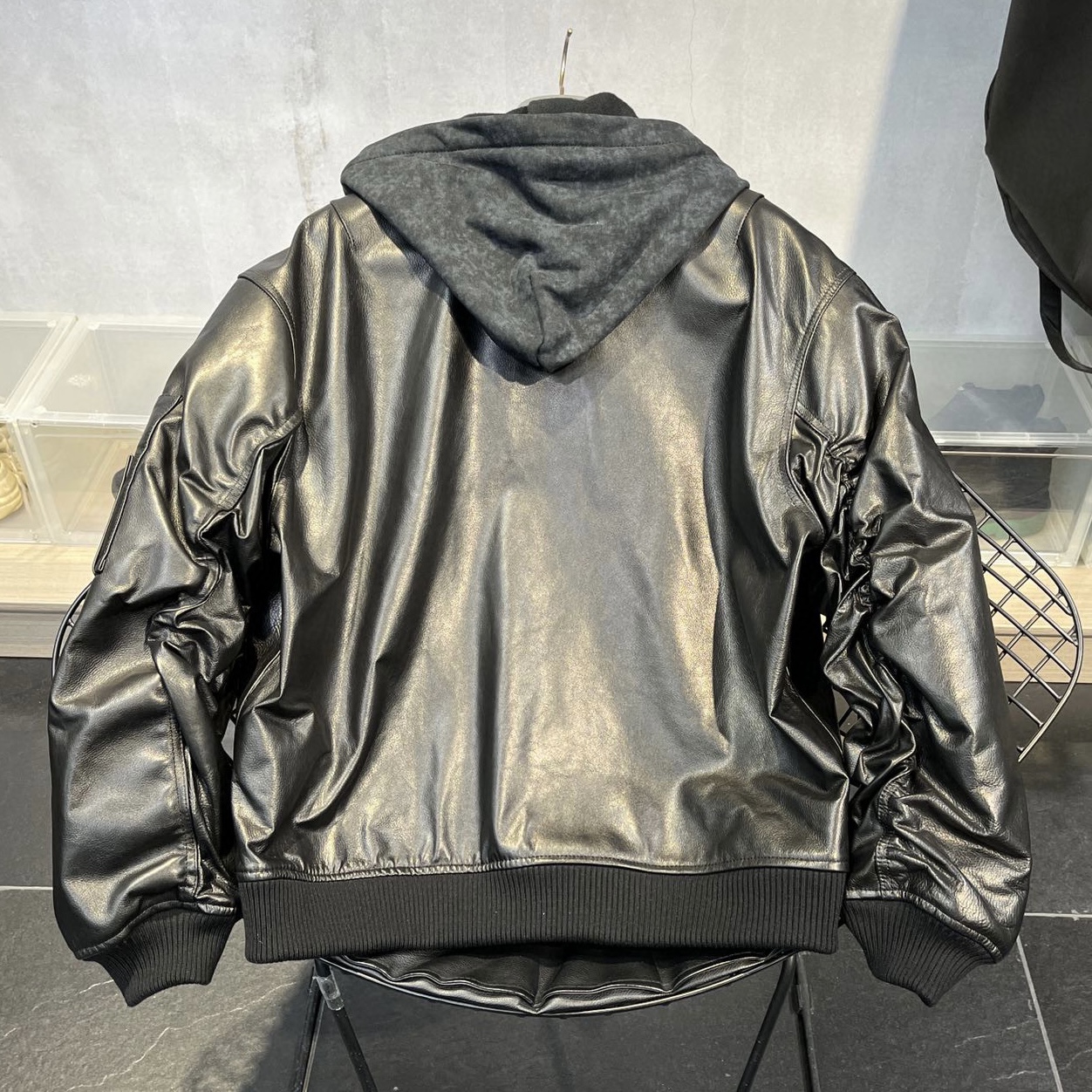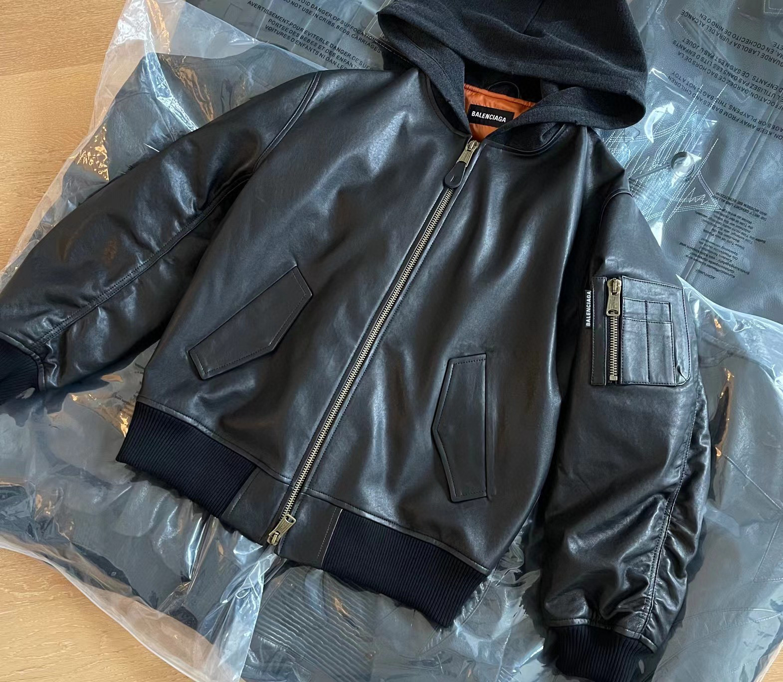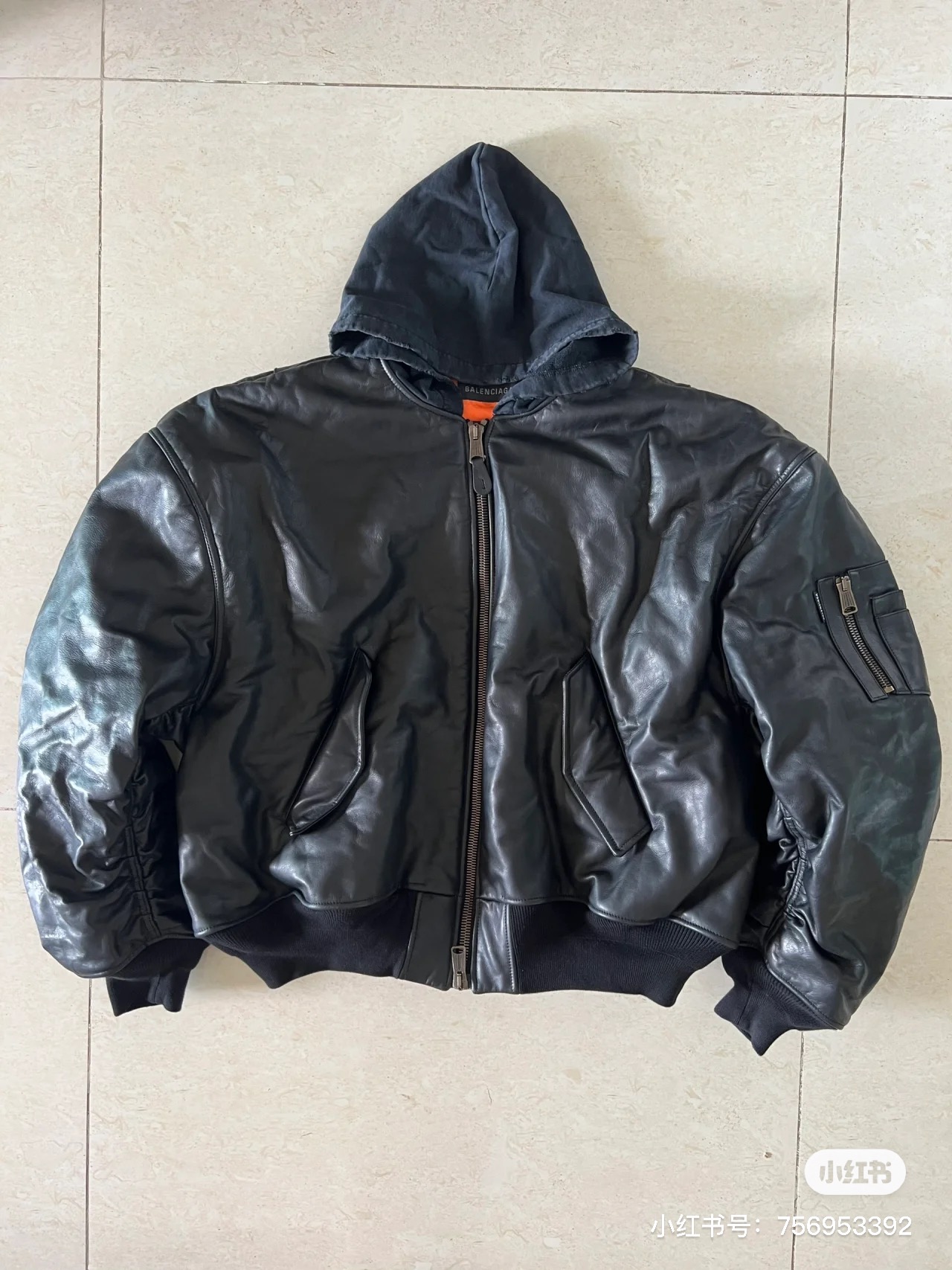 NIGO Balenciaga Men's Winter Black Zipper Long Sleeve Hooded Pilot Loose Leather Jacket Ngvp #nigo6986