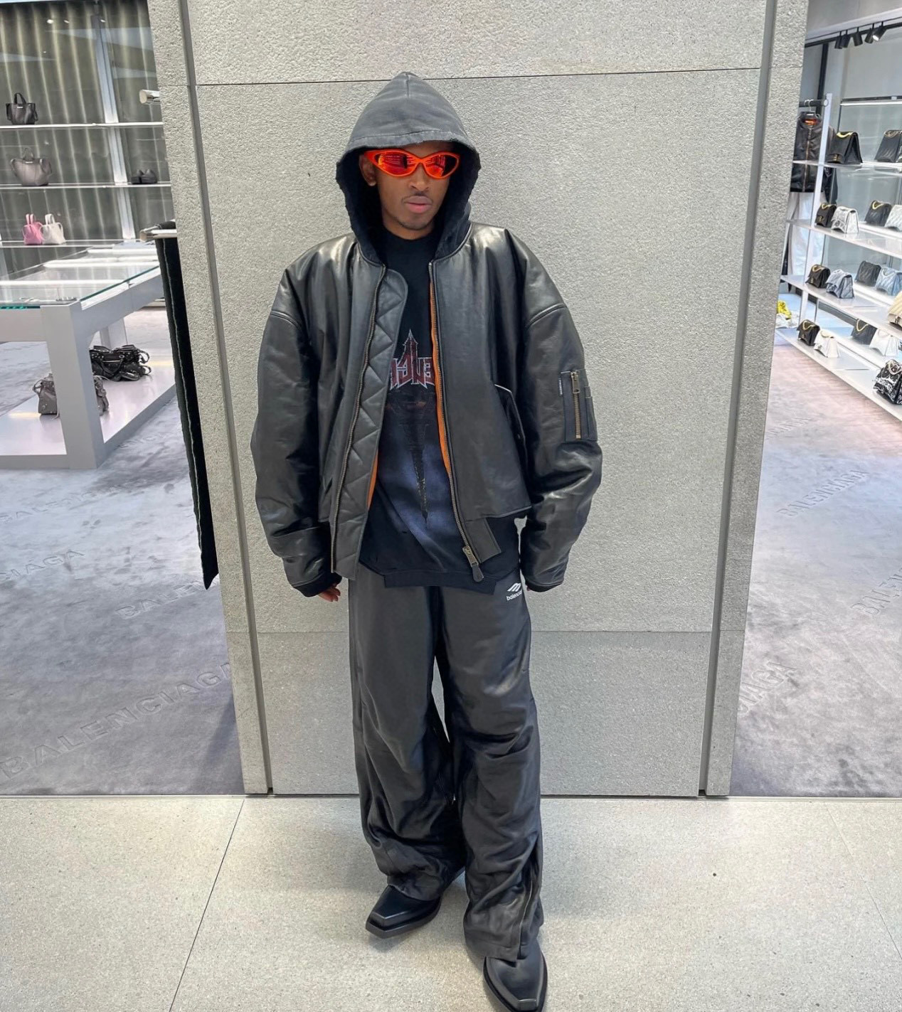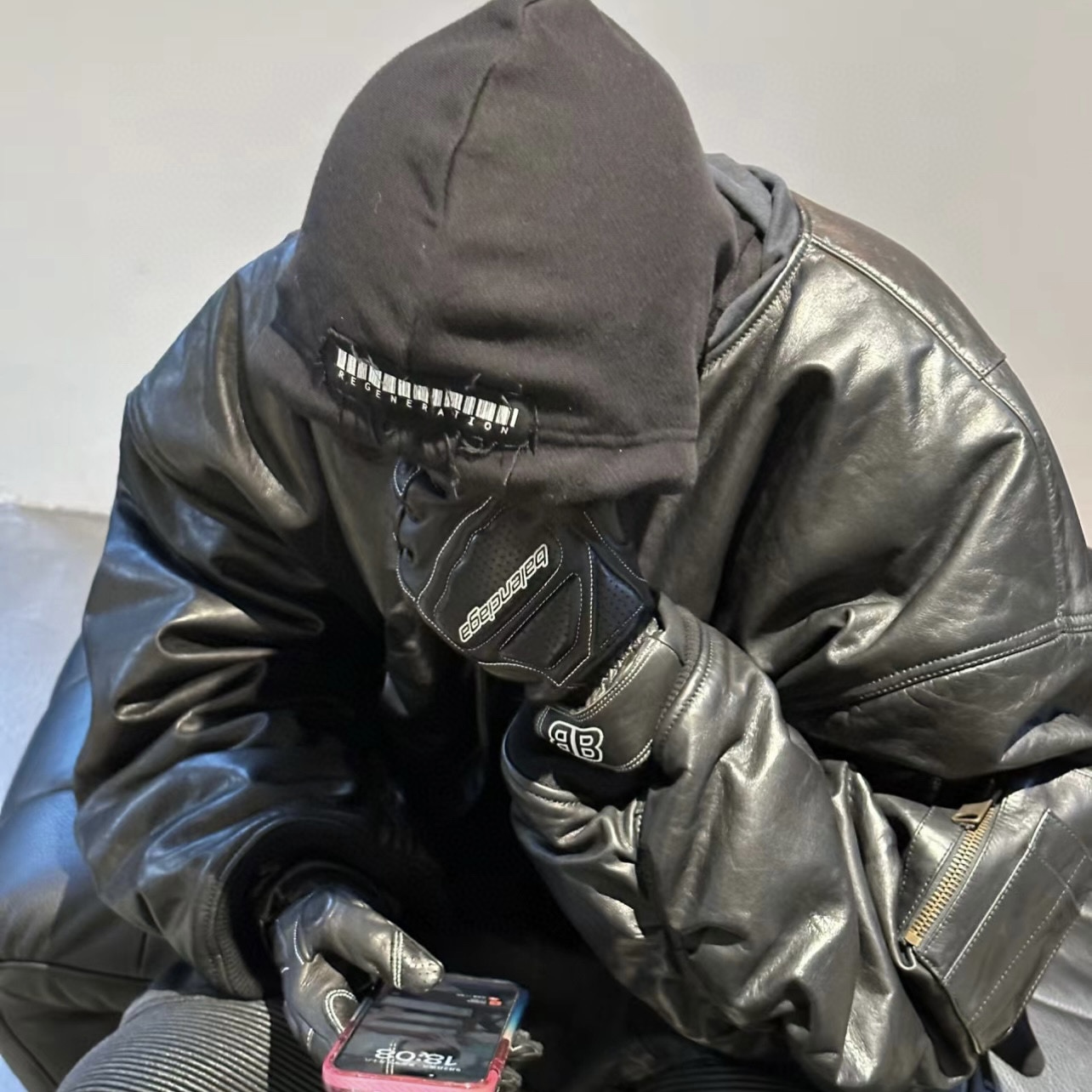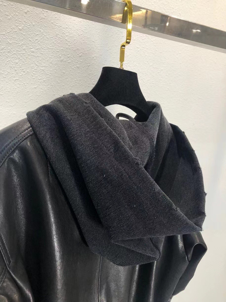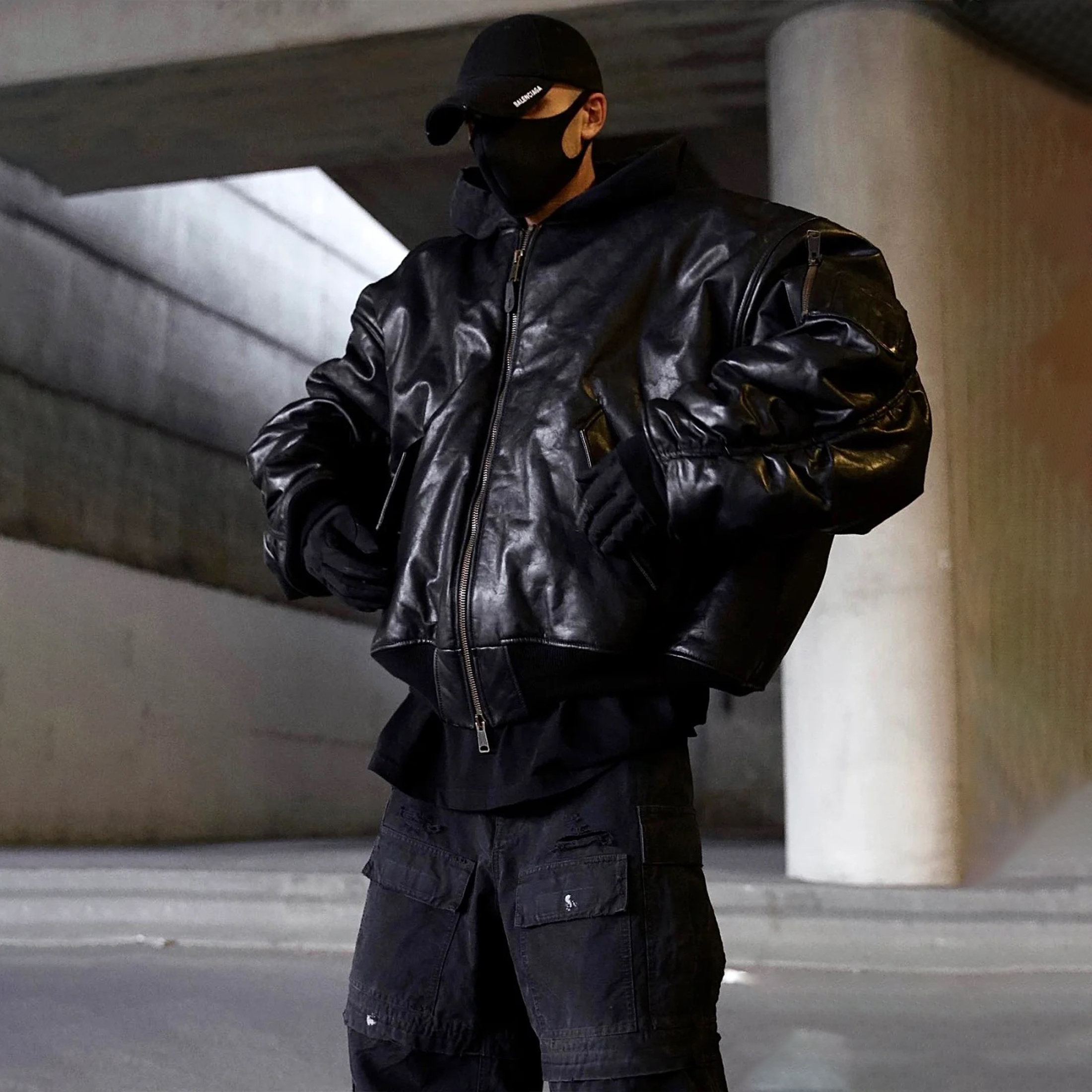 NIGO Balenciaga Men's Winter Black Zipper Long Sleeve Hooded Pilot Loose Leather Jacket Ngvp #nigo6986
