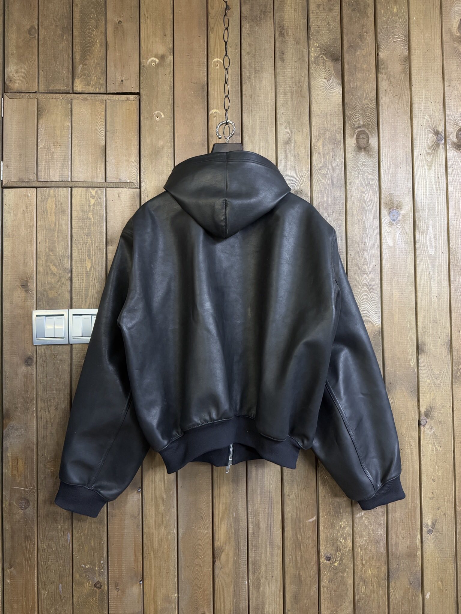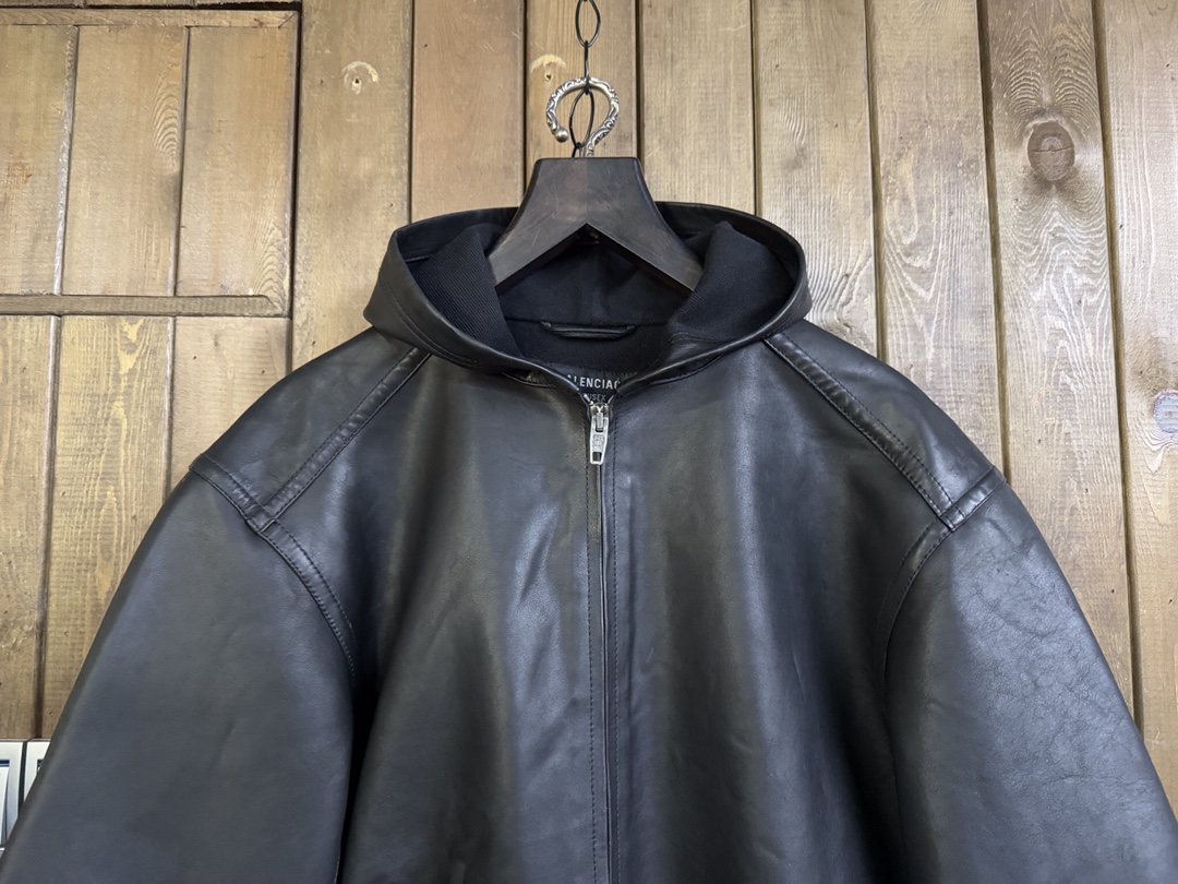 NIGO Balenciaga Men's Women's Autumn And Winter Loose Contour Hooded Leather Jacket Zip High Street Hip Hop Biker Style Jacket Ngvp #nigo9784