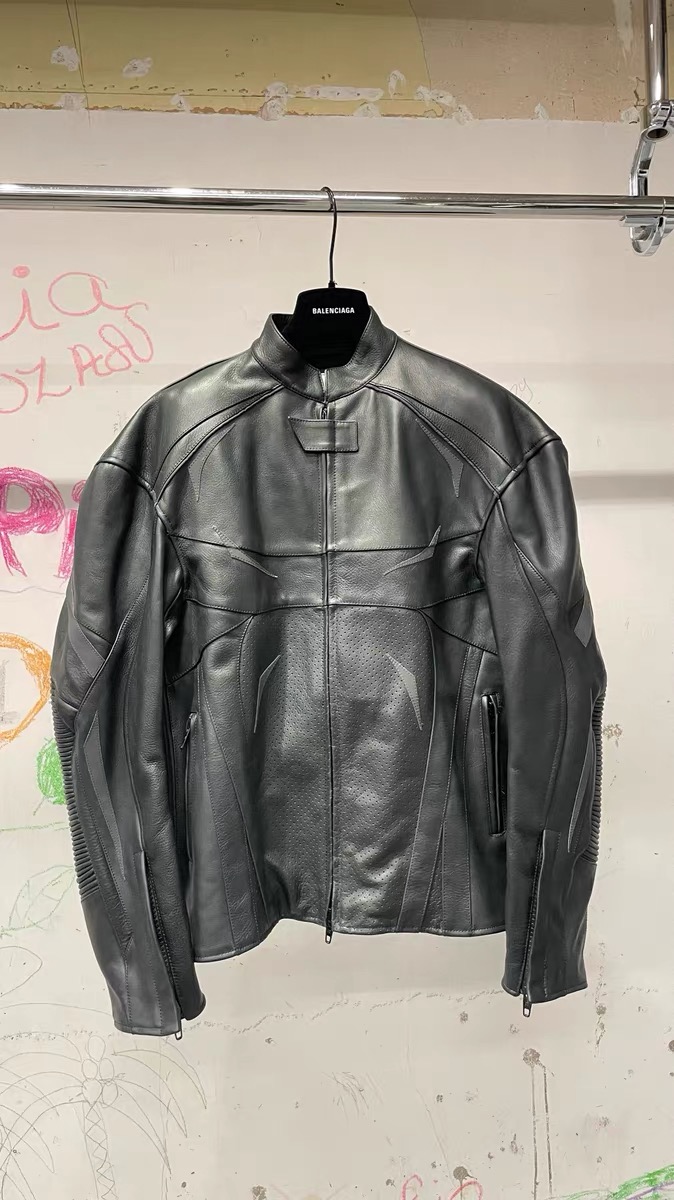 NIGO Balenciaga Mens Winter Black Biker Leather Jacket Coat #nigo96916