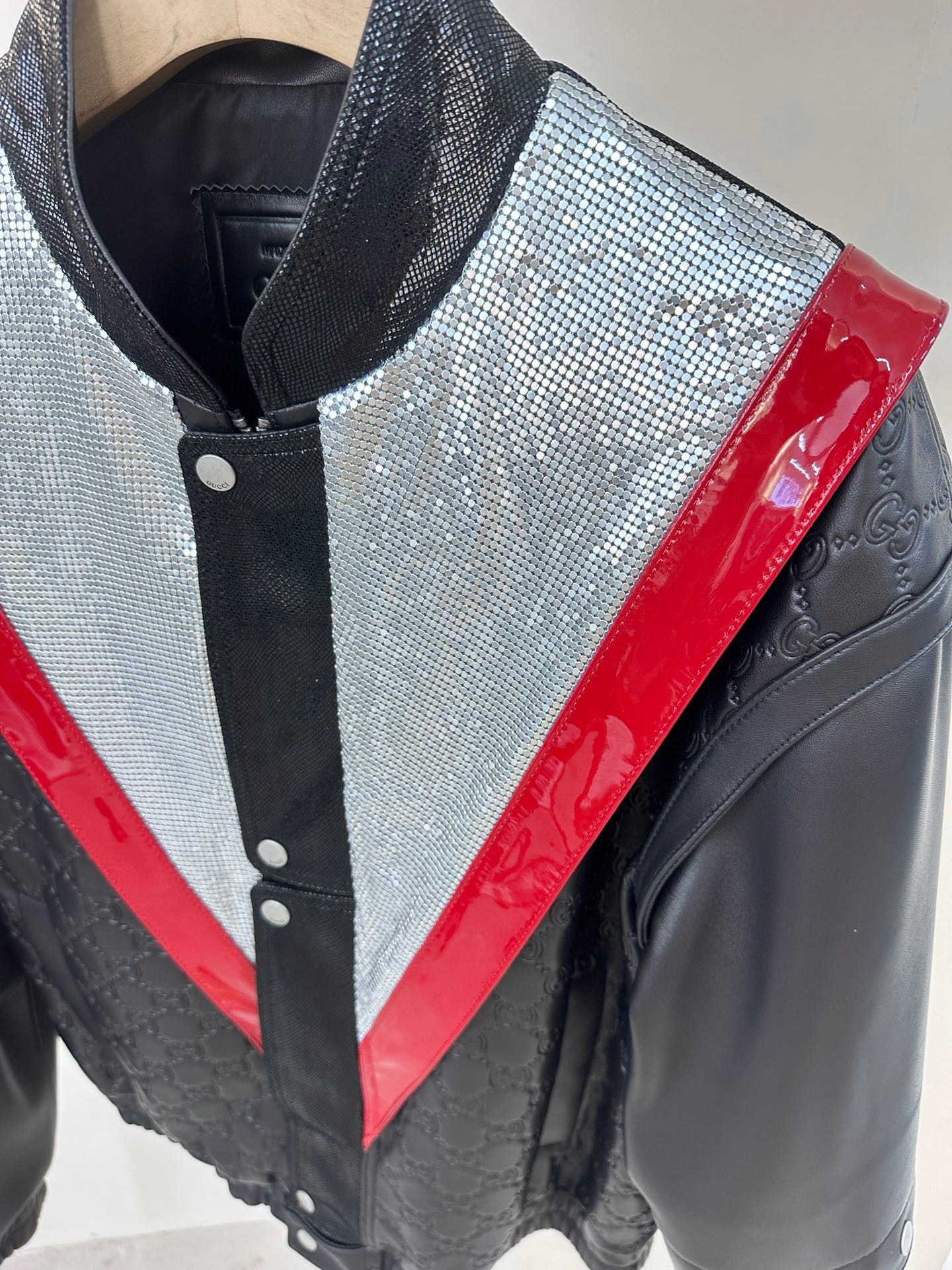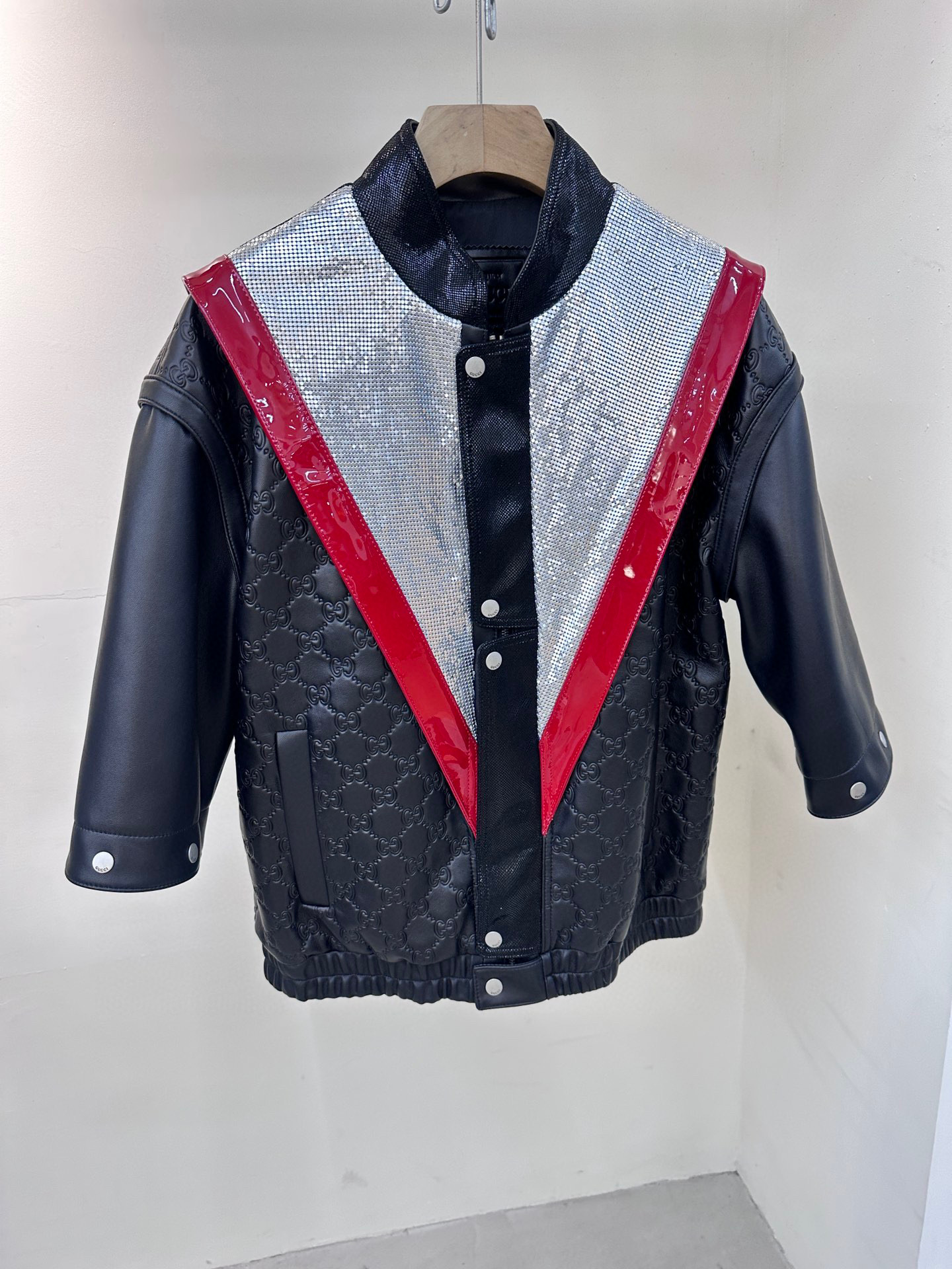 NIGO Gucci Men's Fall Detachable Sleeve Single Breasted Leather Jacket #nigo97142