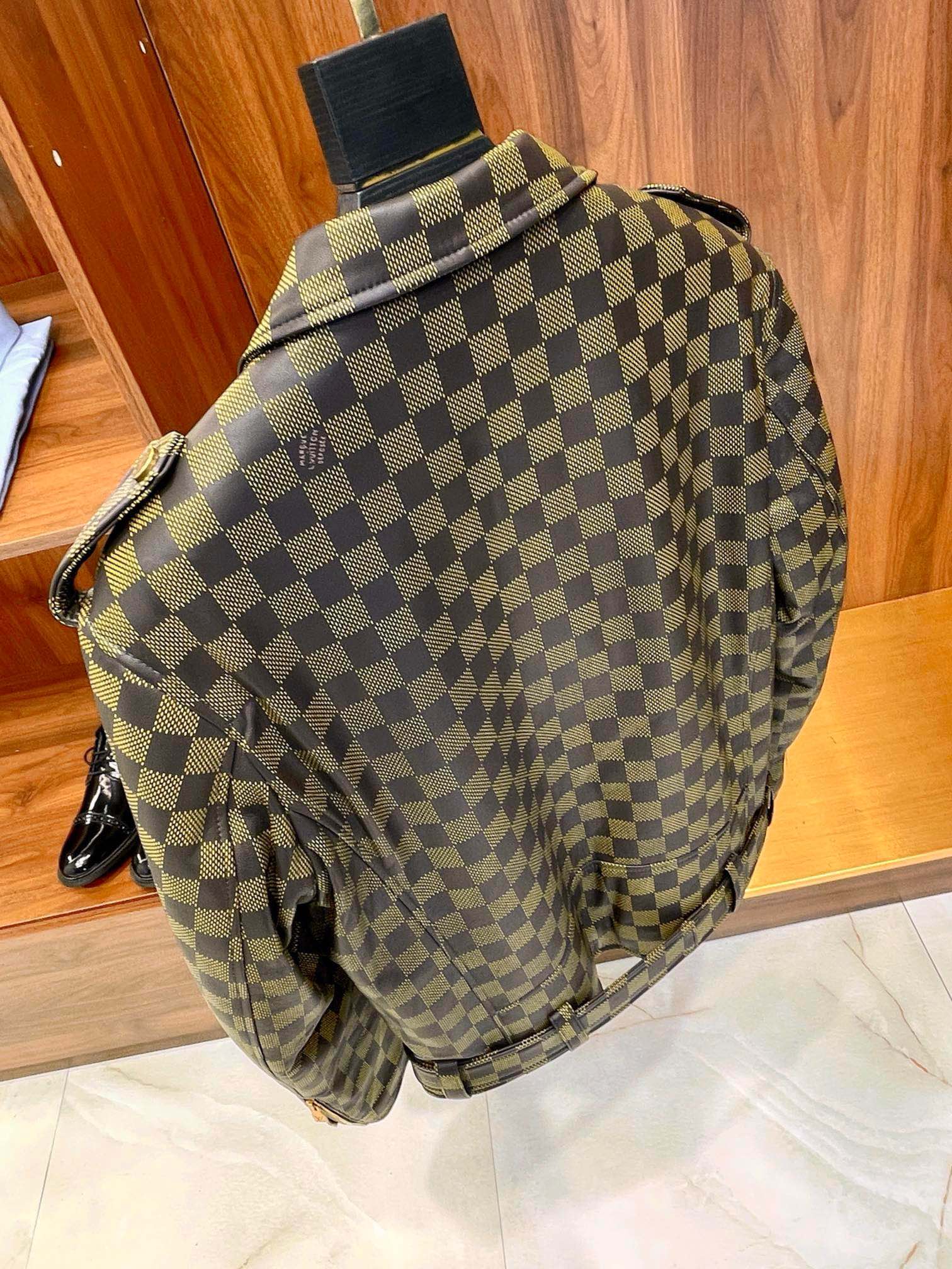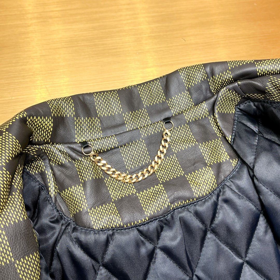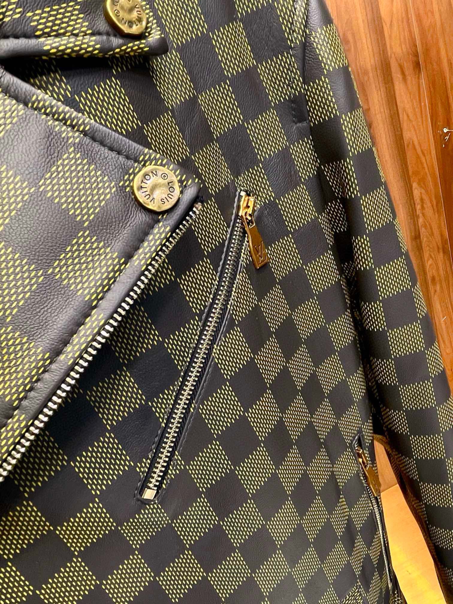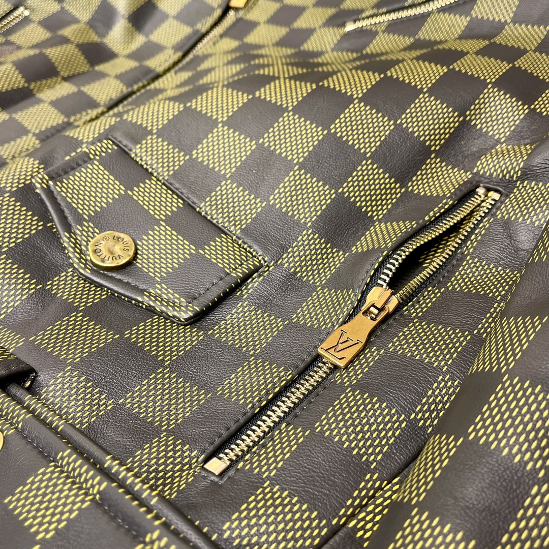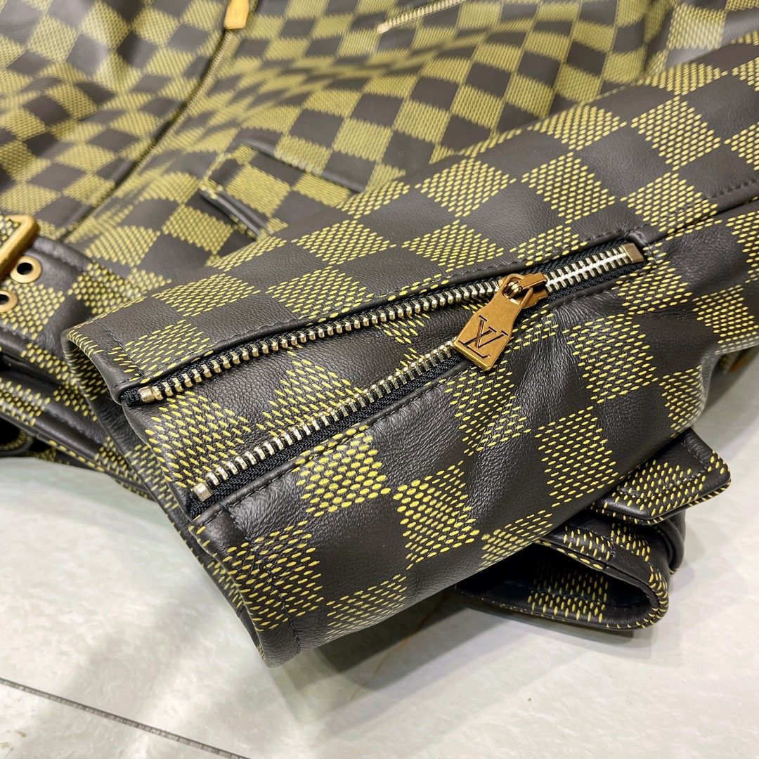 NIGO Louis Vuitton Men's Autumn and Winter Checkerboard Print Zipper Short Lapel Long Sleeve Leather Jacket #nigo73267