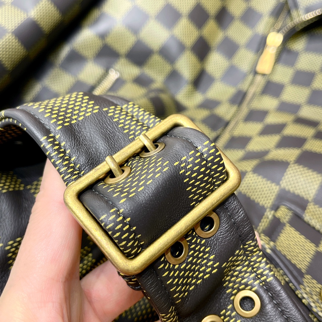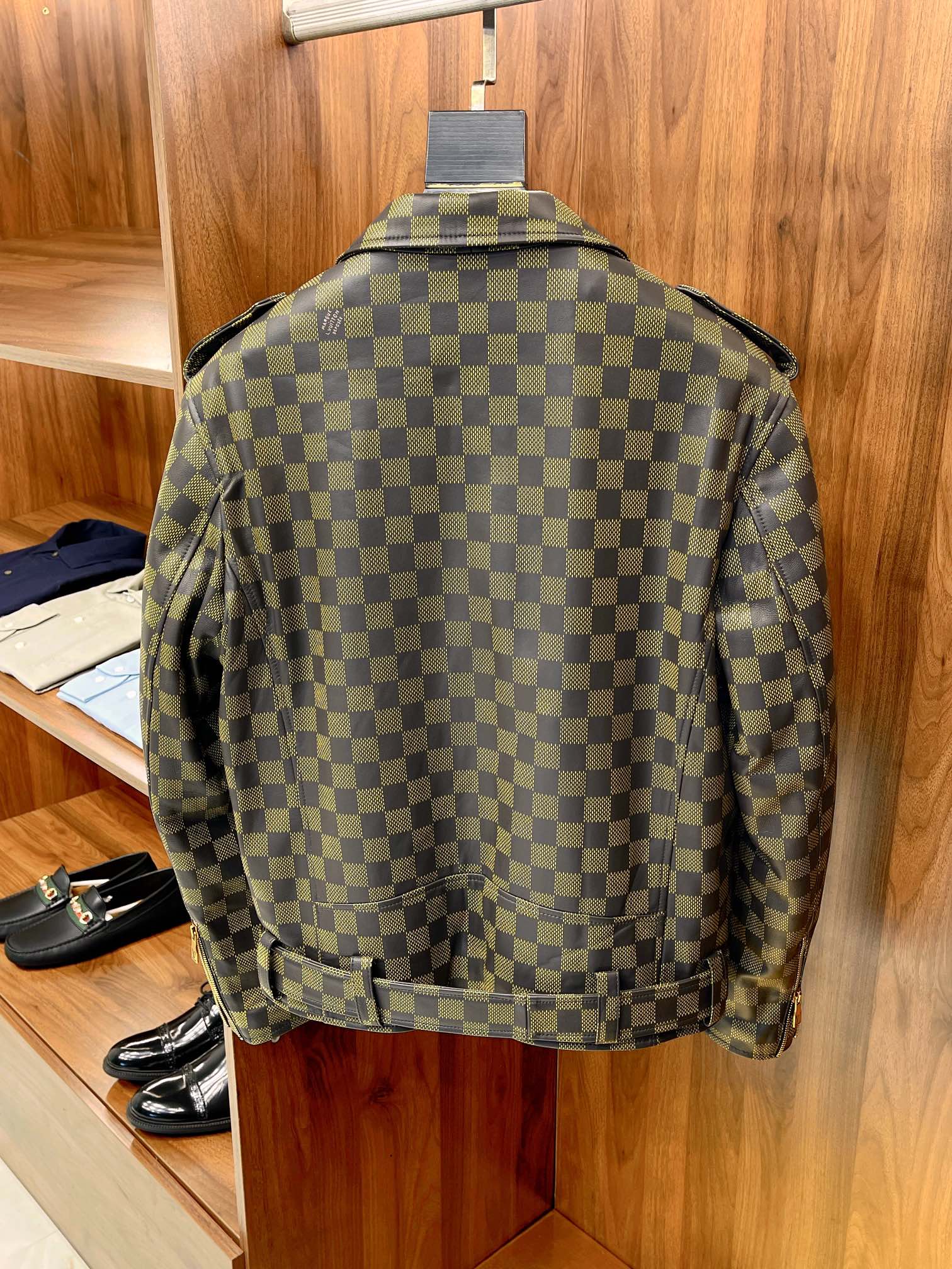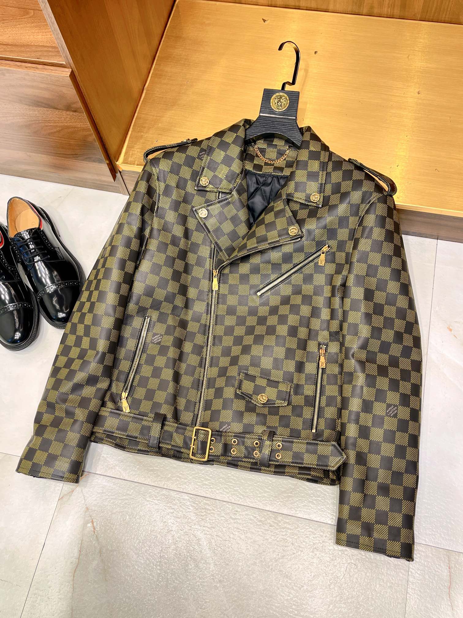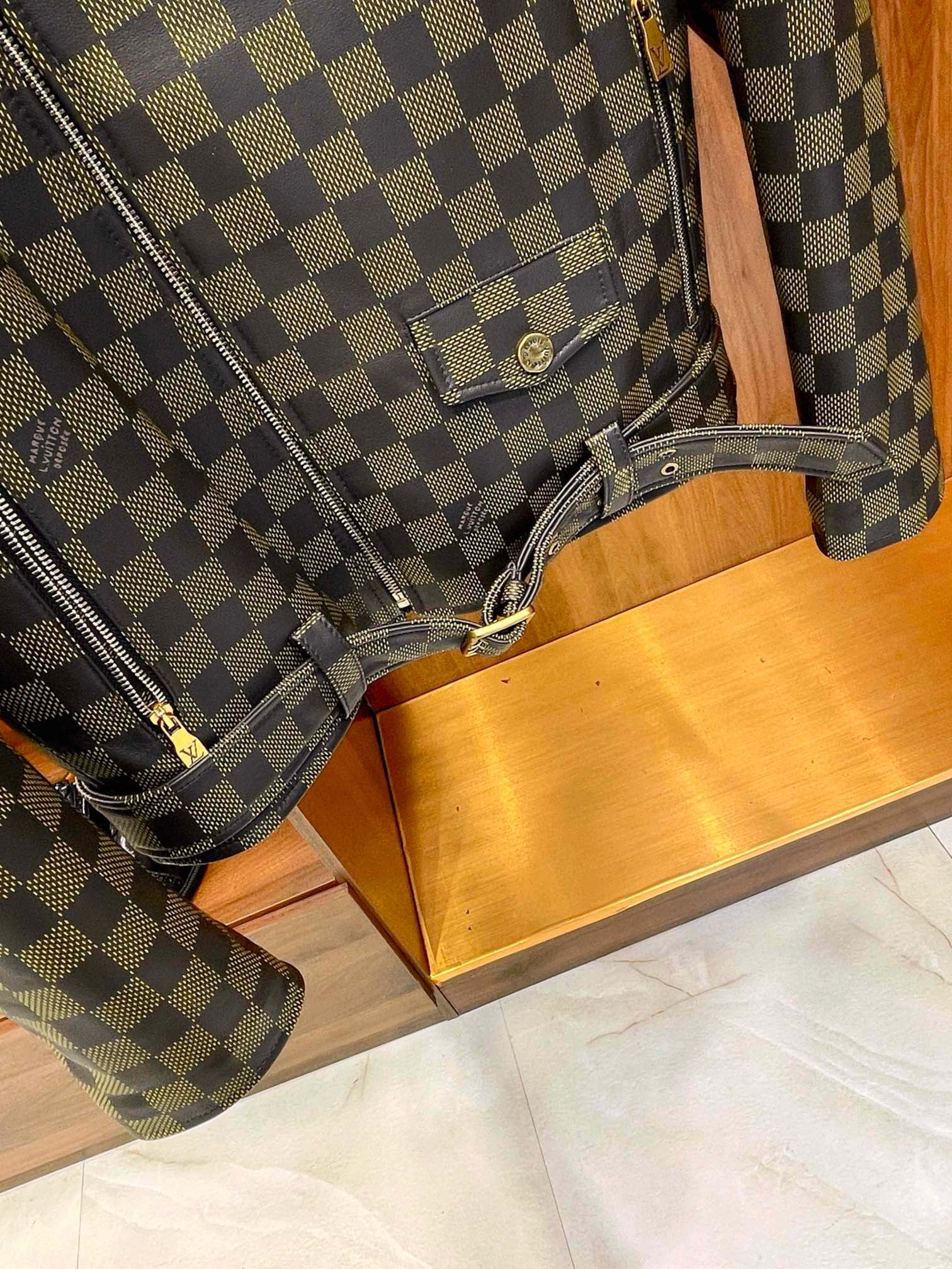 NIGO Louis Vuitton Men's Autumn and Winter Checkerboard Print Zipper Short Lapel Long Sleeve Leather Jacket #nigo73267