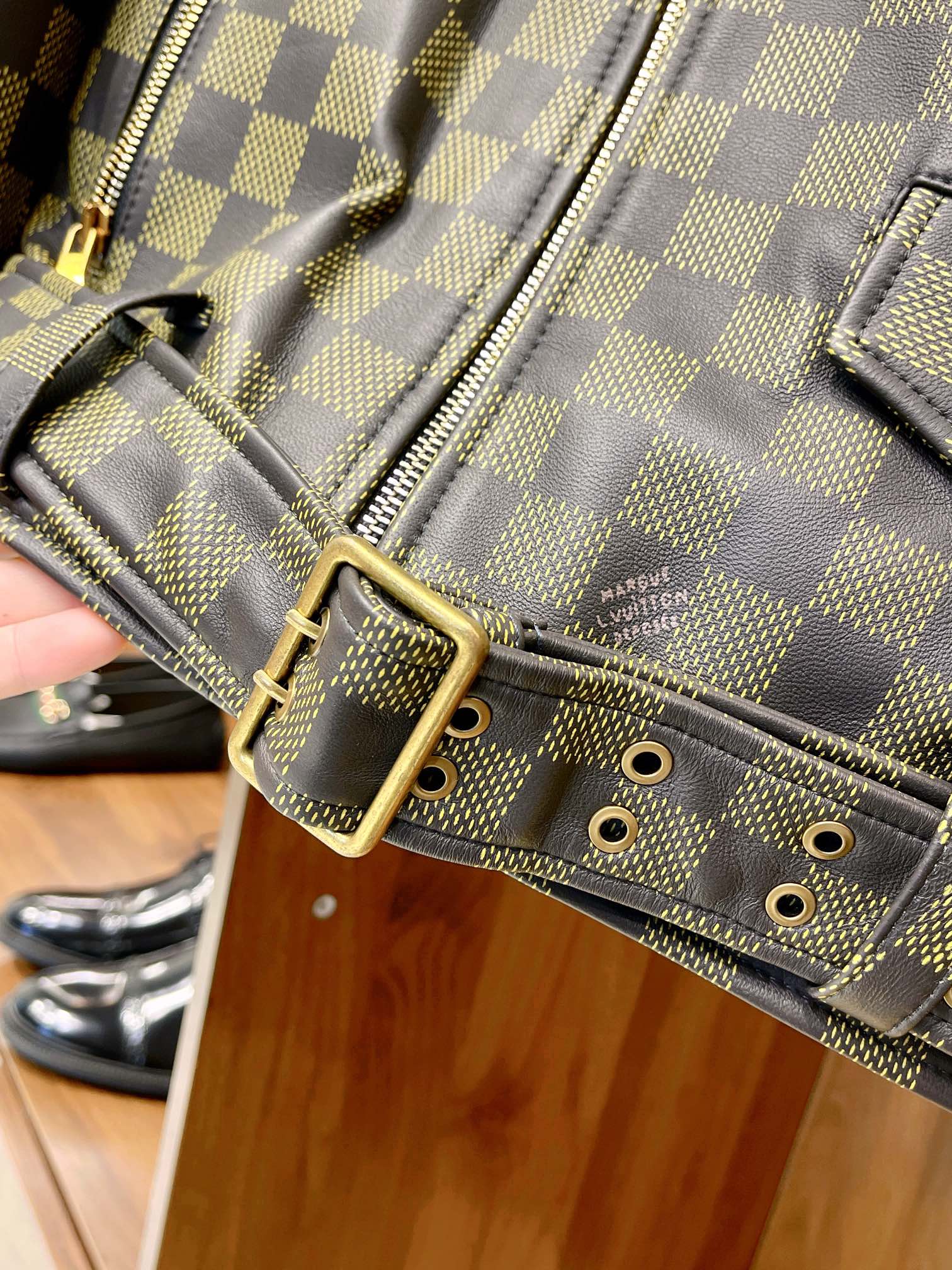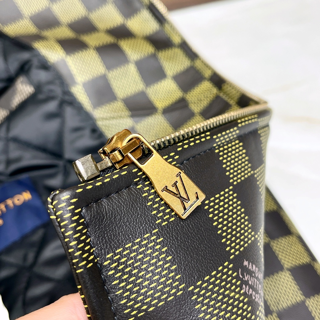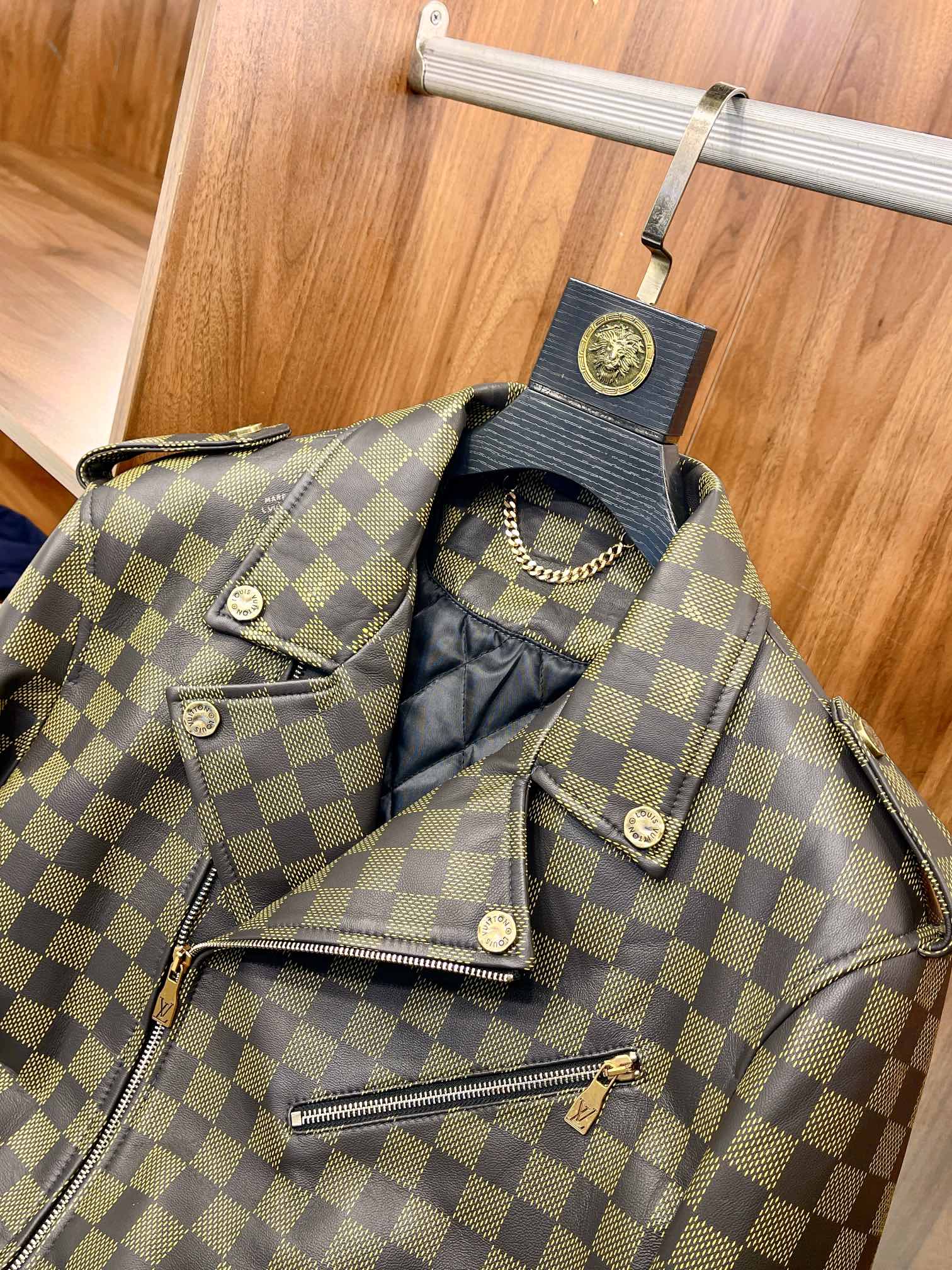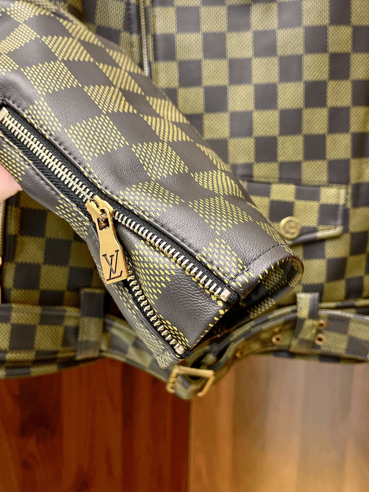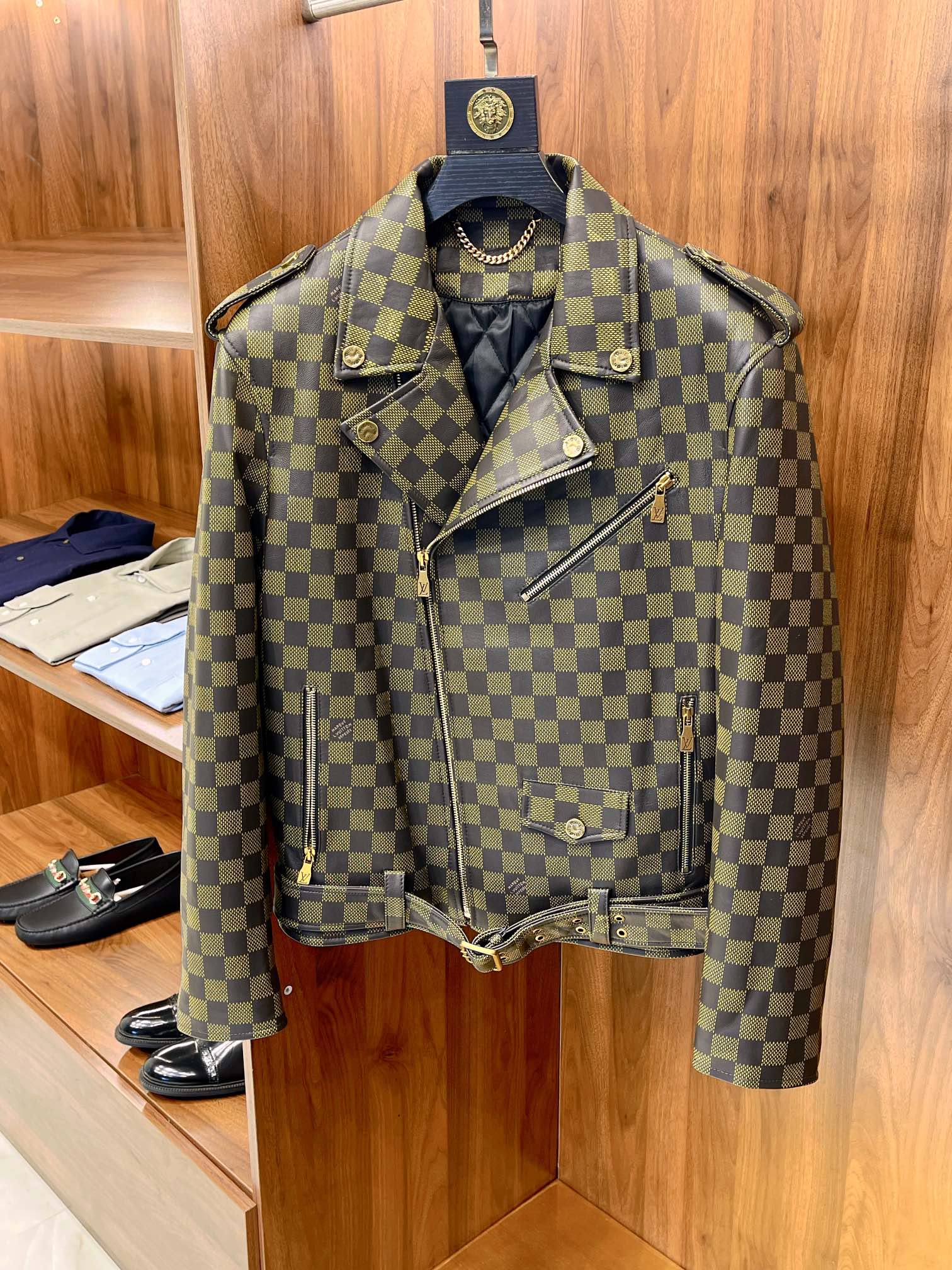 NIGO Louis Vuitton Men's Autumn and Winter Checkerboard Print Zipper Short Lapel Long Sleeve Leather Jacket #nigo73267