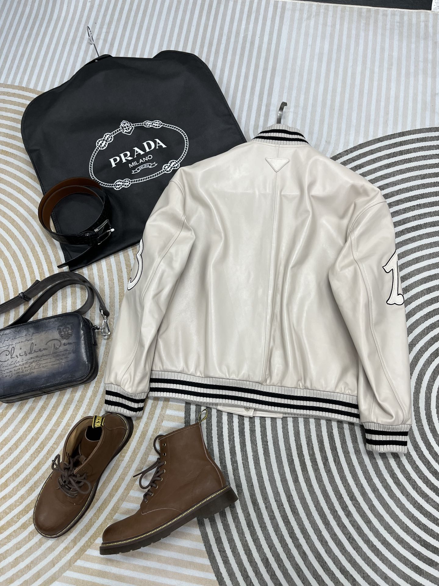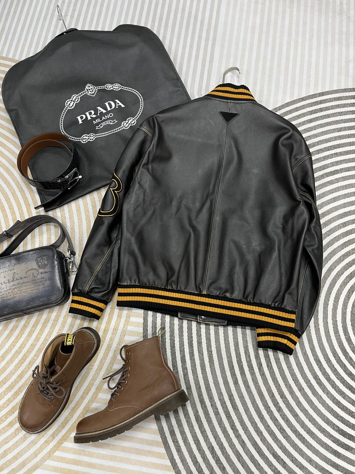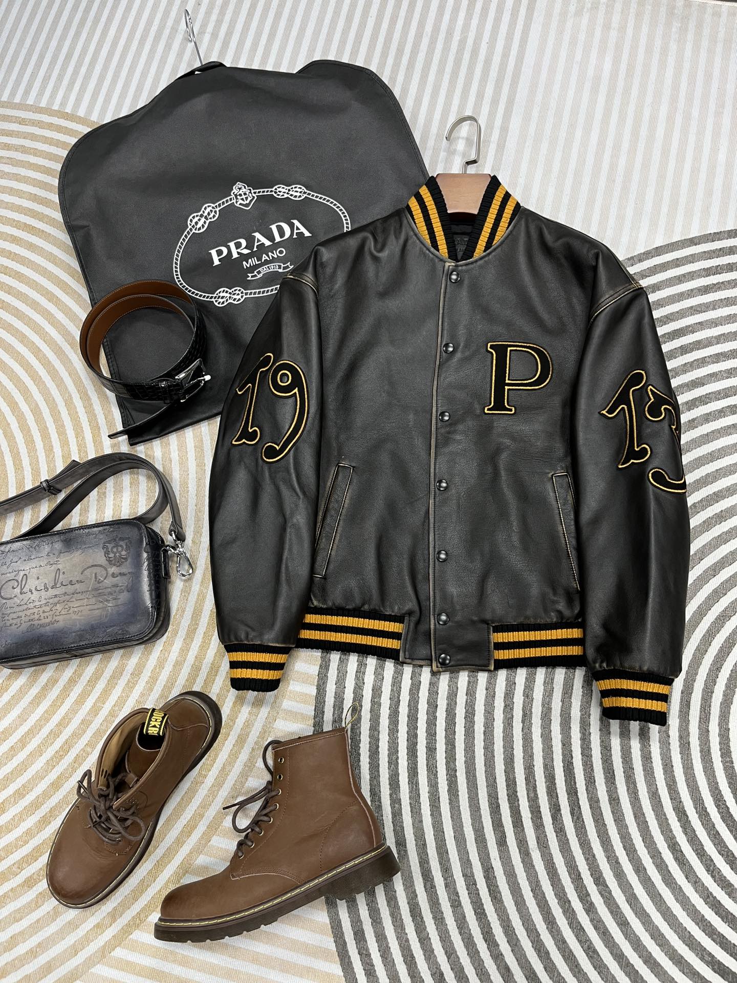 NIGO Prada Men's And Women's Fall And Winter Retro Letters High Street Leather Jacket Lapel Single-breasted Jacket Coat Ngvp #nigo9223