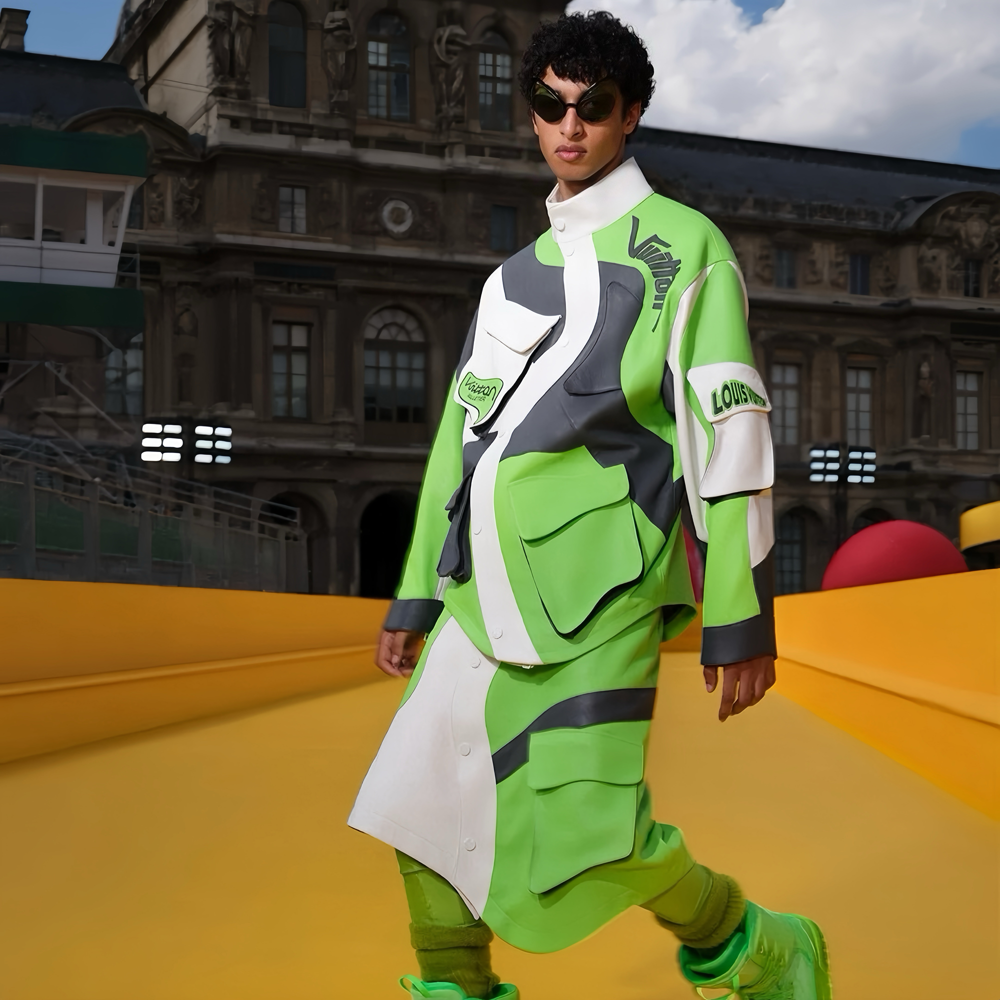 NIGO Louis Vuitton Biker Leather Jacket With Distorted Construction Color Blocking Irregular #nigo97586