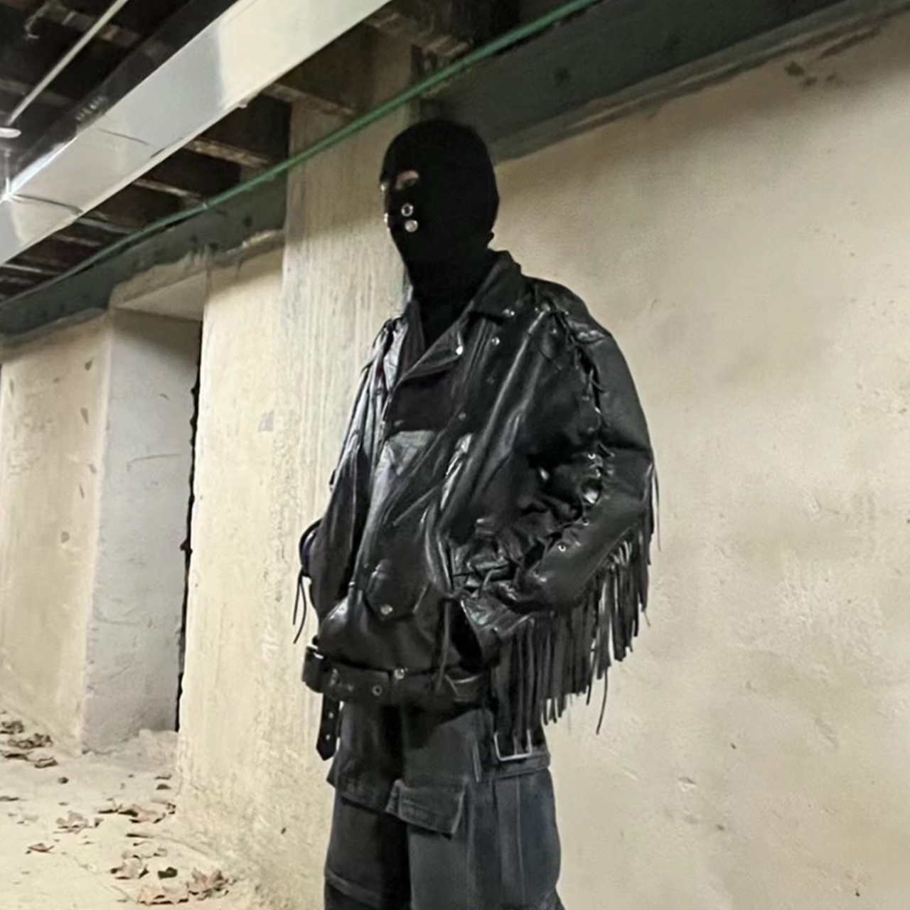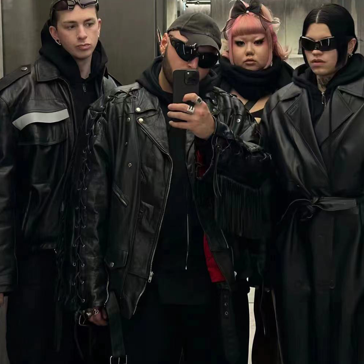 Nigo Tom Ford Men's Spring and Autumn Double Zipper Cowhide Lapel Long Sleeve Leather Jacket #nigo98476