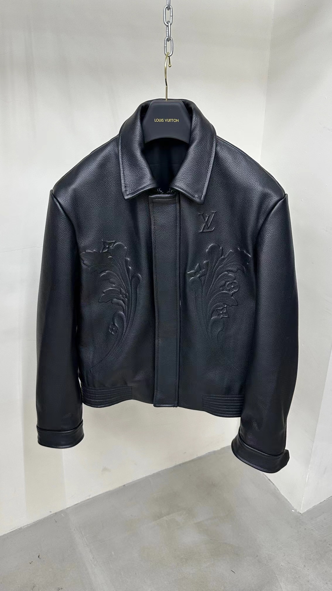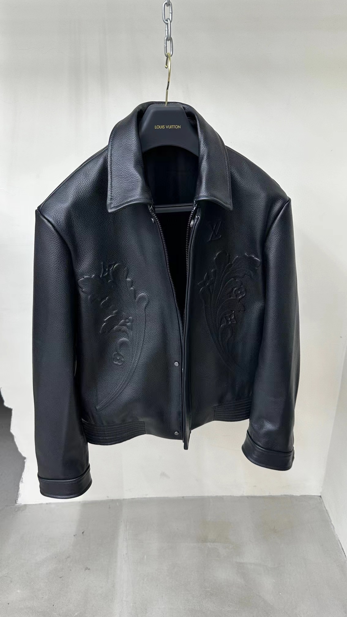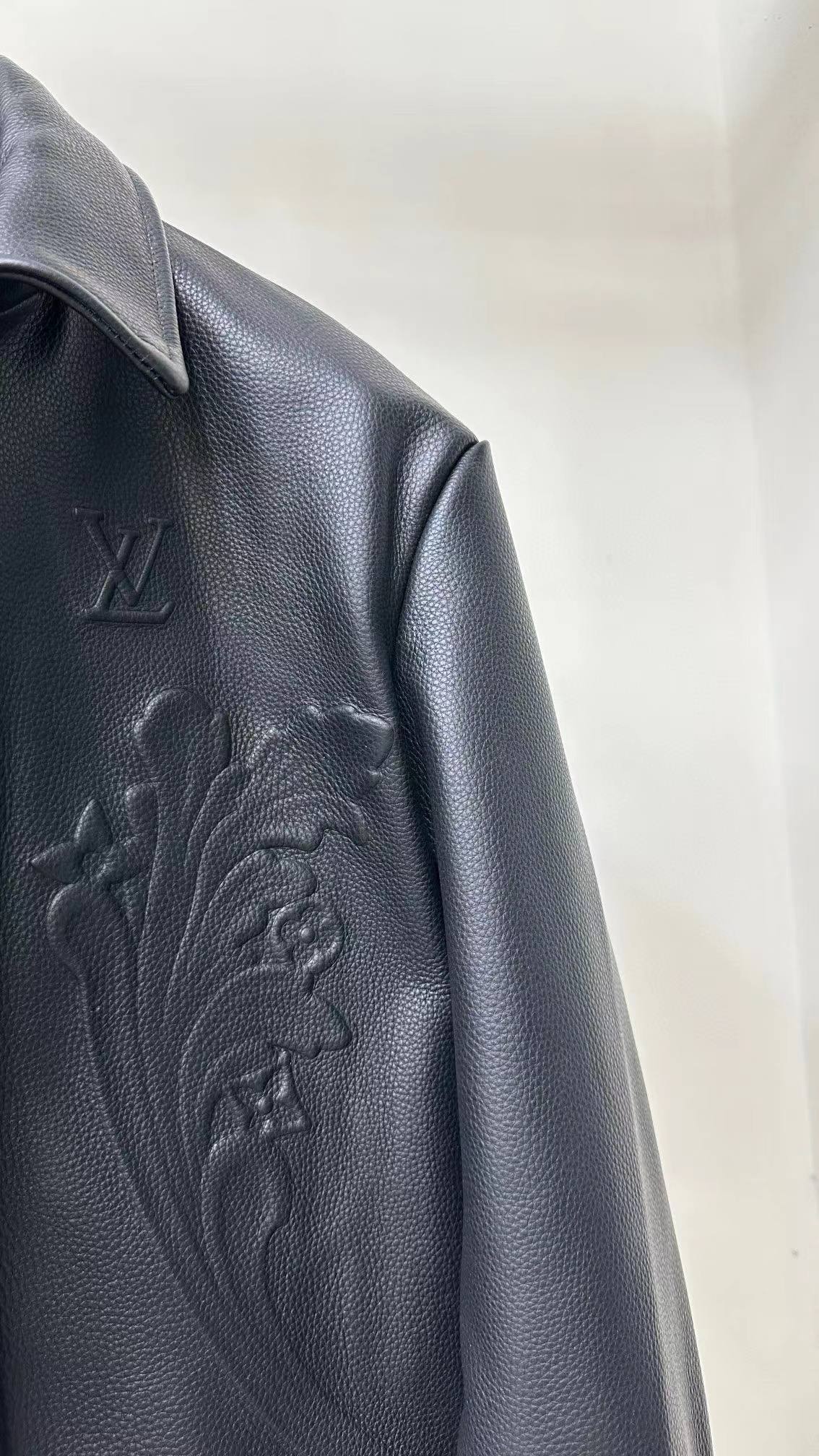 NIGO Louis Vuitton Men's Autumn and Winter Embossed Logo Solid Color Zipper Calf Leather Jacket #nigo98474