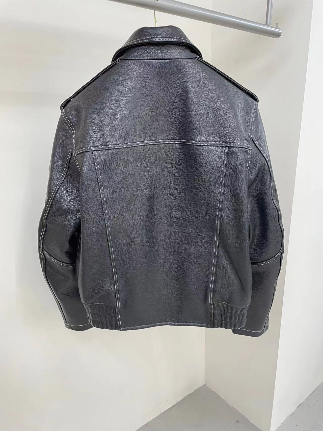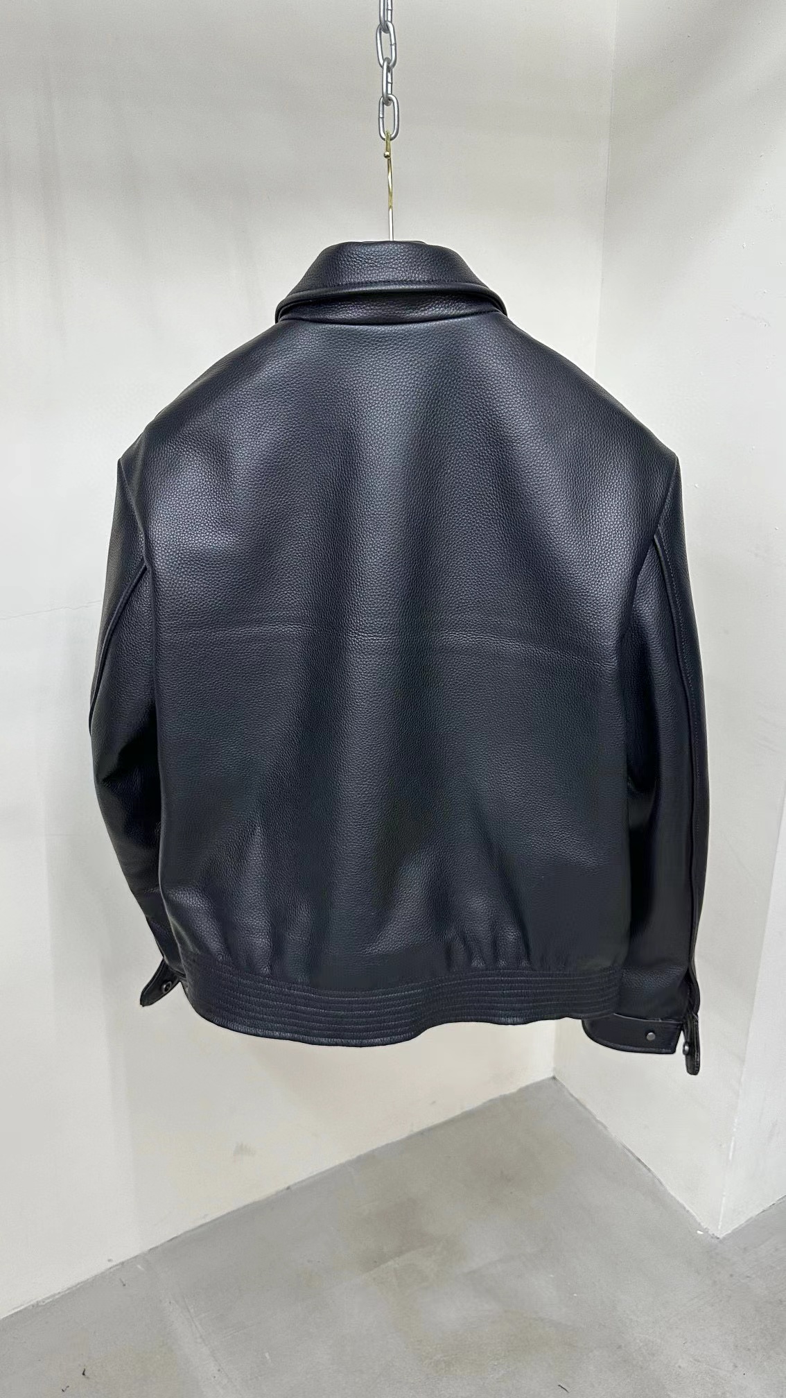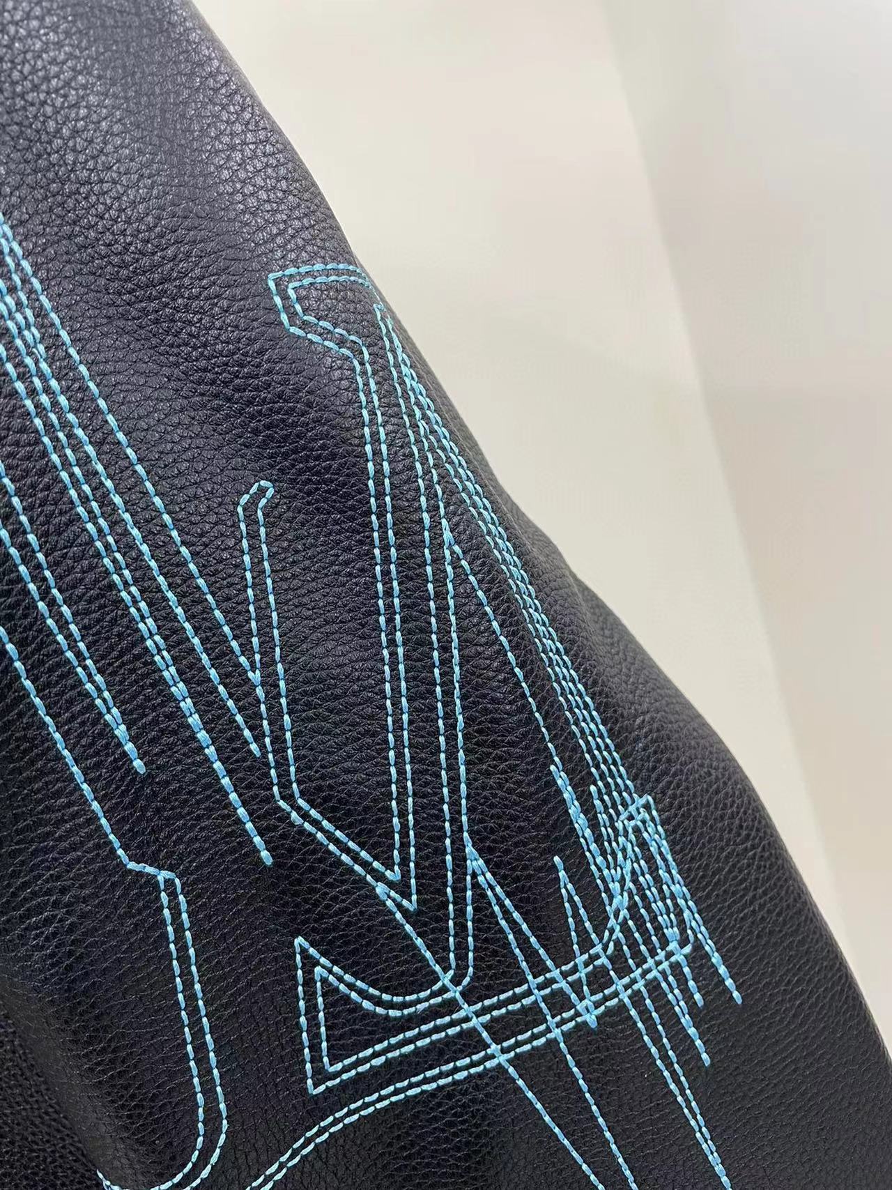 NIGO Louis Vuitton Men's Autumn and Winter Embossed Logo Solid Color Zipper Calf Leather Jacket #nigo98474
