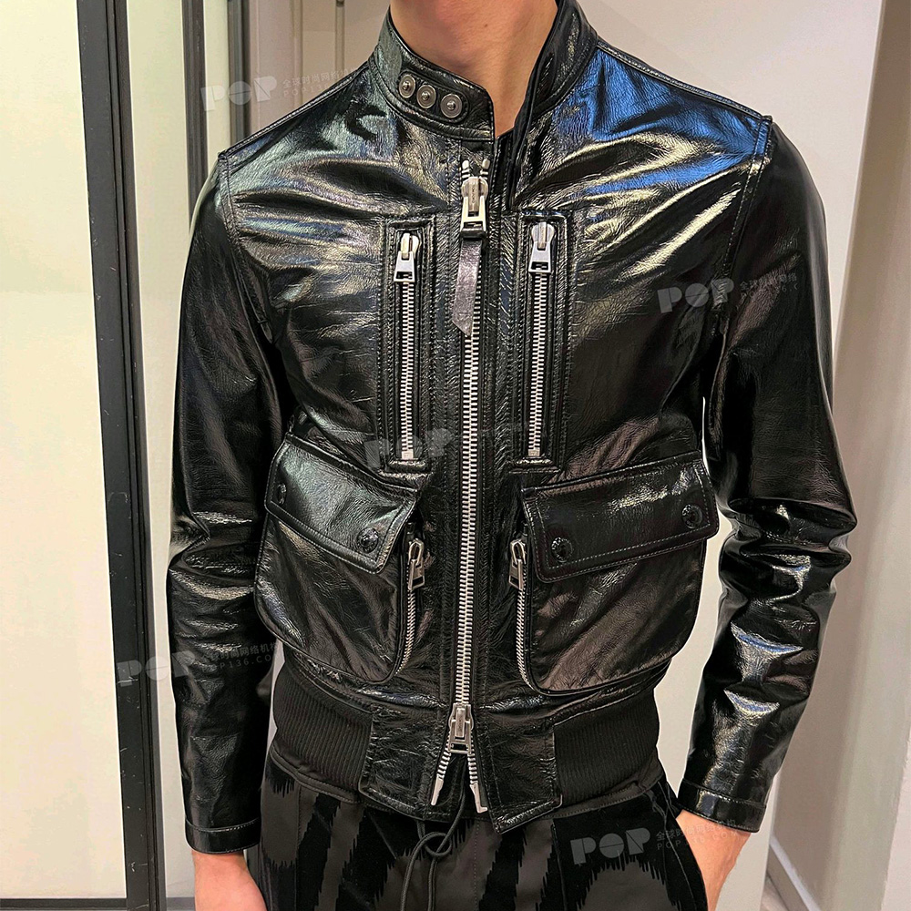 NIGO Men's Winter Solid Color Long-sleeved Fitted Zipper Leather Jacket Ngvp #nigo6925