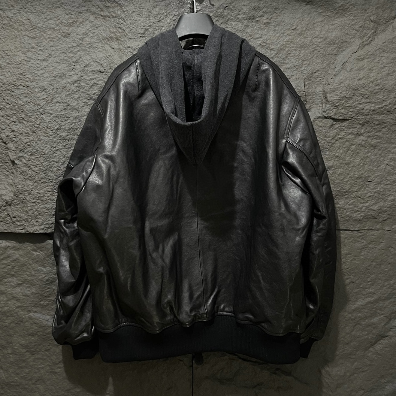NIGO Balenciaga Men's Winter Black Zipper Long Sleeve Hooded Pilot Loose Leather Jacket Ngvp #nigo6986