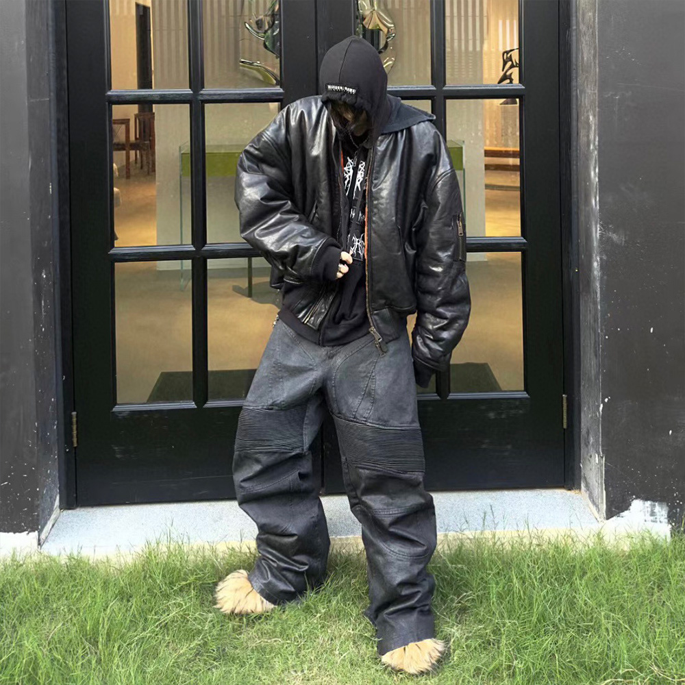 NIGO Balenciaga Mens Winter Black Biker Leather Jacket Coat #nigo96916