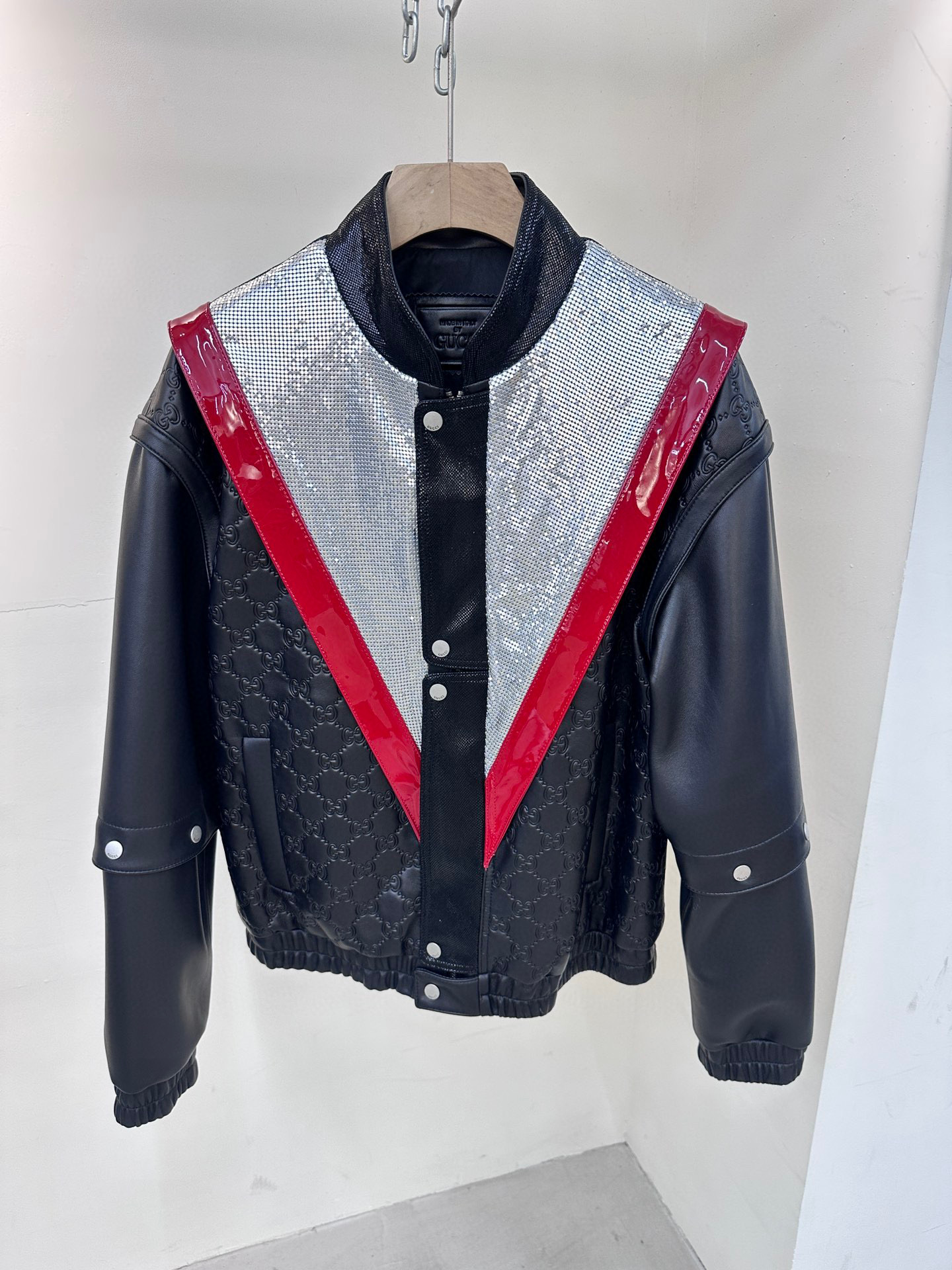 NIGO Gucci Men's Fall Detachable Sleeve Single Breasted Leather Jacket #nigo97142