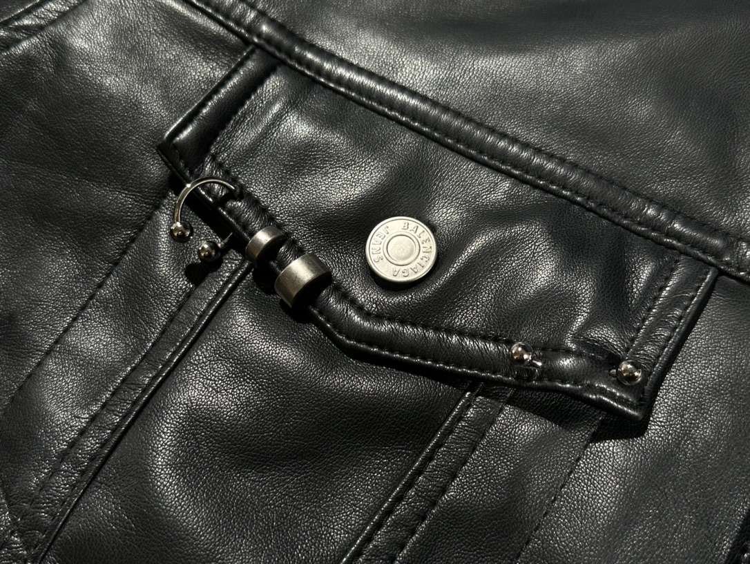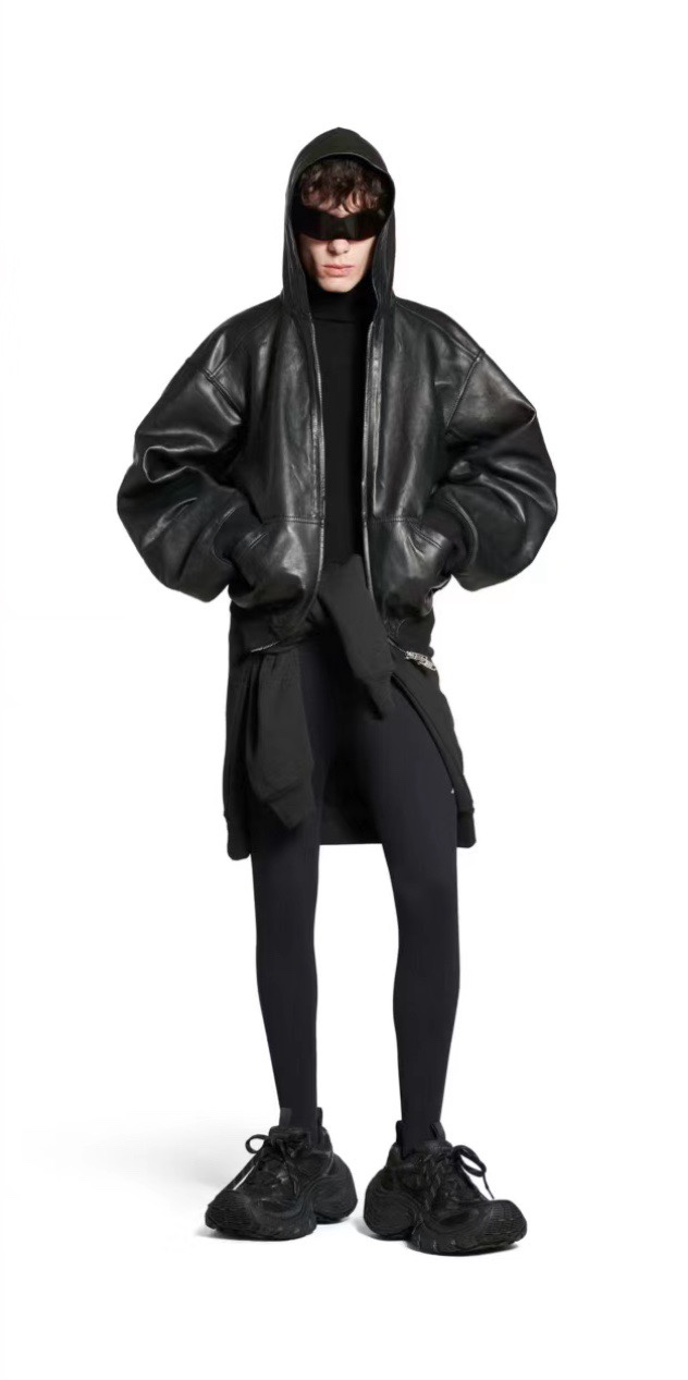 NIGO Balenciaga Men's Autumn and Winter Solid Color Irregular Shape Round Neck Zipper Long Sleeve Leather Jacket #nigo75194