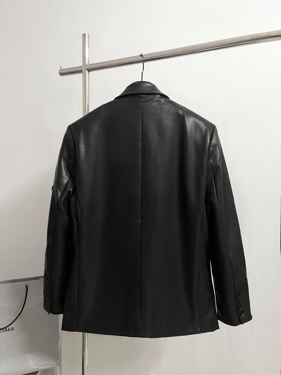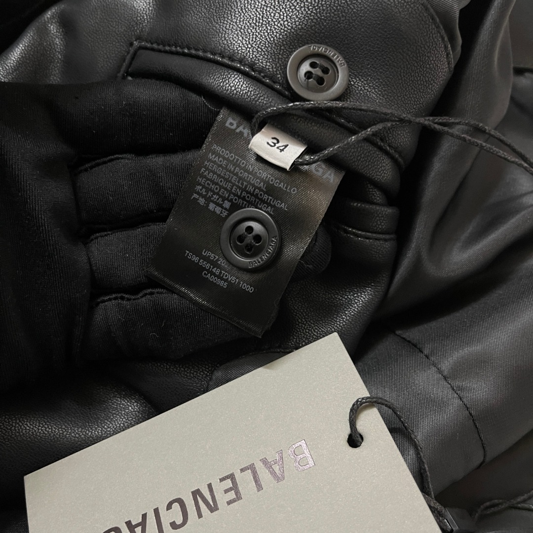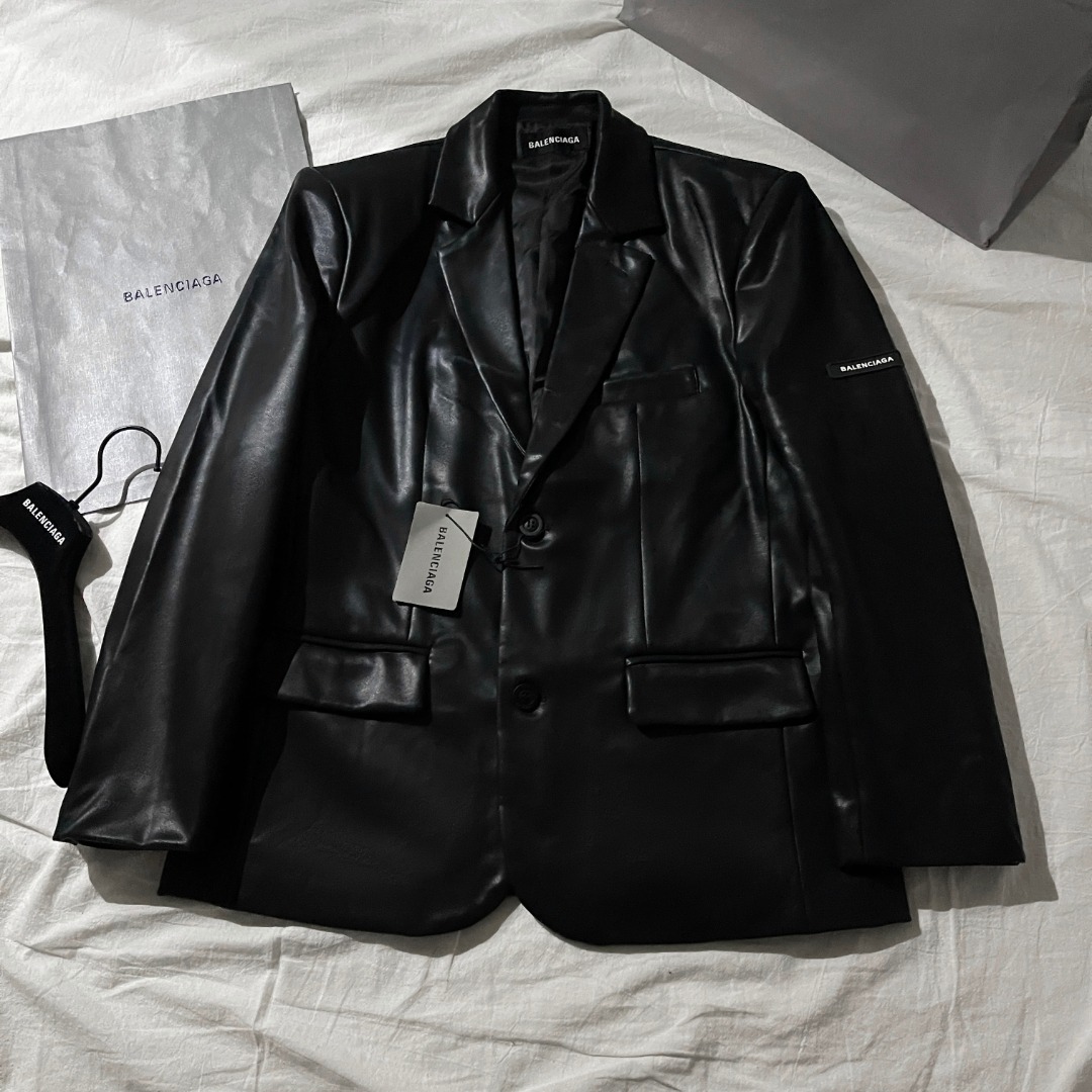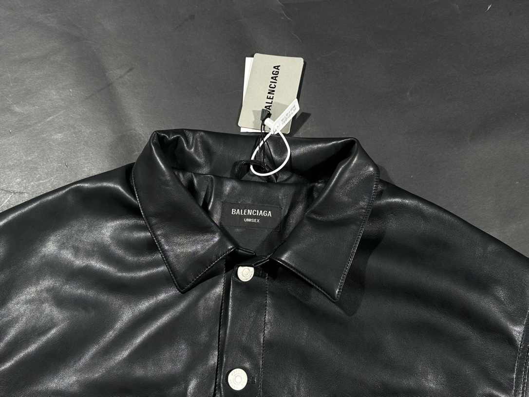 NIGO Balenciaga Women‘s Fall/Winter Black Logo Labeled Single Breasted Regular Fit Long Sleeve Leather Jacket #nigo74918