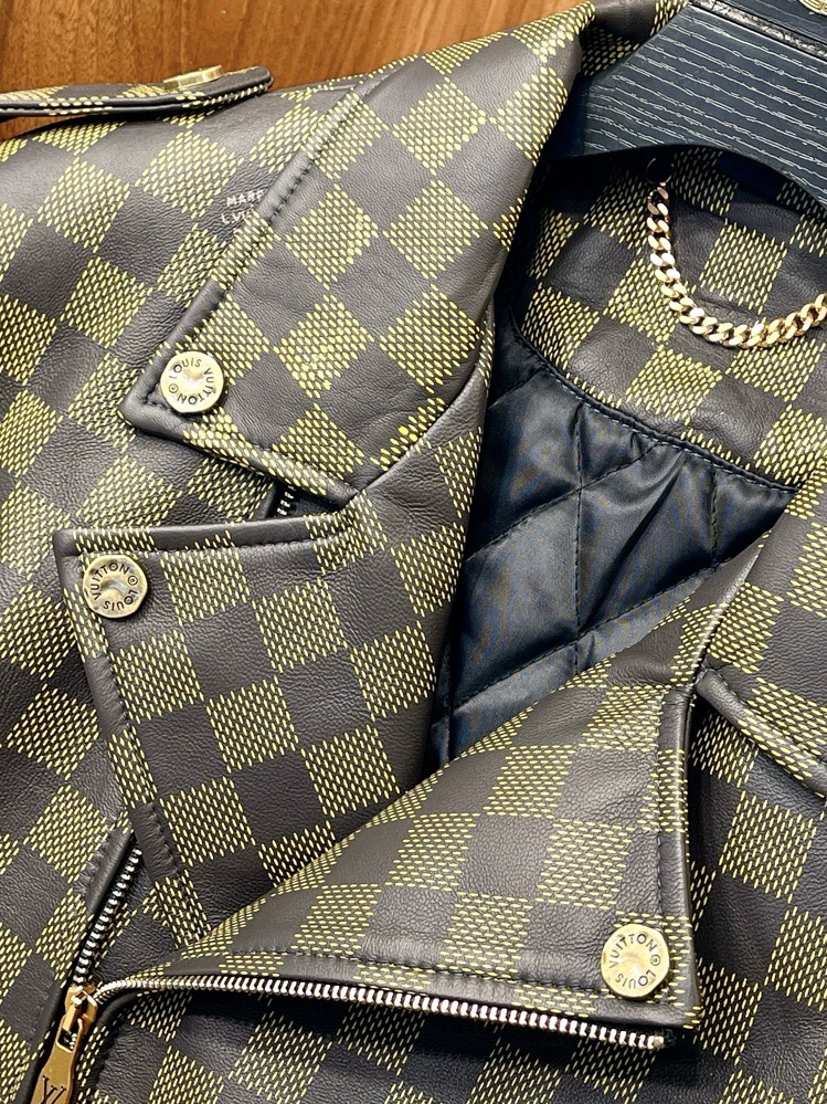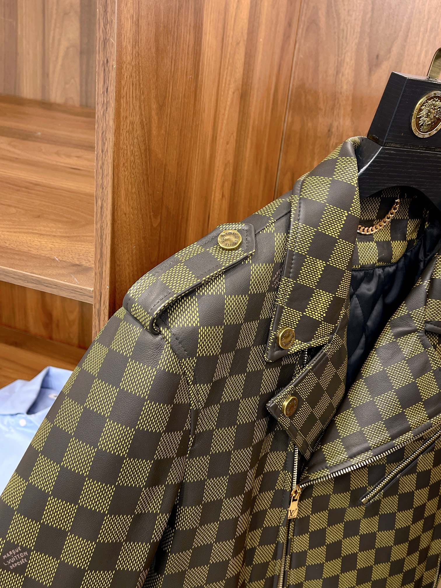 NIGO Louis Vuitton Men's Autumn and Winter Checkerboard Print Zipper Short Lapel Long Sleeve Leather Jacket #nigo73267