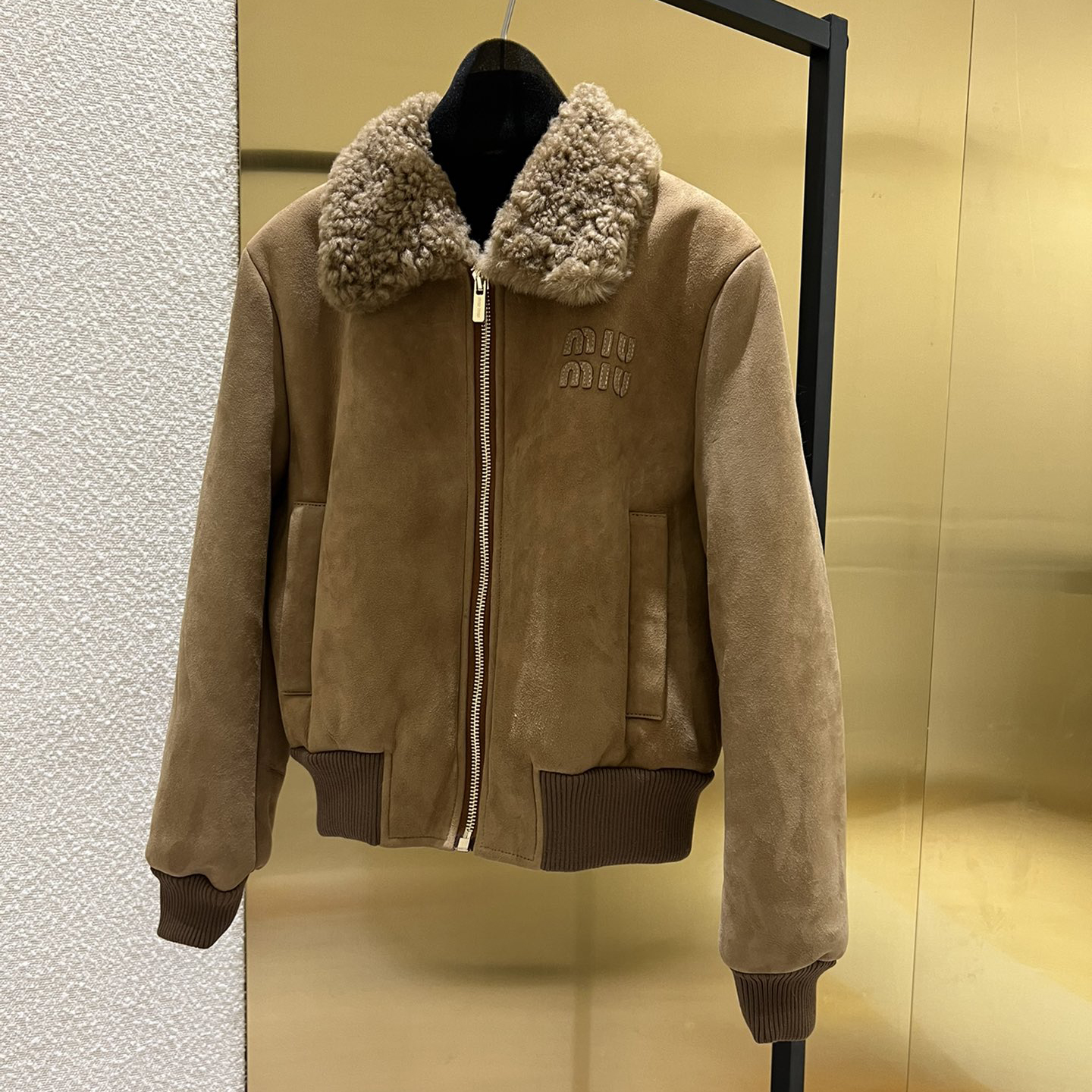 NIGO MiuMiu Women's Autumn and Winter Solid Color Logo Letter Printed Zipper Long Sleeve Leather Jacket #nigo73314