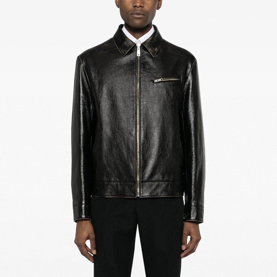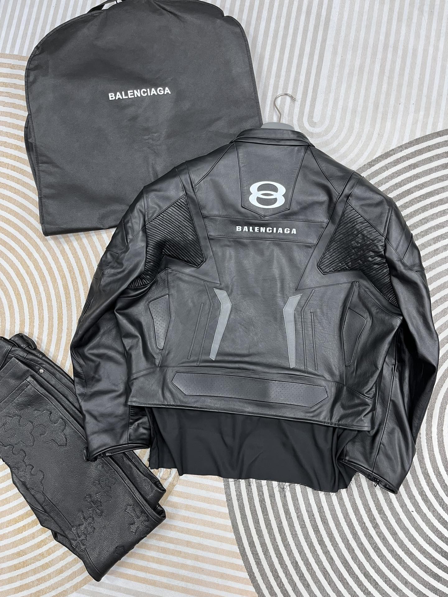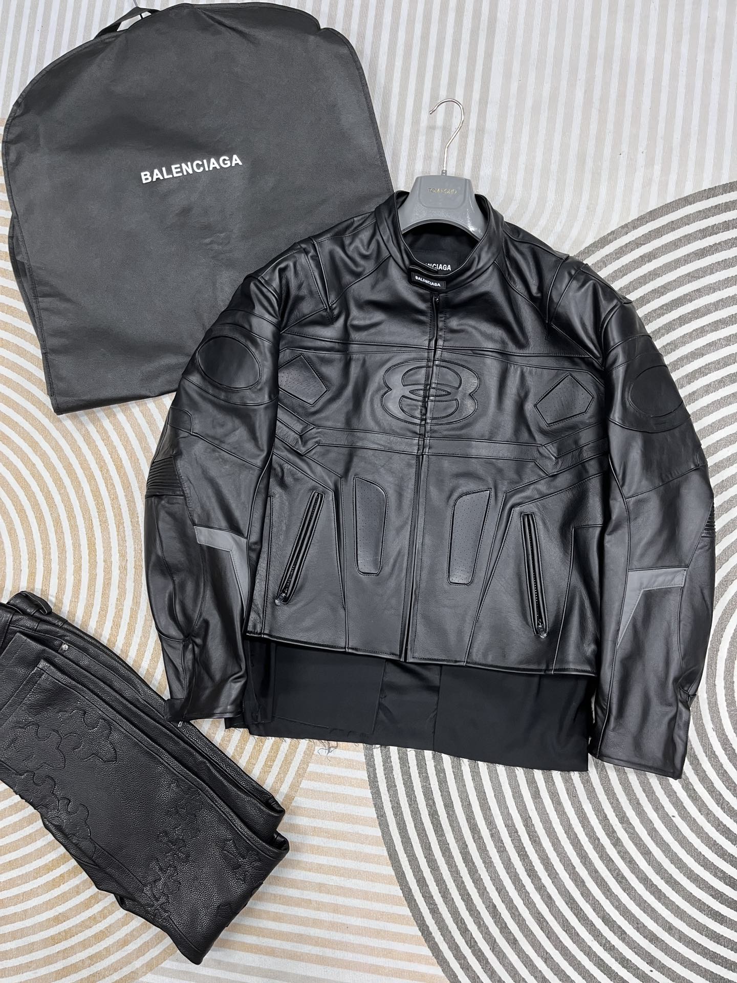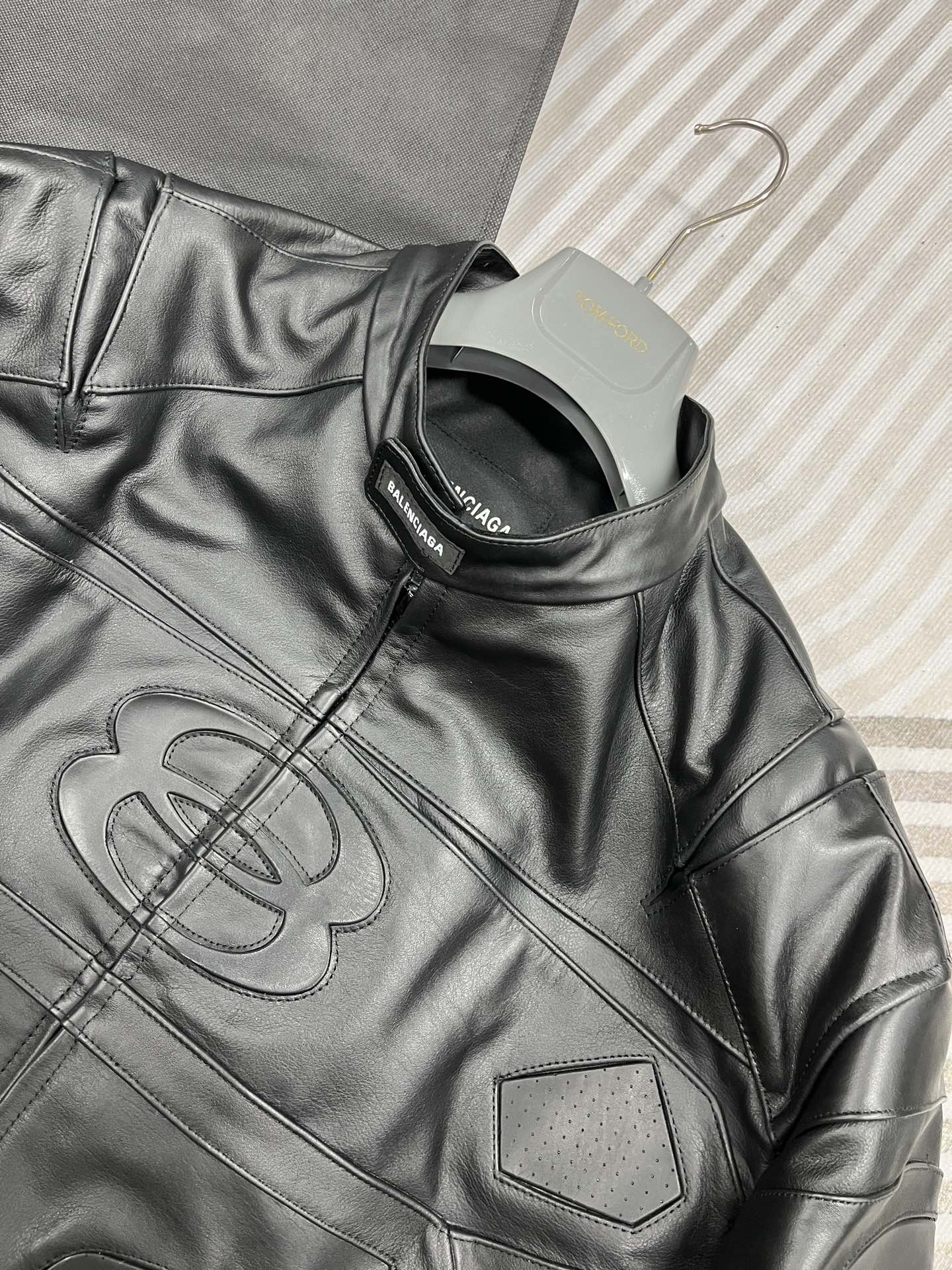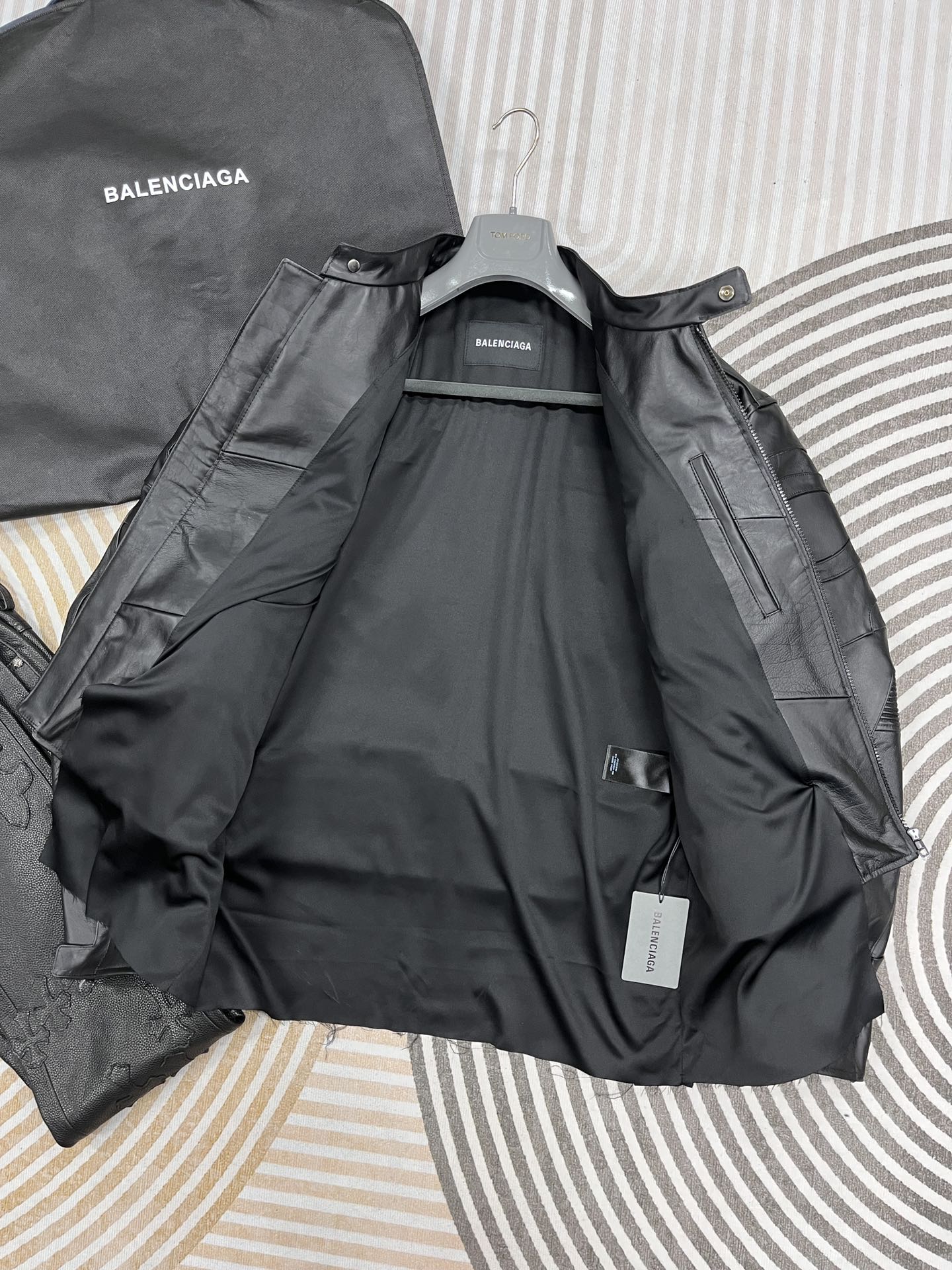 NIGO Balenciaga Men's Fall And Winter Black Round Neck Zipper Closure Regular Fit Long Sleeve Leather Jacket #nigo73673