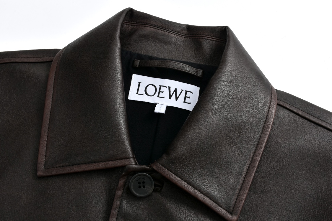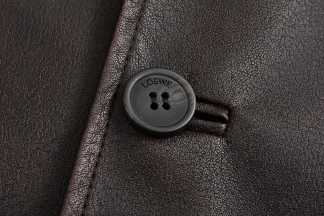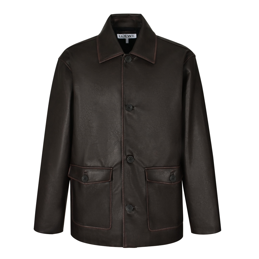 NIGO Loewe Women's Autumn and Winter Solid Color Lapel Single Breasted Loose Long Sleeve Leather Jacket #nigo73765