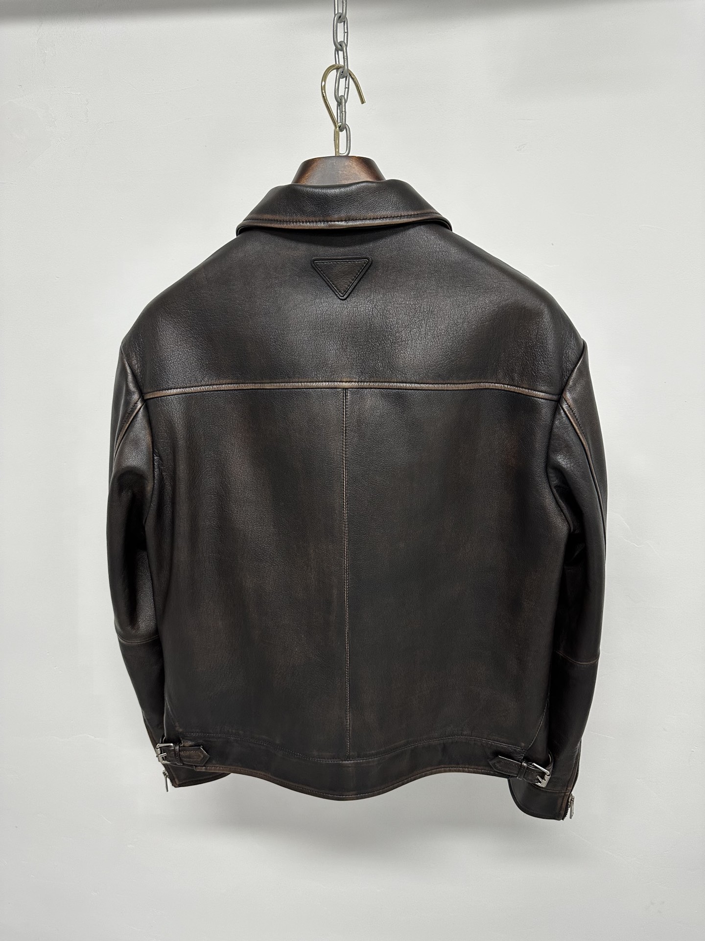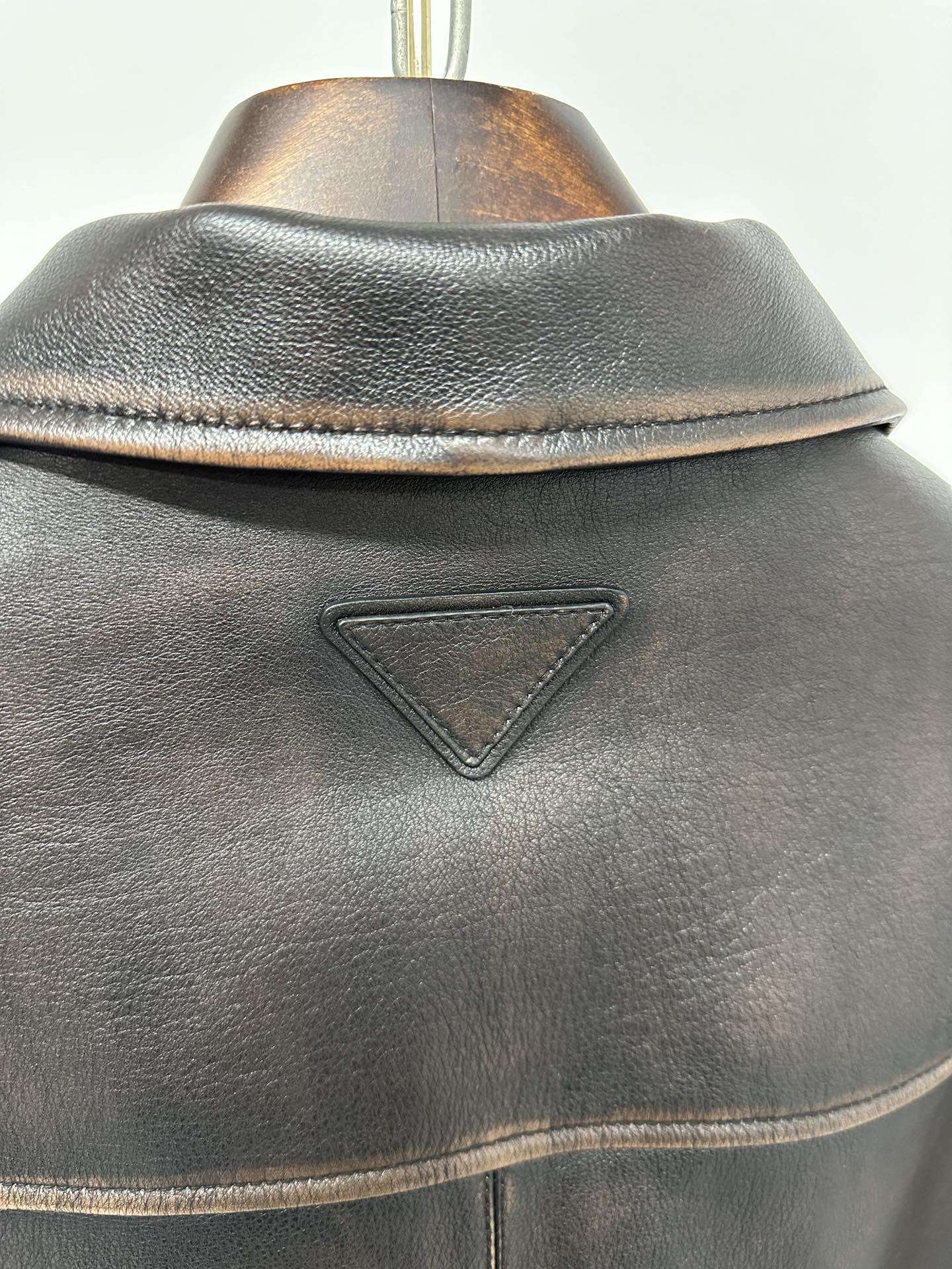 NIGO Prada Men's Autumn and Winter Solid Color Fit Lapel Zipper Long Sleeve Leather Jacket #nigo73774