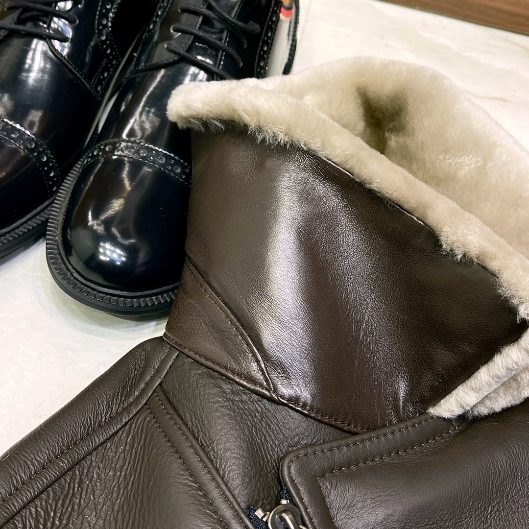 NIGO Hermes Men's Women's Autumn And Winter Fur One Motorcycle Section Lapel Retro Solid Color Zipper Leather Jacket Ngvp #nigo9767