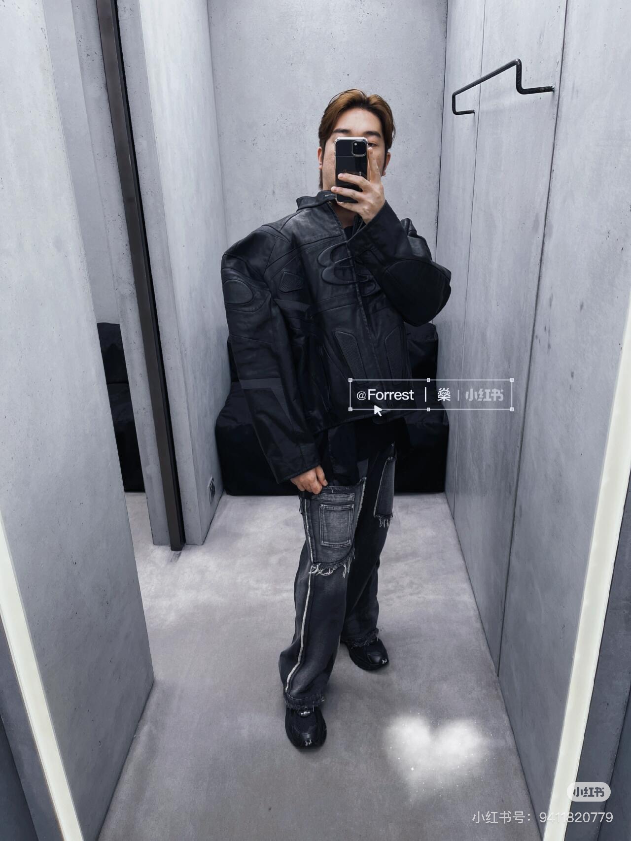 NIGO Balenciaga Men's Fall And Winter Retro Splicing Zipper Collar Long Sleeve Loose Leather Jacket Ngvp #nigo9198