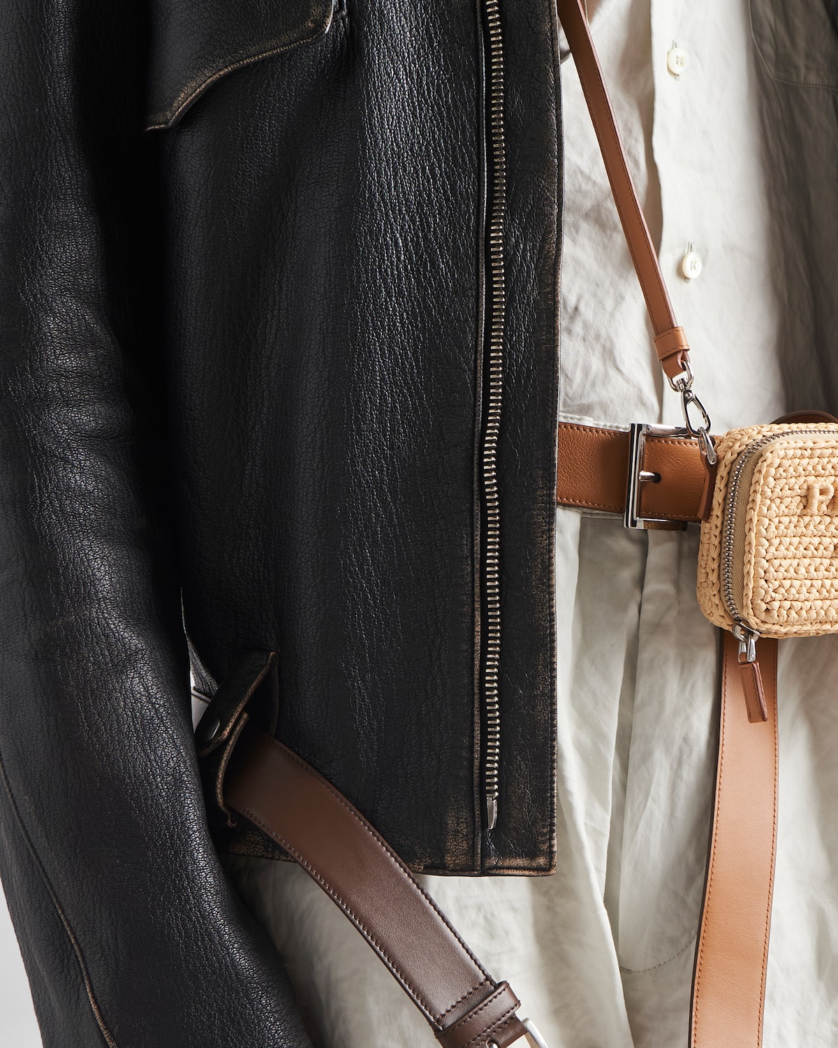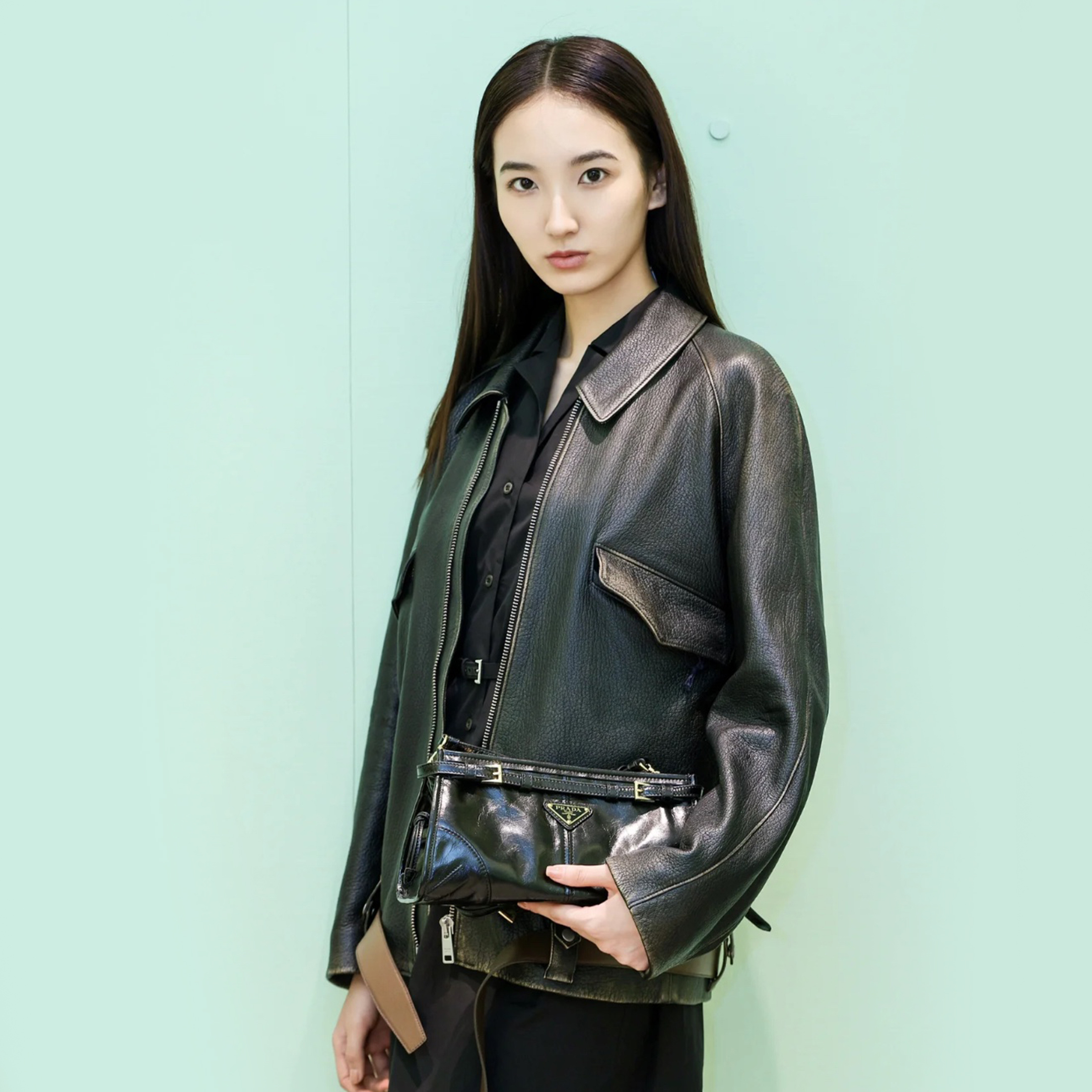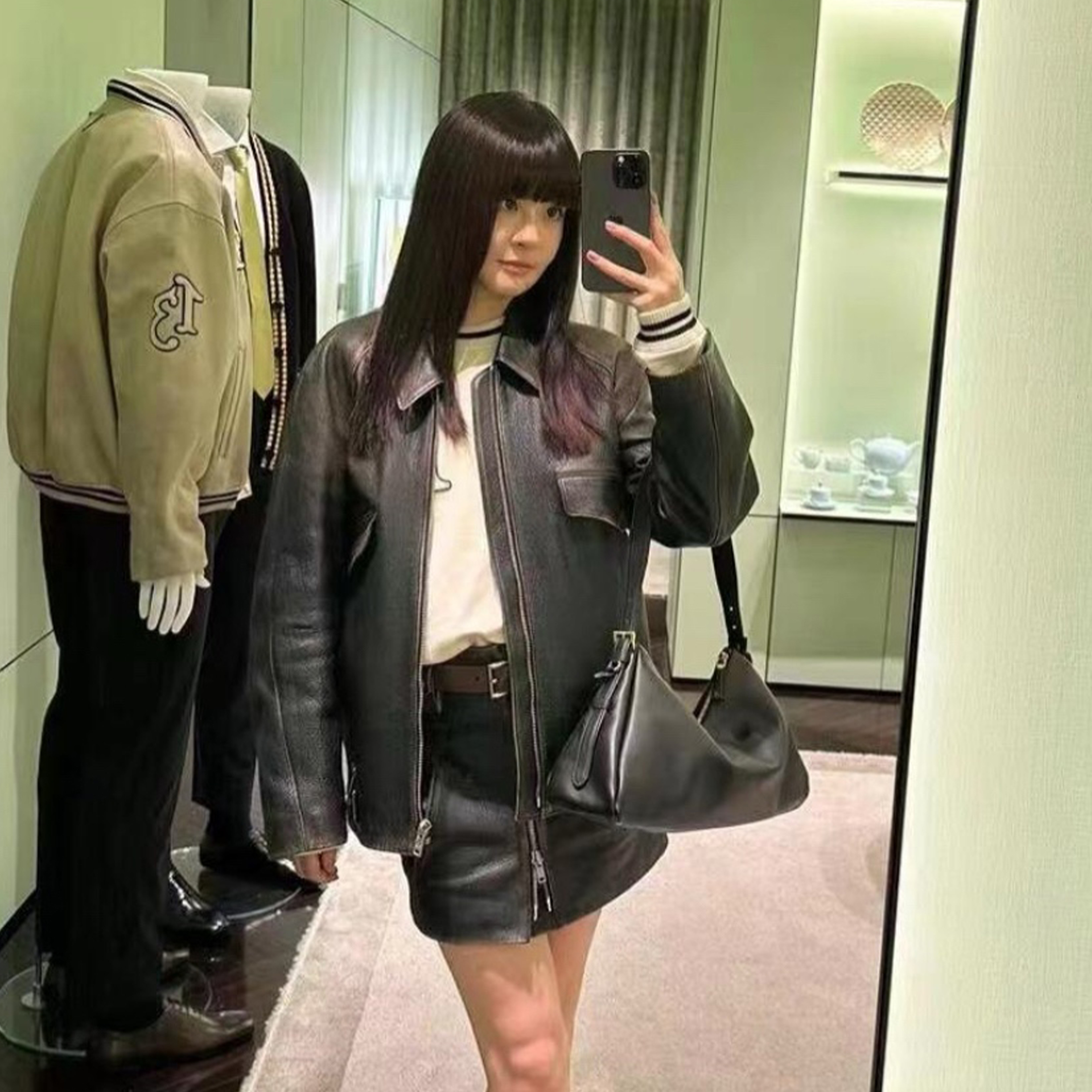 NIGO Adidas Originals X FEIFEI RUAN Men's Fall And Winter Lapel Zipper Leather Jacket #nigo72923