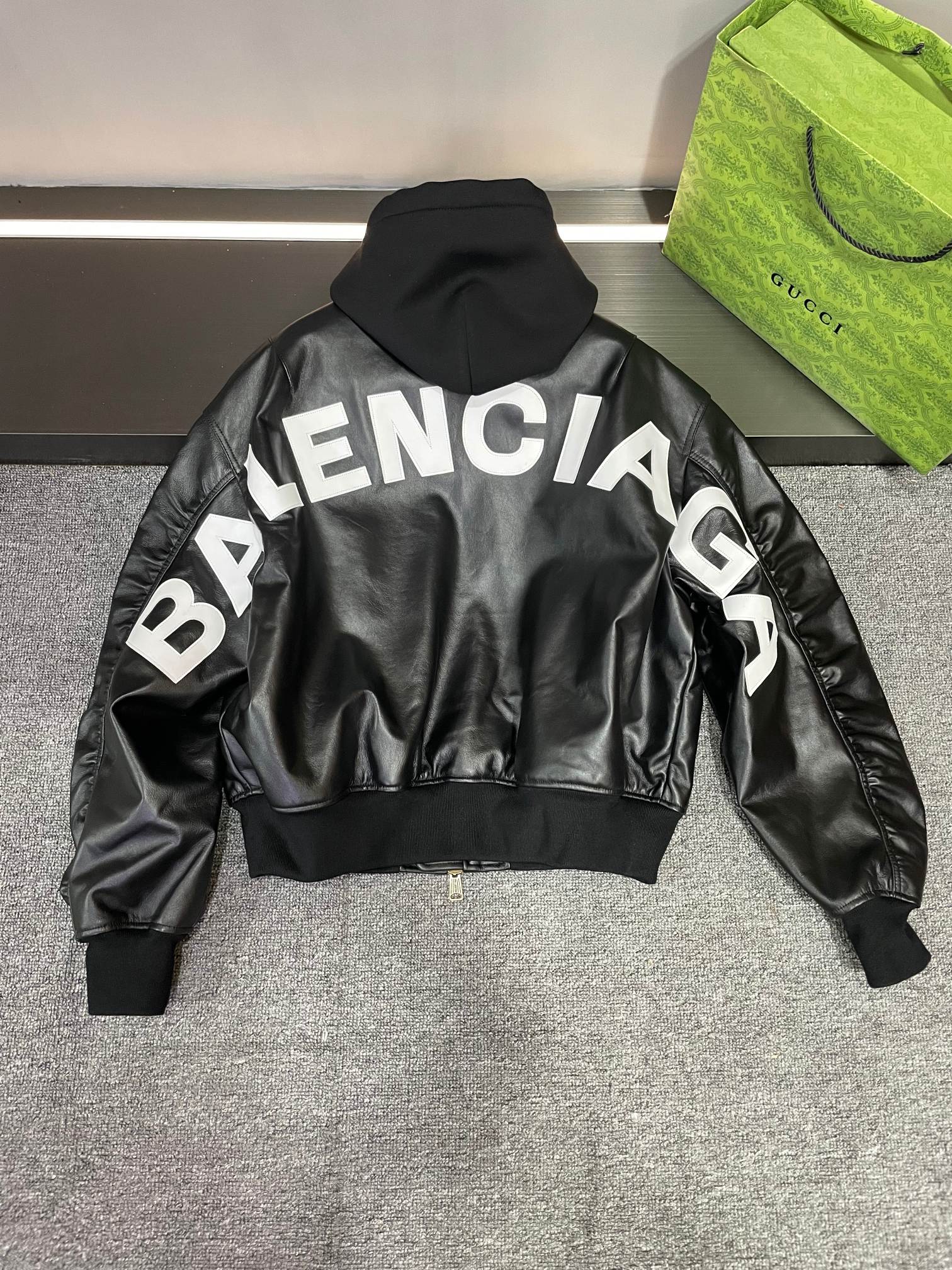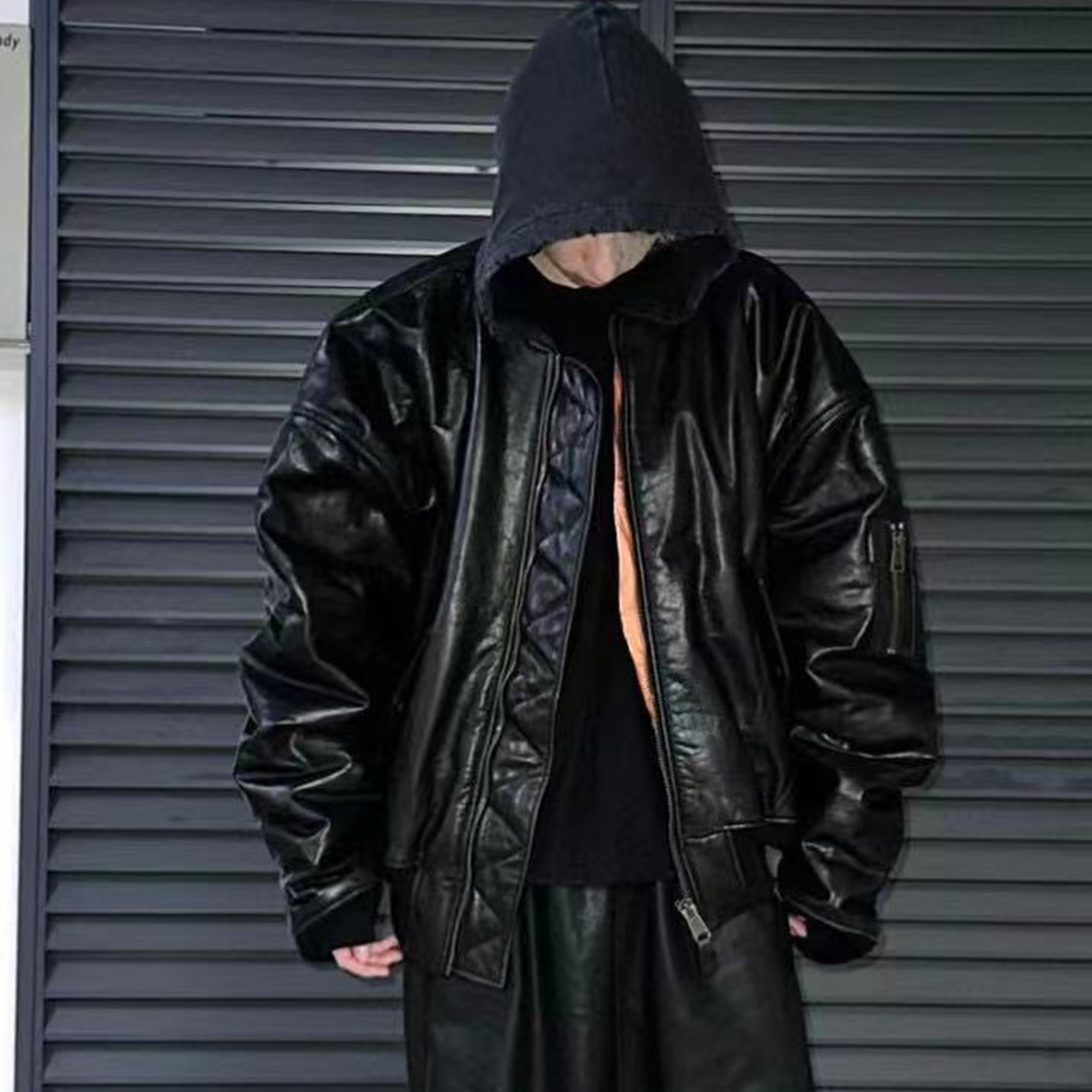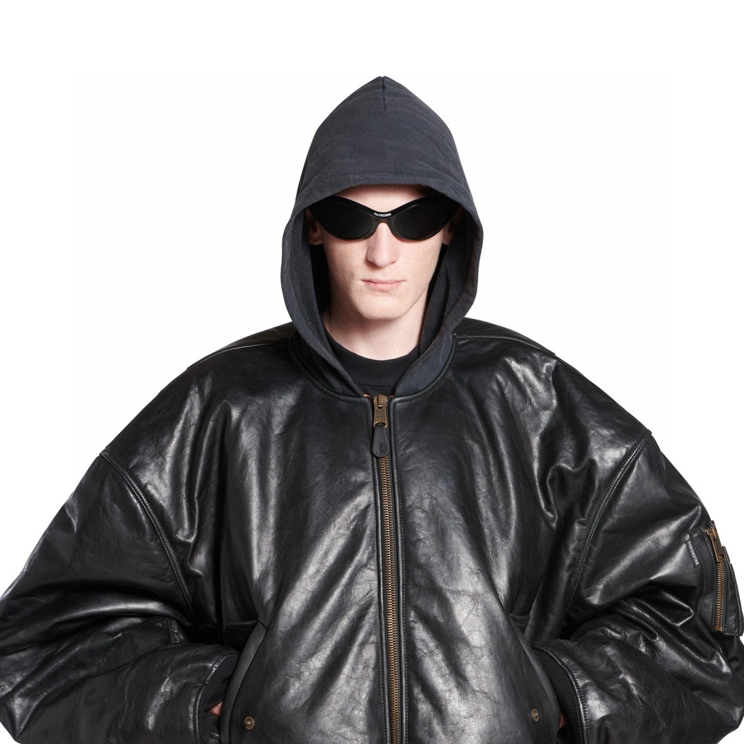 NIGO Balenciaga Men's Fall/Winter Black Letter Print Hooded Drop Shoulder Long Sleeve Zipper Leather Jacket #nigo72777