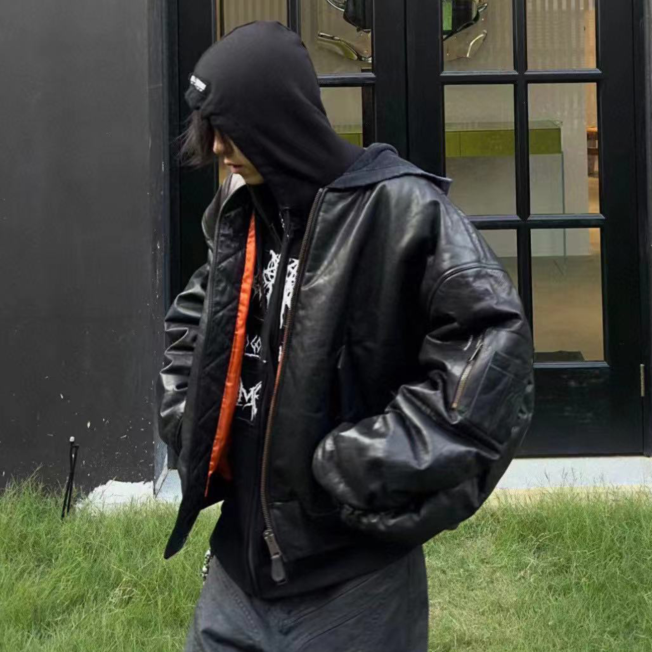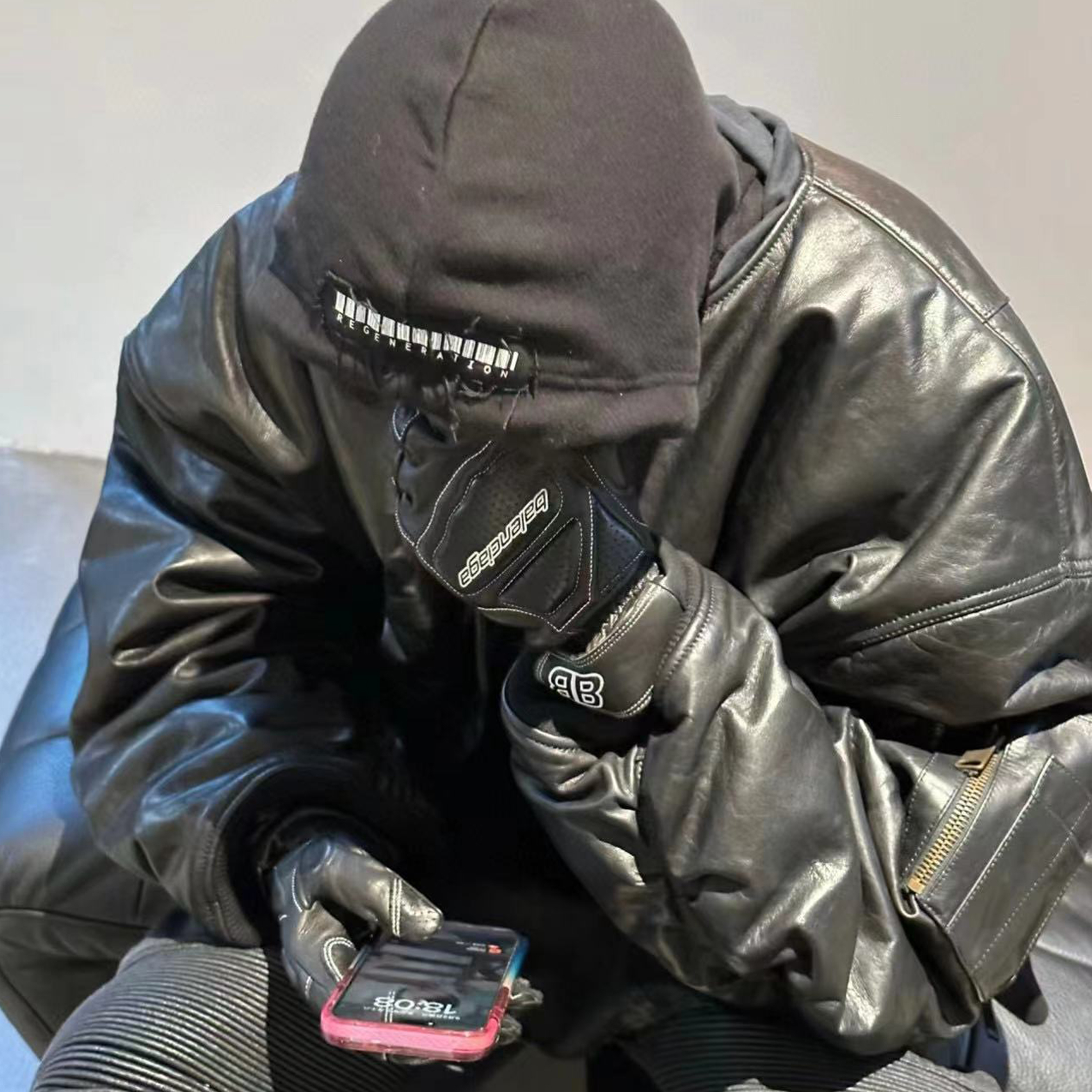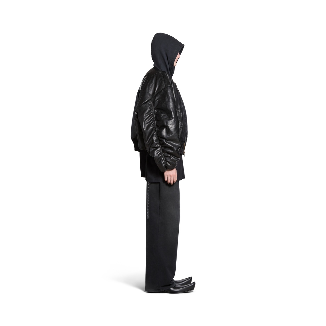 NIGO Balenciaga Men's Fall/Winter Black Letter Print Hooded Drop Shoulder Long Sleeve Zipper Leather Jacket #nigo72777