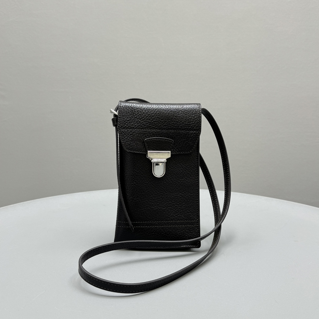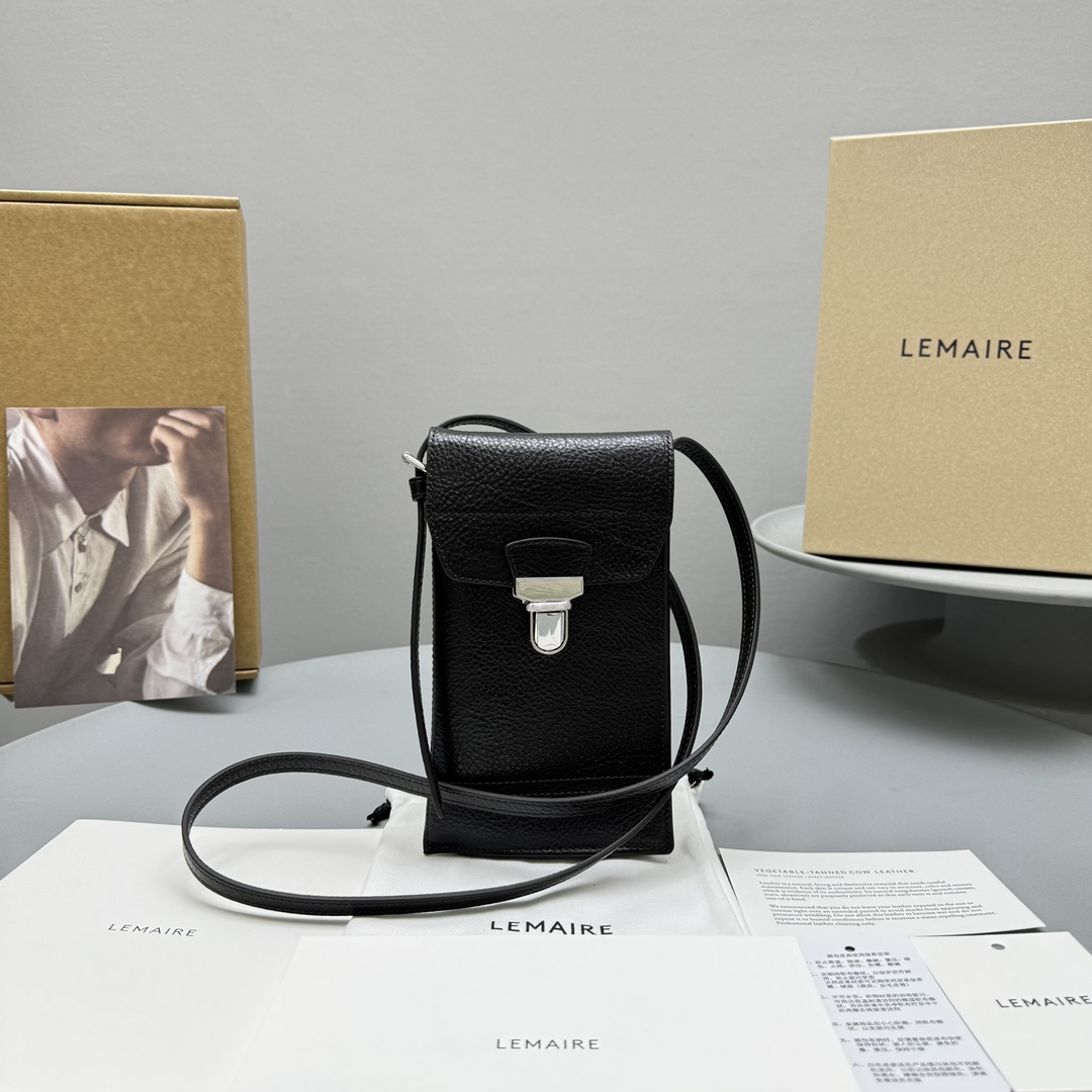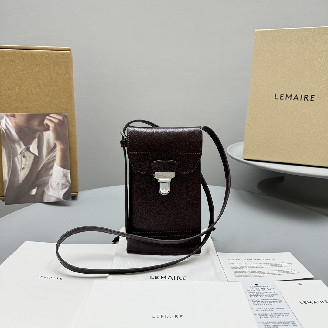 NIGO Lemaire Men's Solid Colour Lock Closure Calfskin Leather Crossbody Shoulder Phone Bag Bags #nigo99466