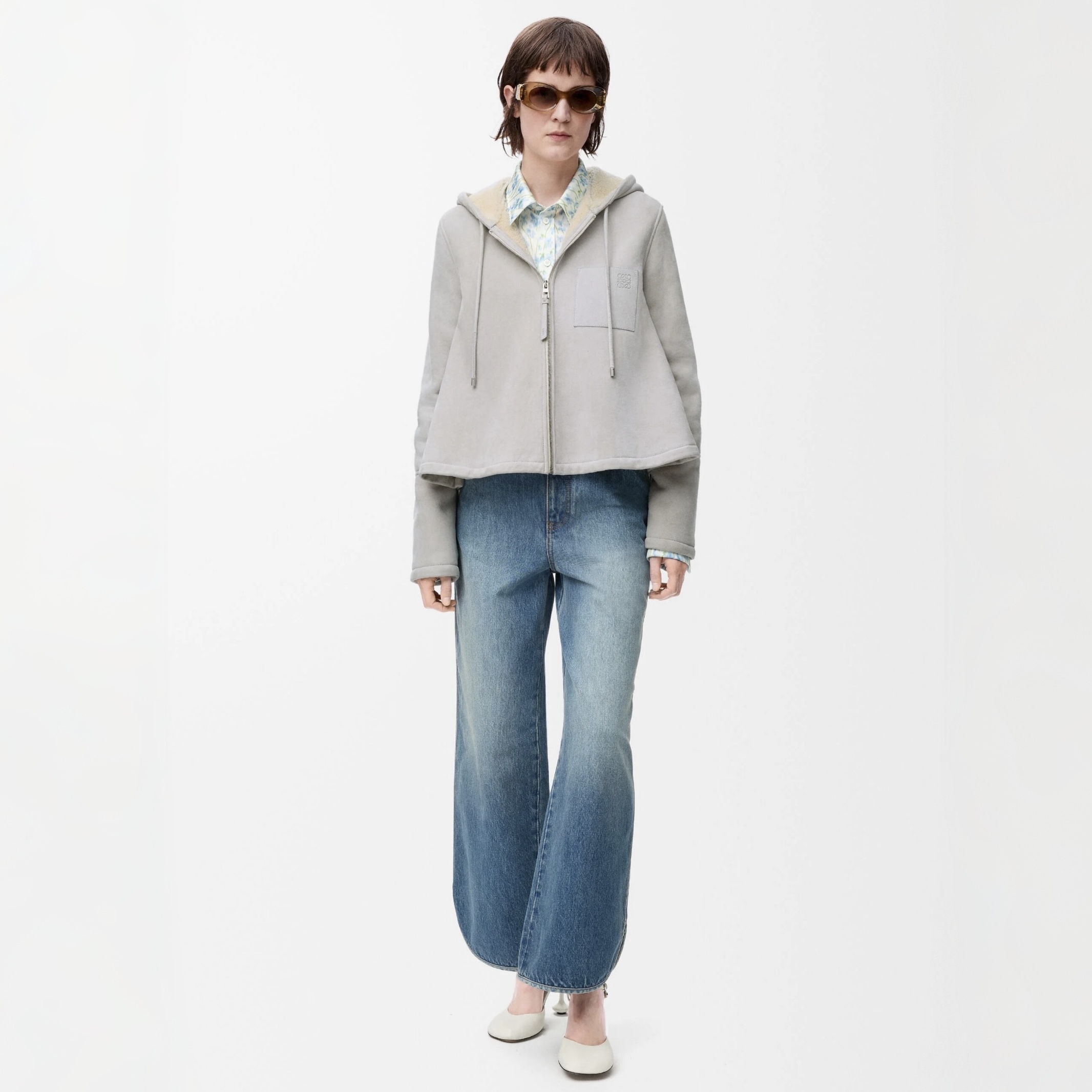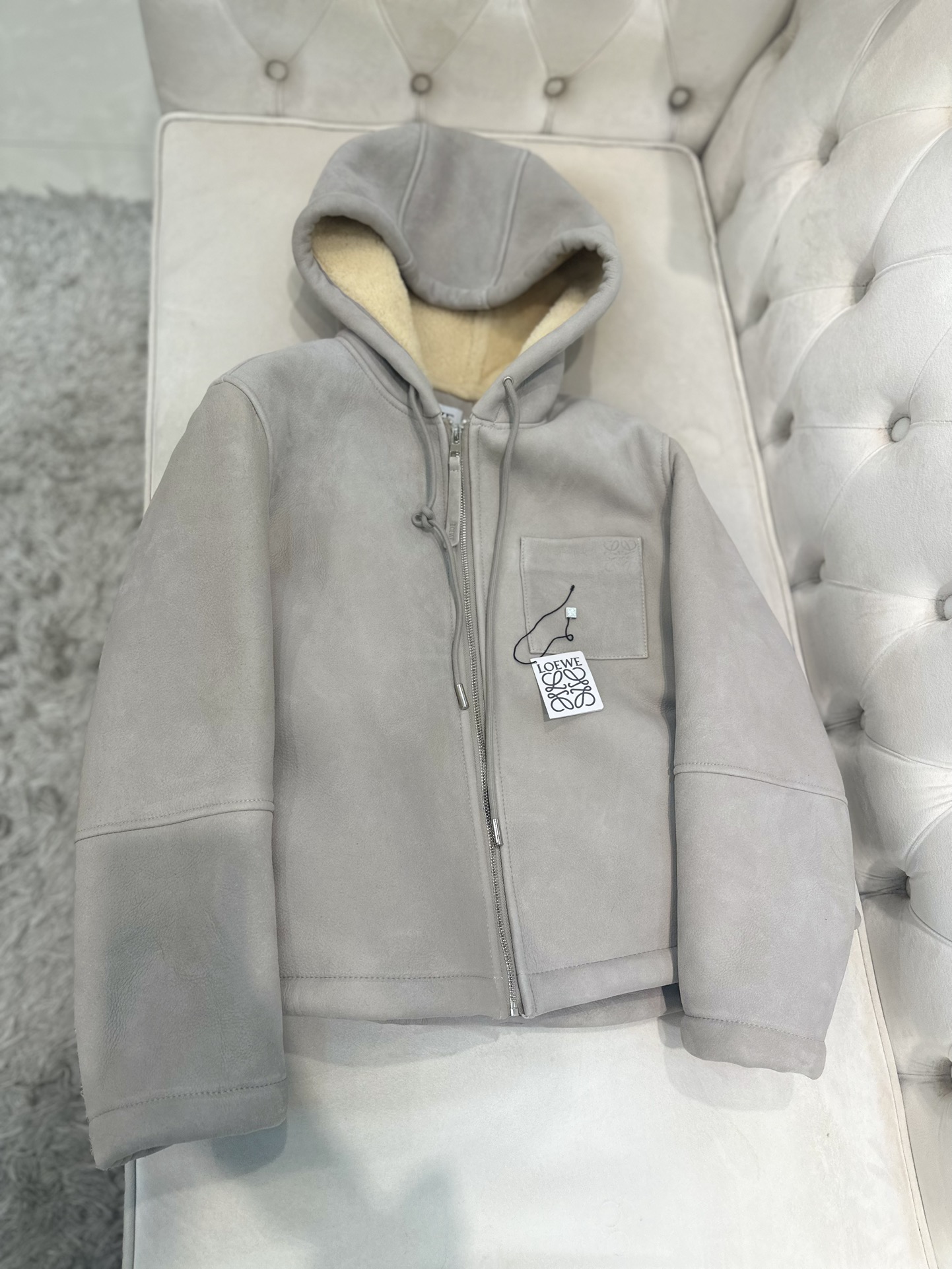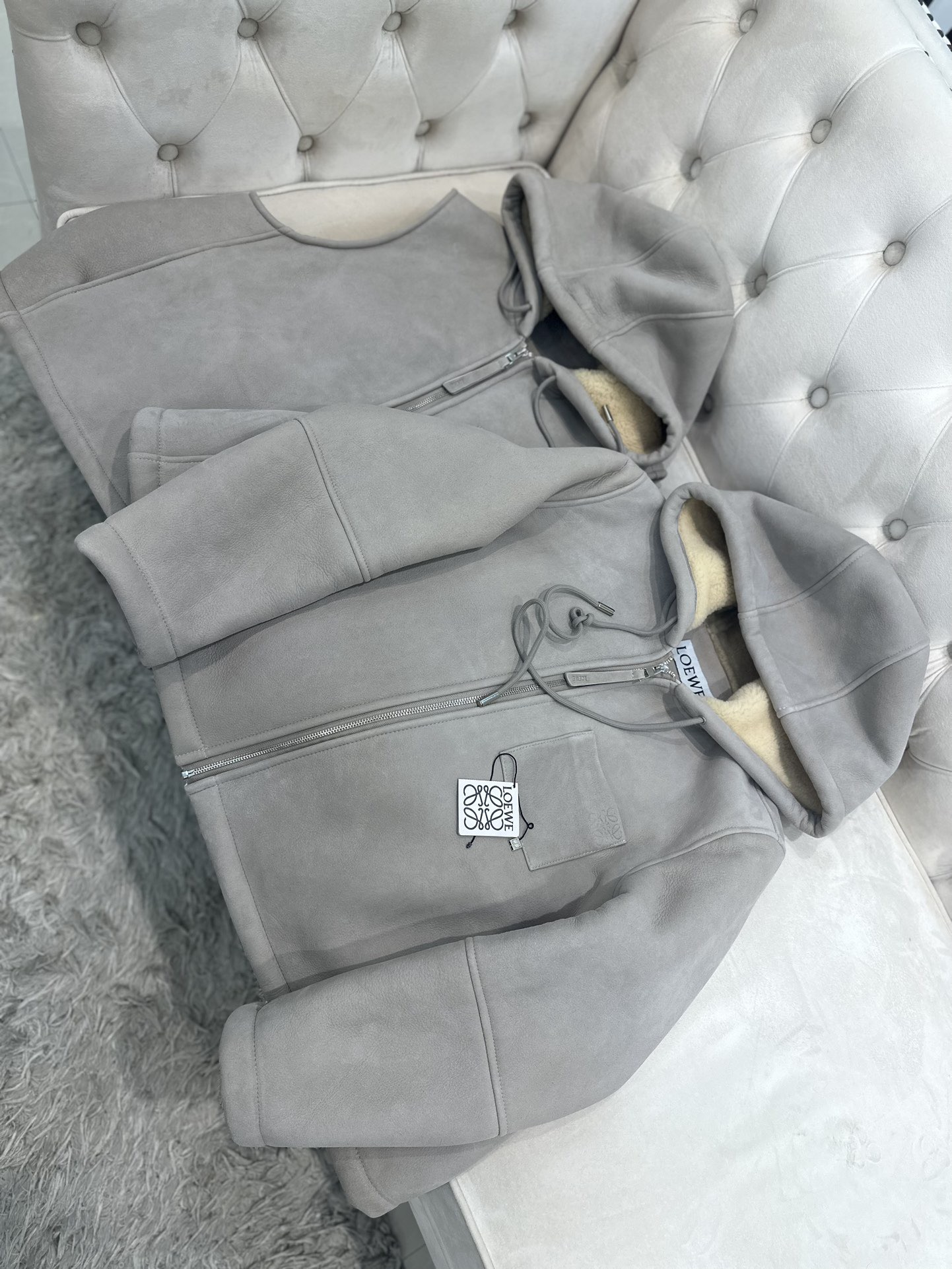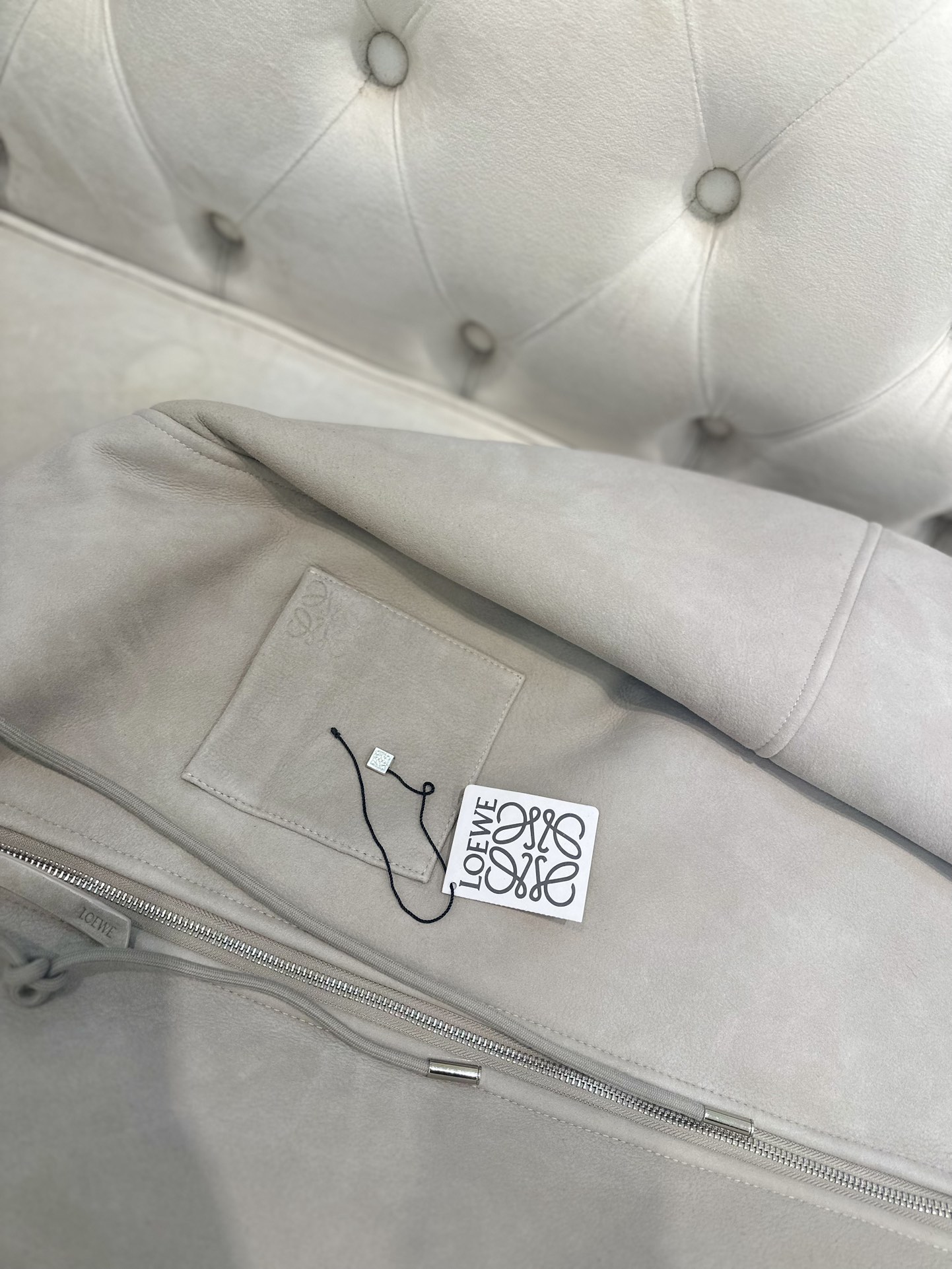 NIGO LOEWE 25AW Derby Suede Leather And Fur Beige Tellow Hair Suede Shearling Hooded Jacket #nigo332353