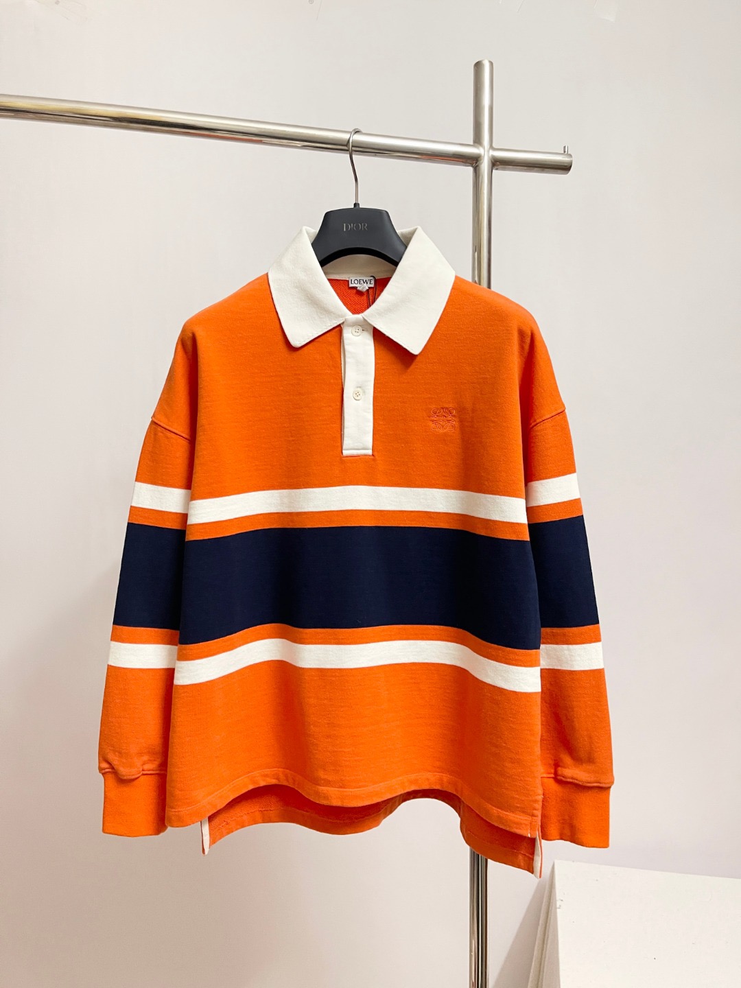 NIGO LOEWE FW25 Men's Cotton Horizontal Striped Logo Embroidered Long-Sleeved Polo Shirt #nigo332269