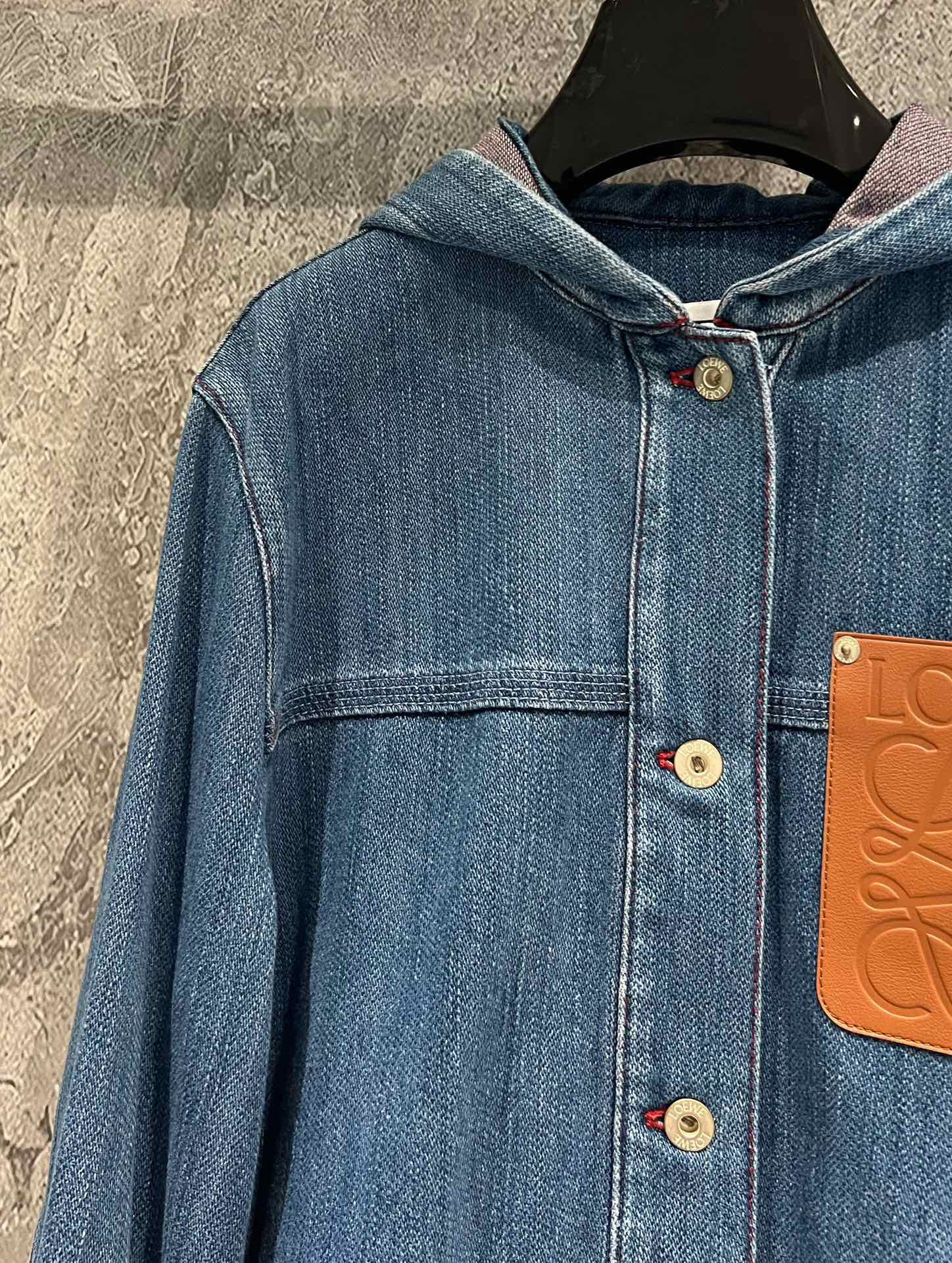 L NIGO LOEWE Women's Spring and Autumn Solid Color Cowboy Hoodie Single breasted Long sleeved Jacket