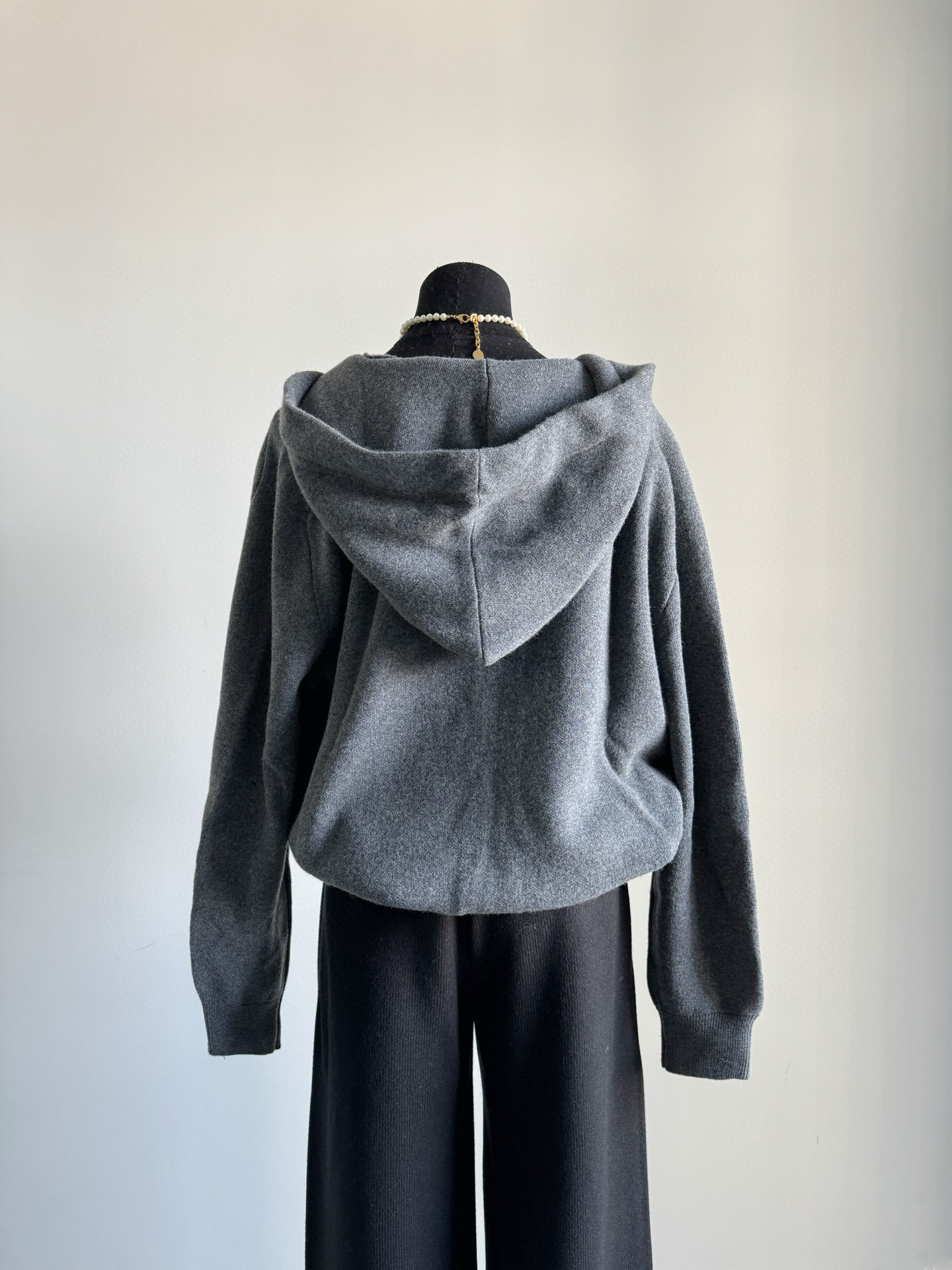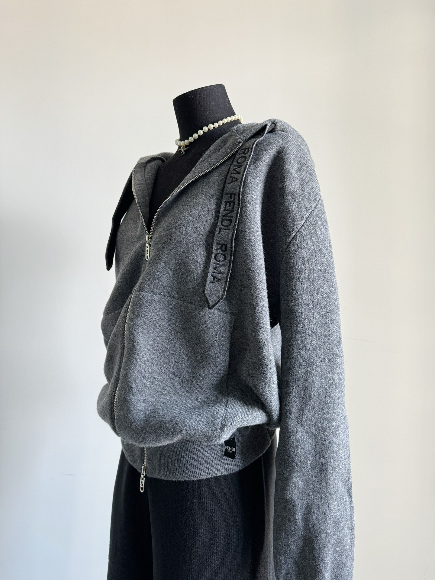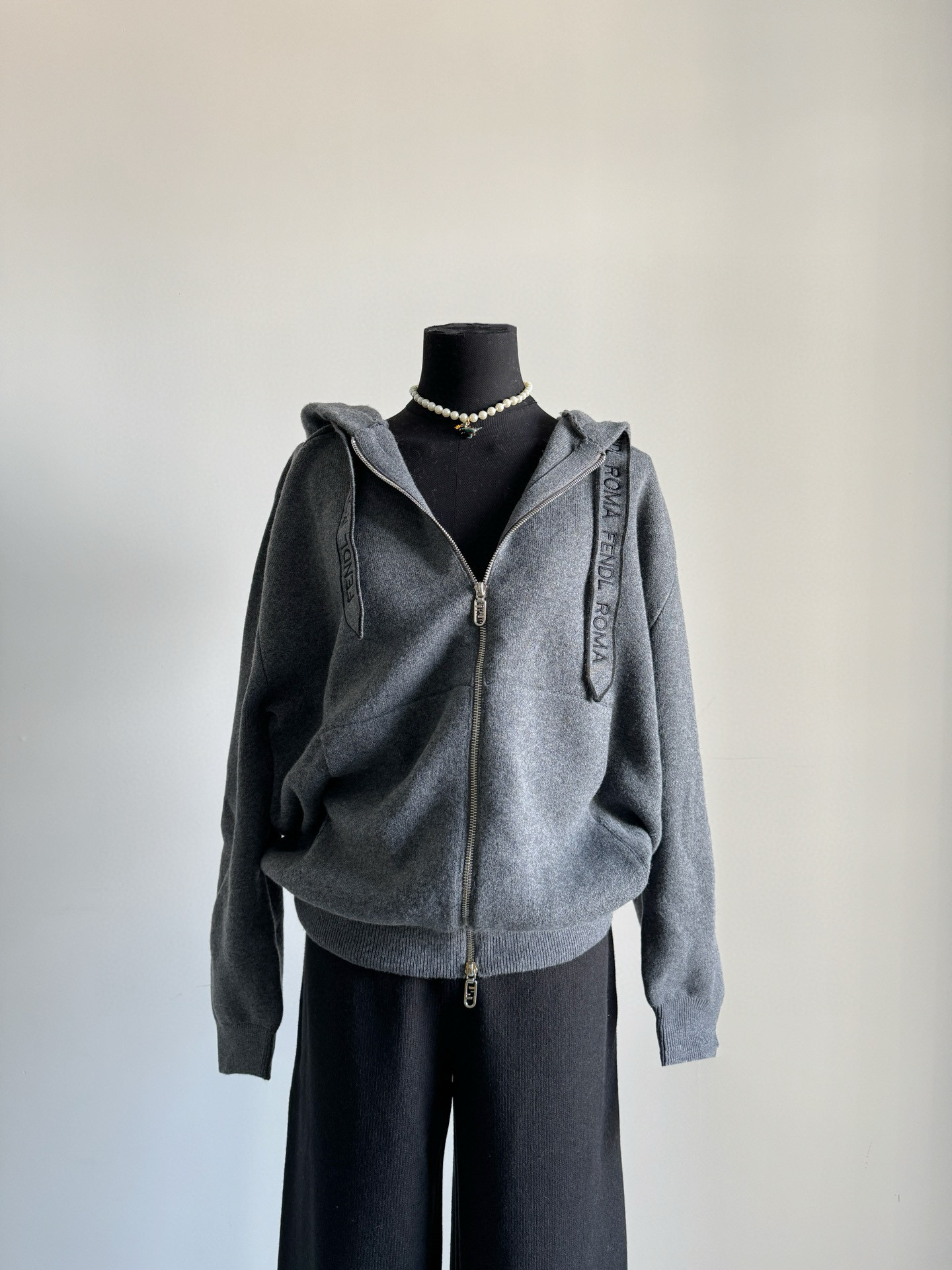 NIGO Loewe Men's Autumn/Winter Dark Grey Knitted Zip Hooded Jacket #nigo97379