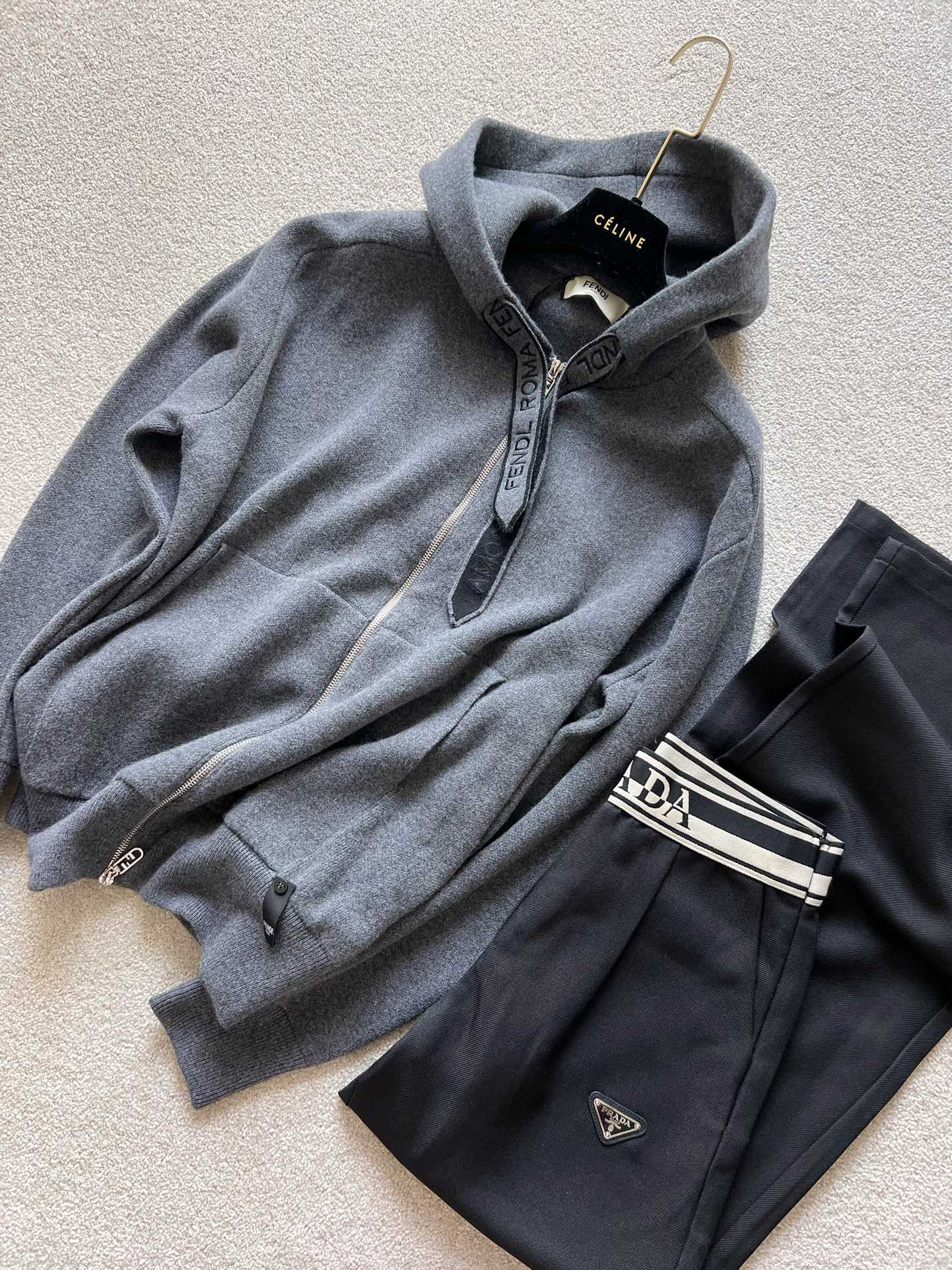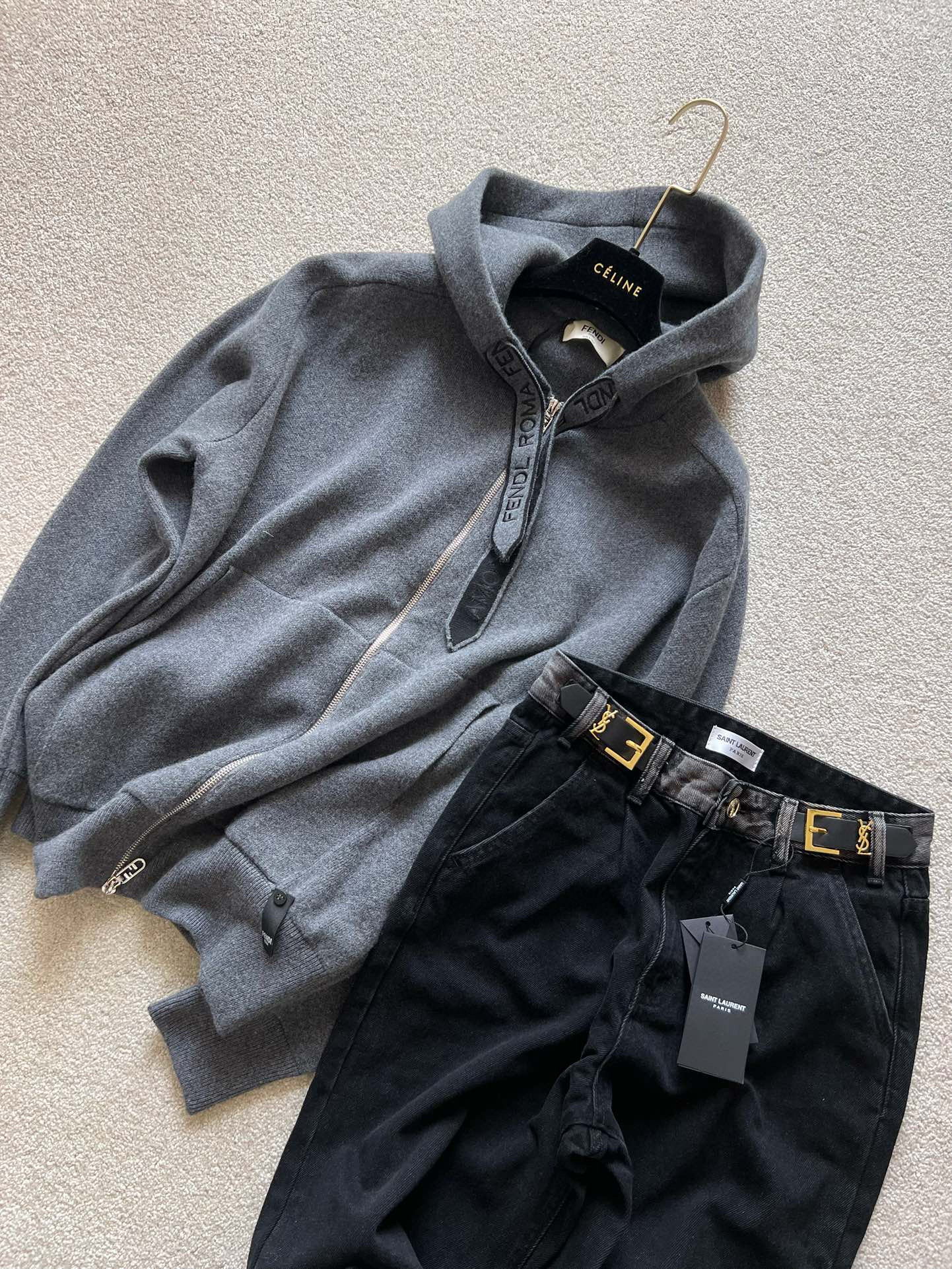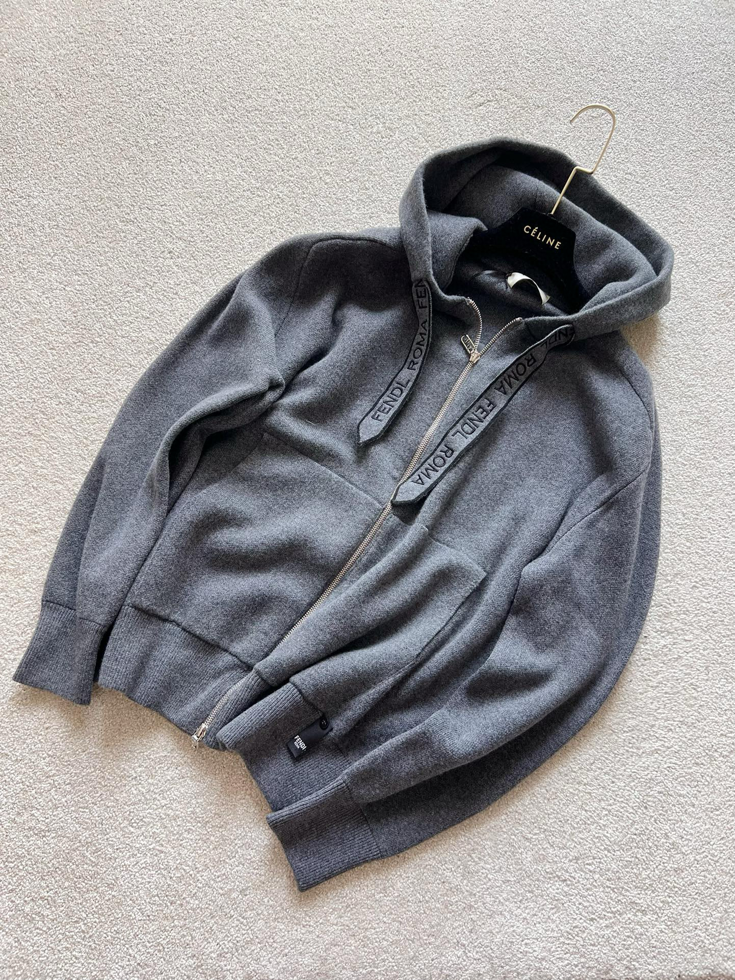 NIGO Loewe Men's Autumn/Winter Dark Grey Knitted Zip Hooded Jacket #nigo97379