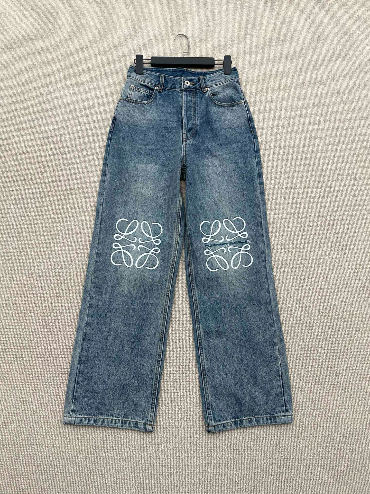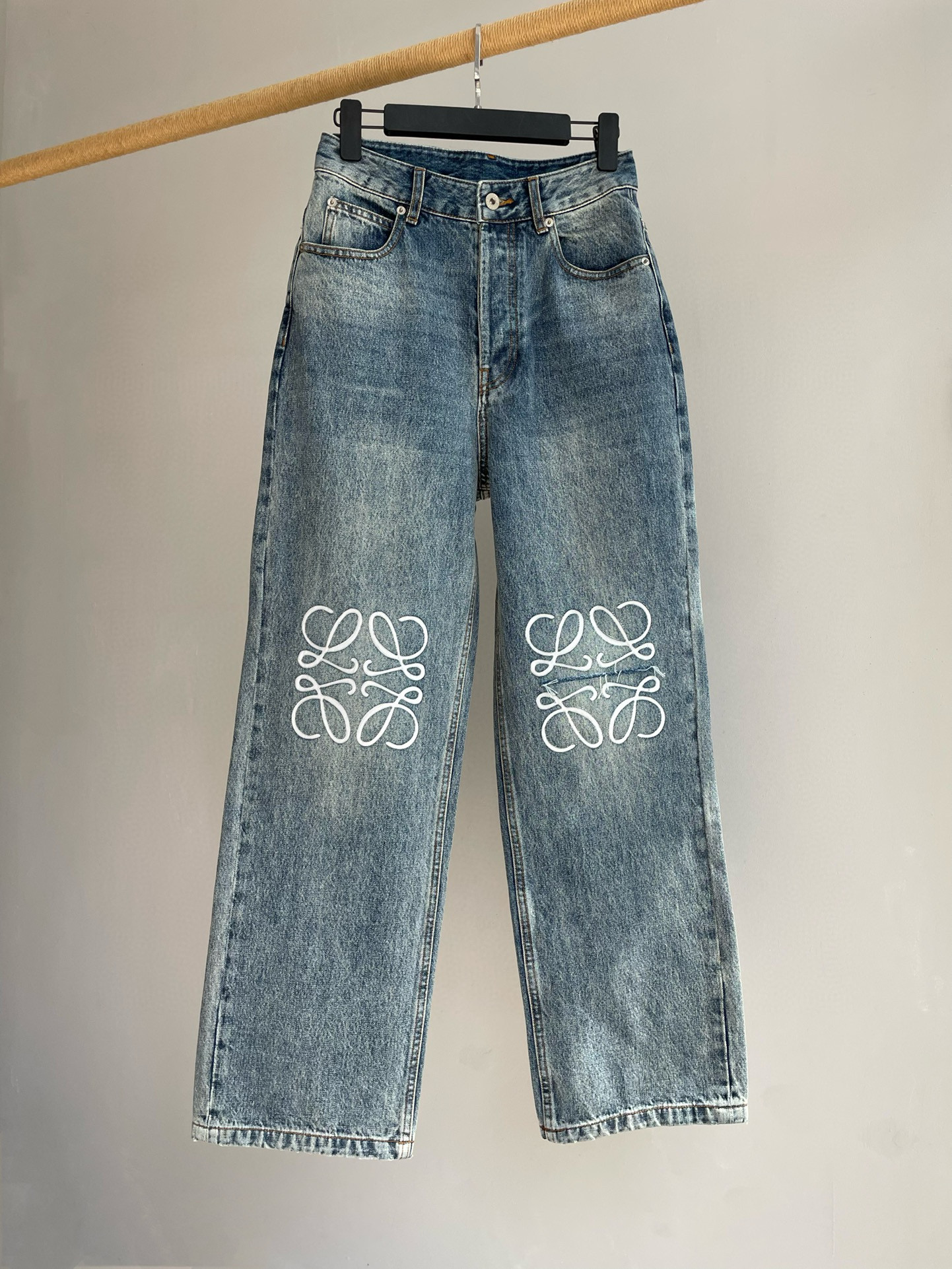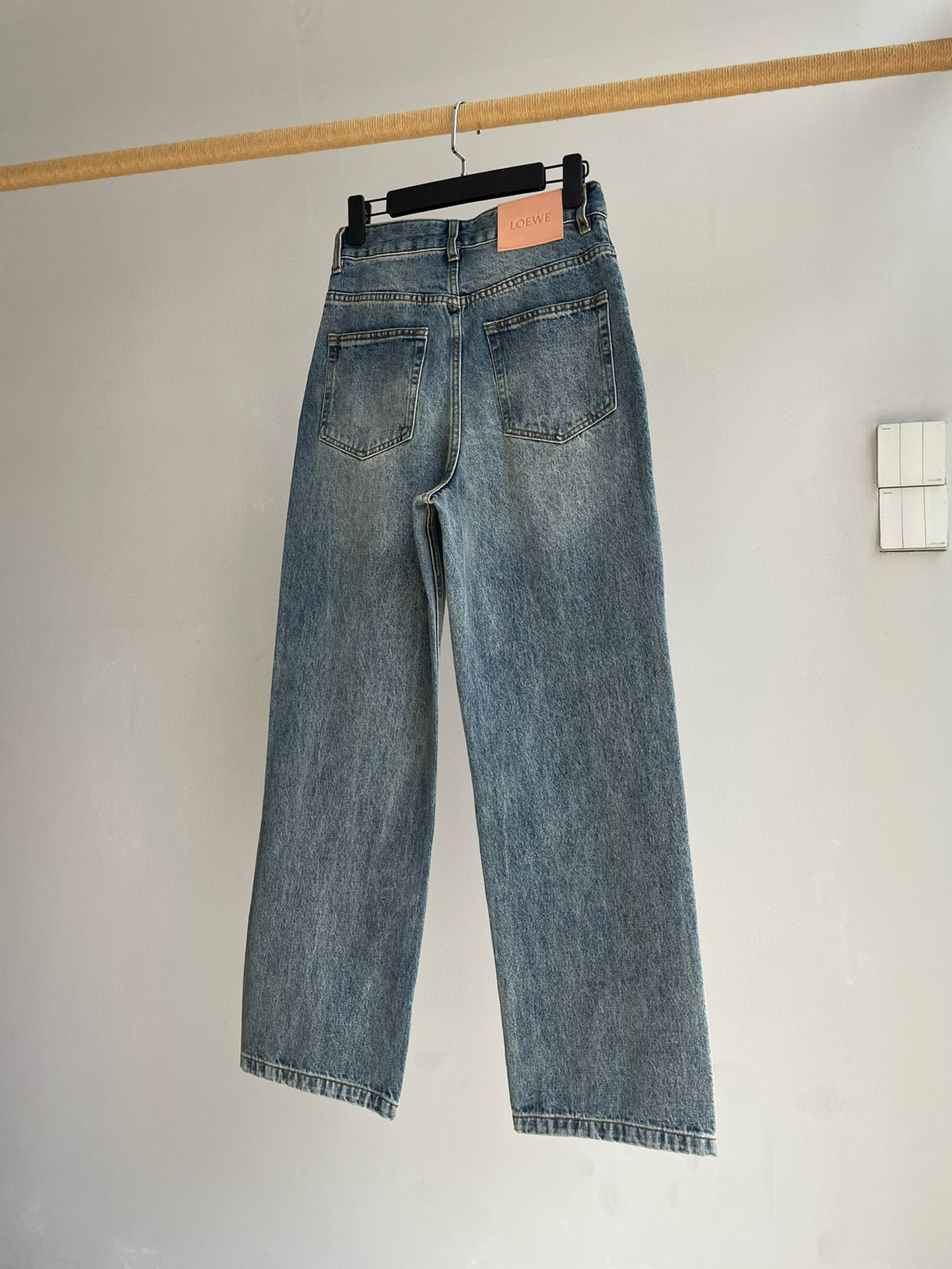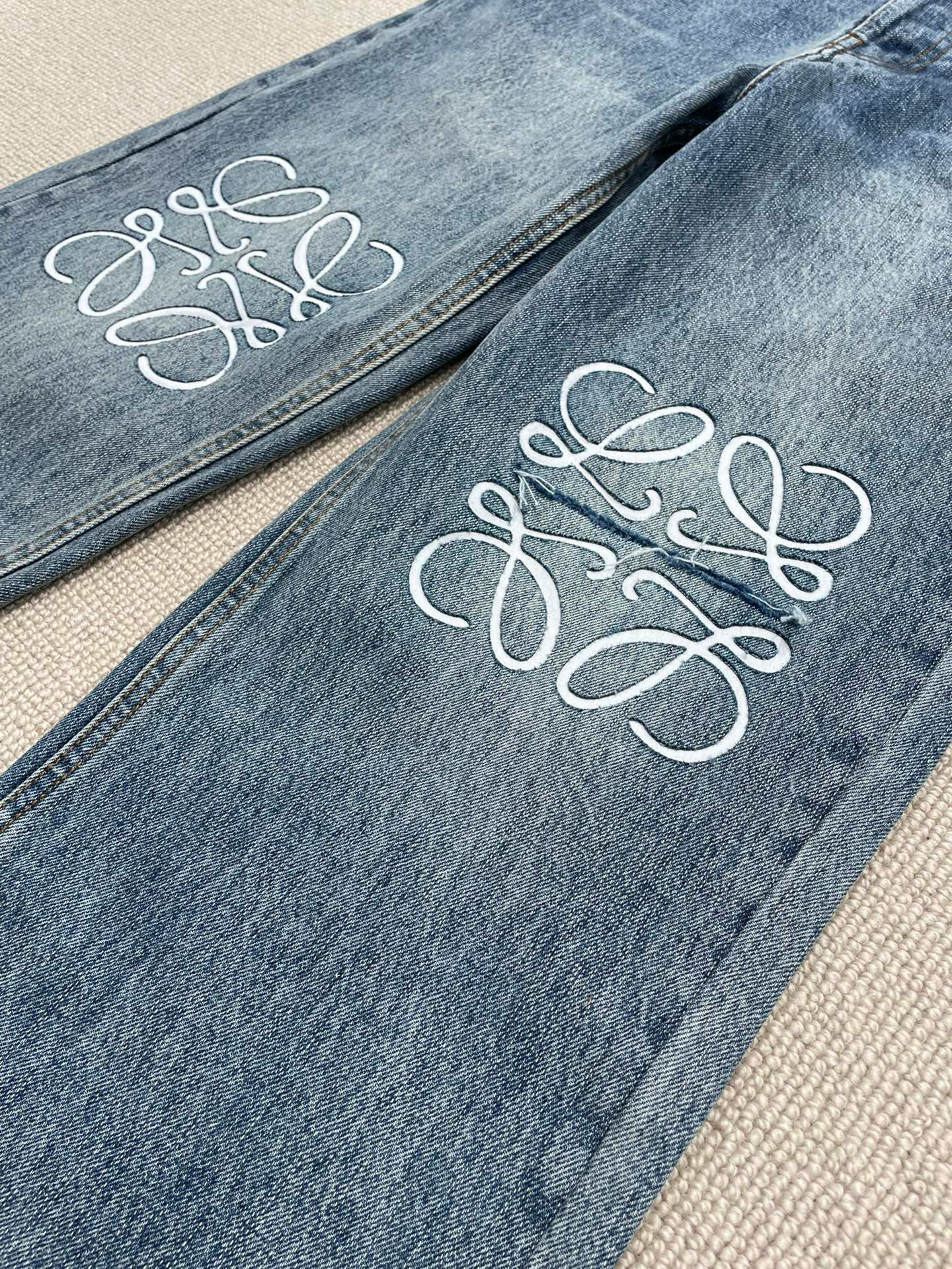NIGO Loewe Men's Four Seasons Anagram Baggy Jeans Cotton Washed Hollow Slash Logo Trousers Pants #nigo76834
